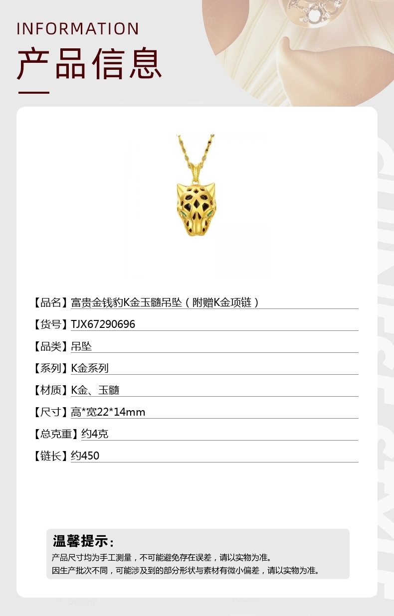 【品名】富贵金钱豹K金玉髓吊坠(附赠K金项链)