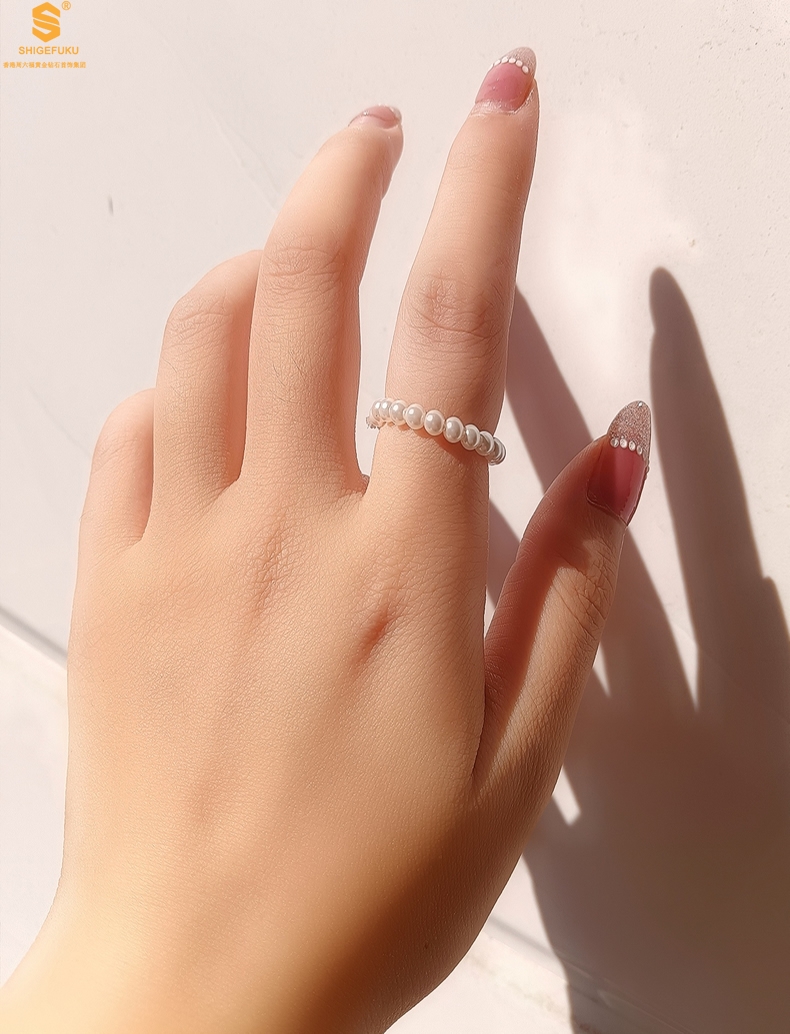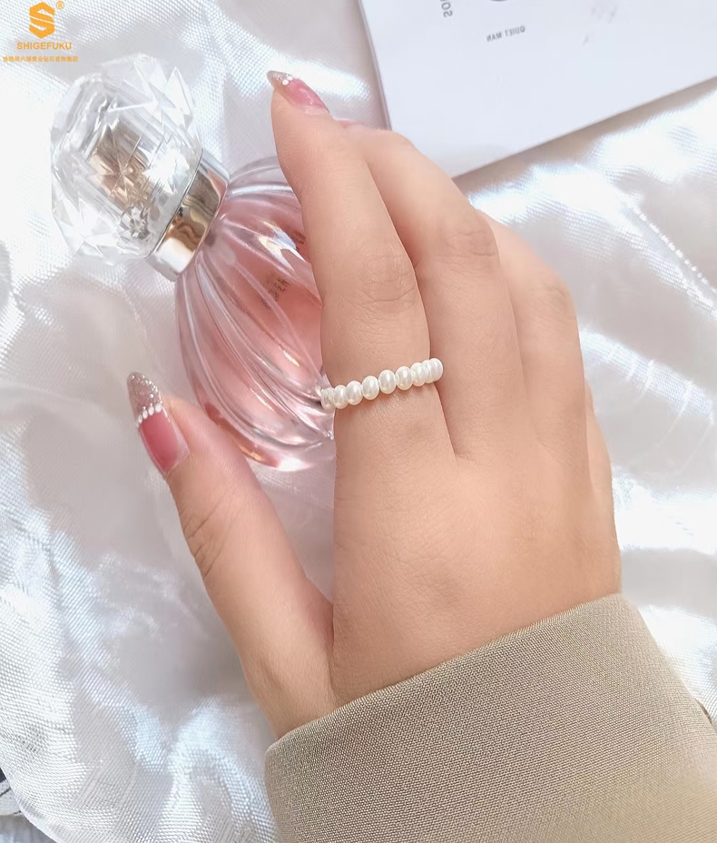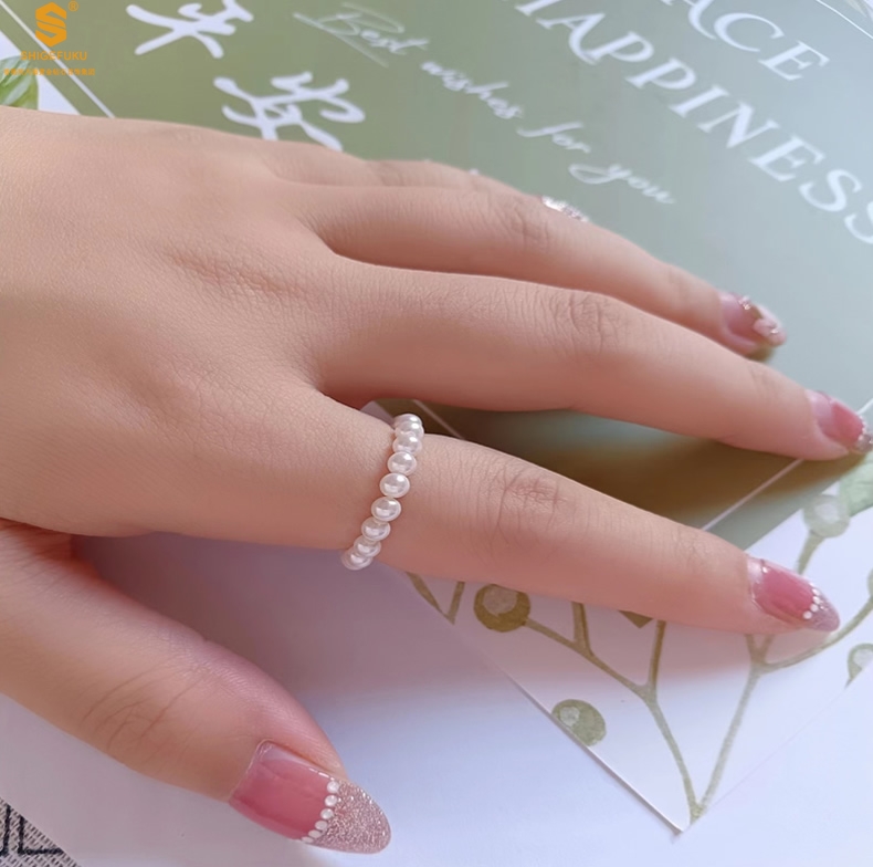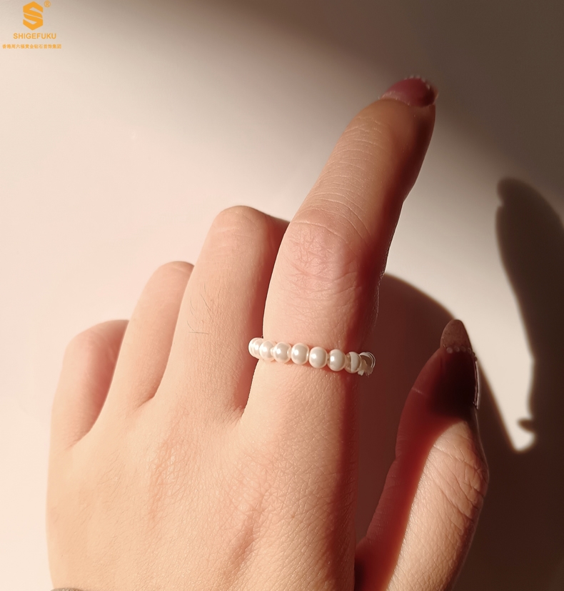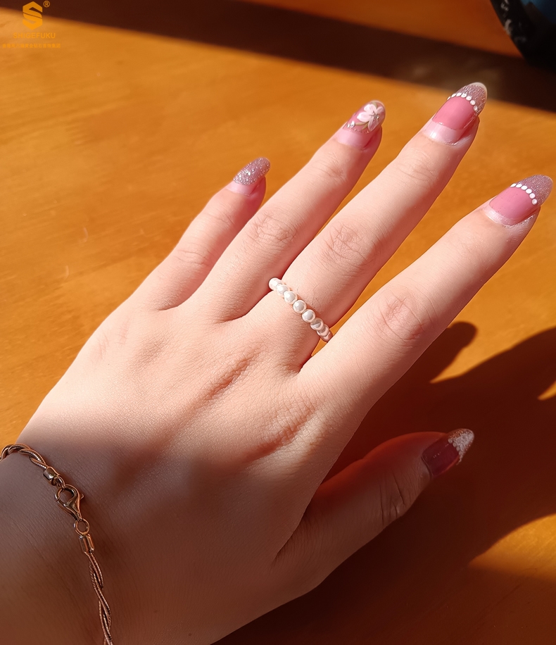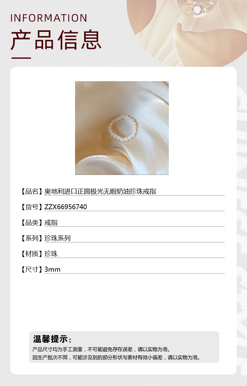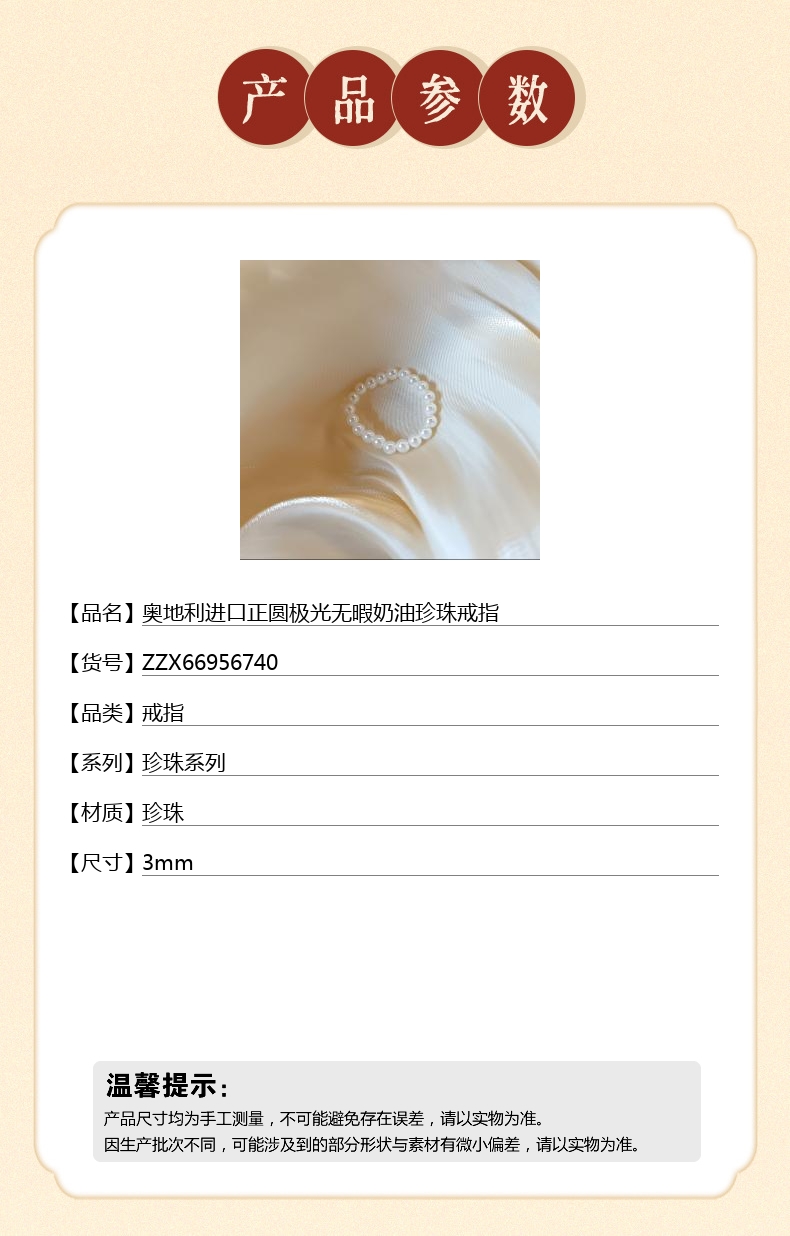 【品名】奥地利进口正圆极光无暇奶油珍珠戒指