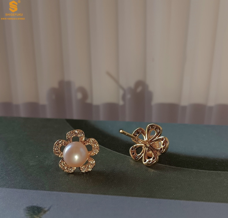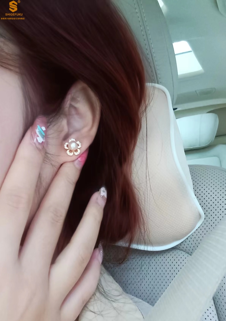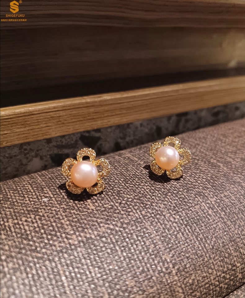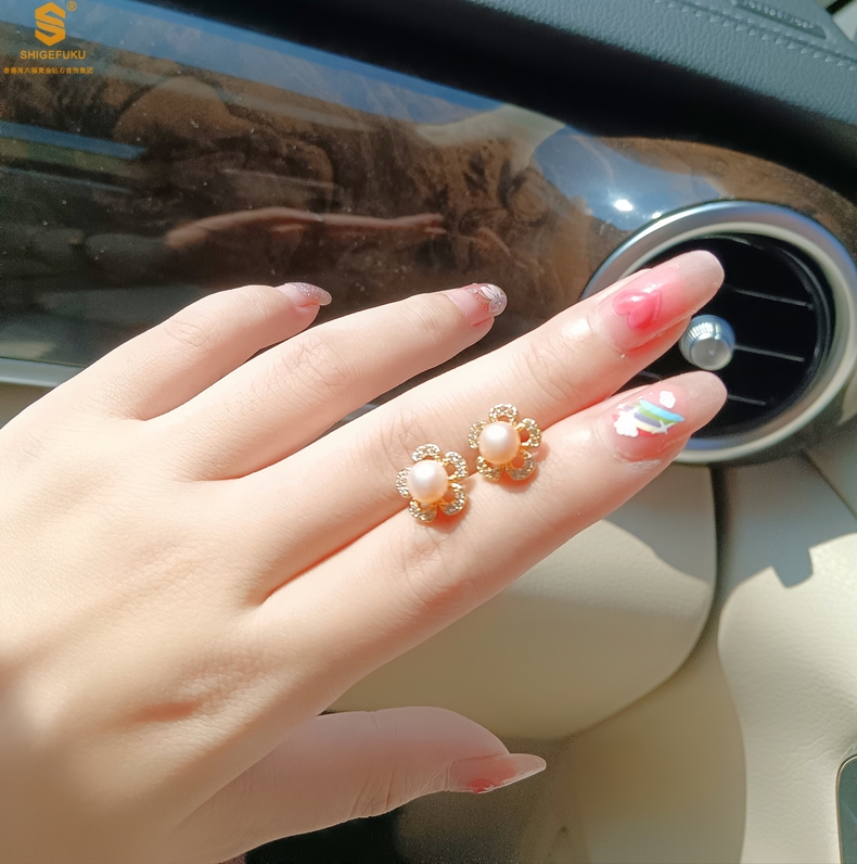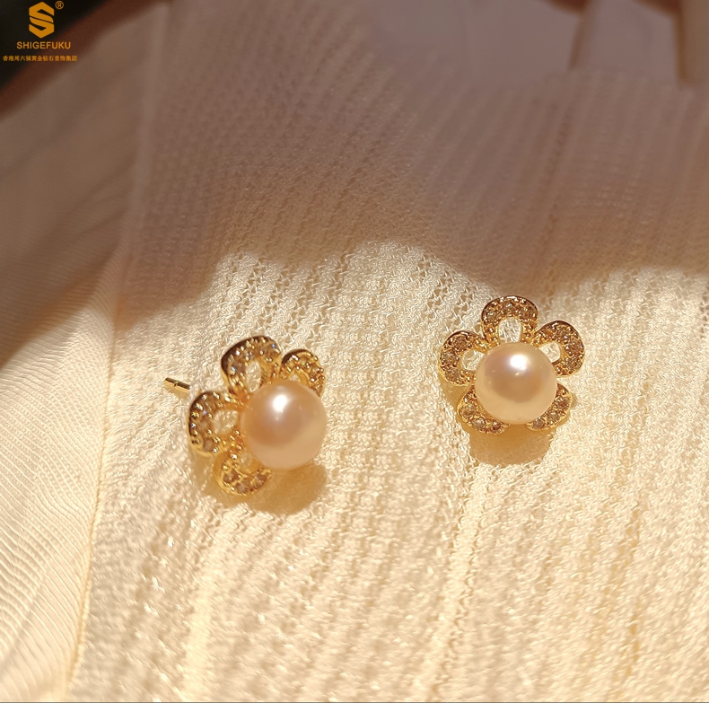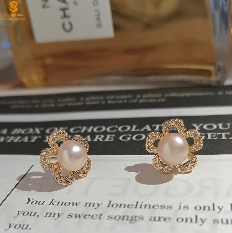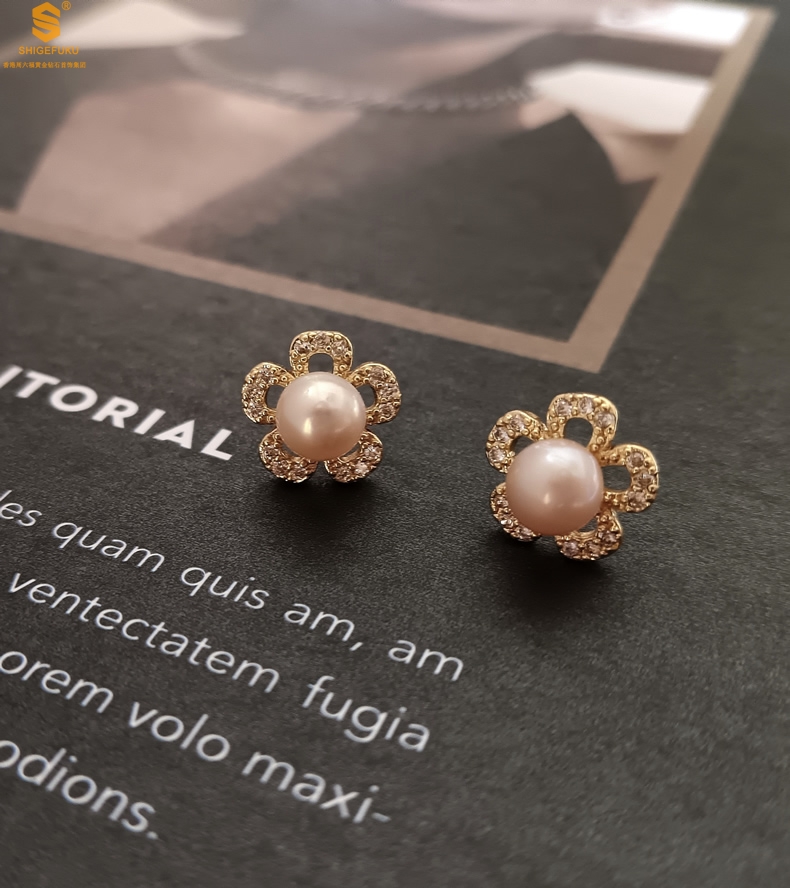 【品名】天然珍珠豪镶满钻太阳花朵耳钉(对)