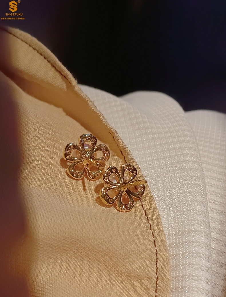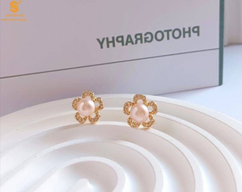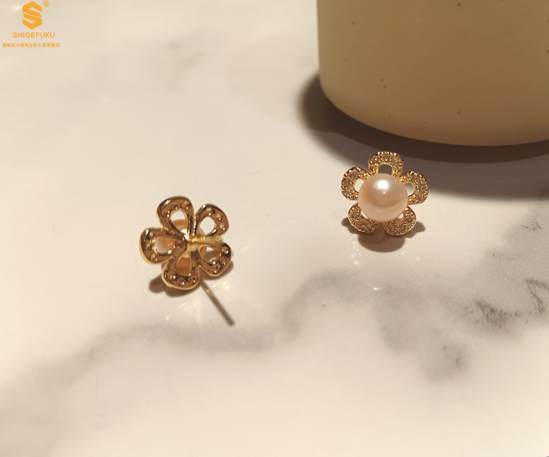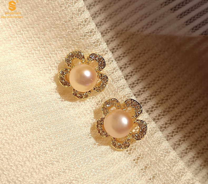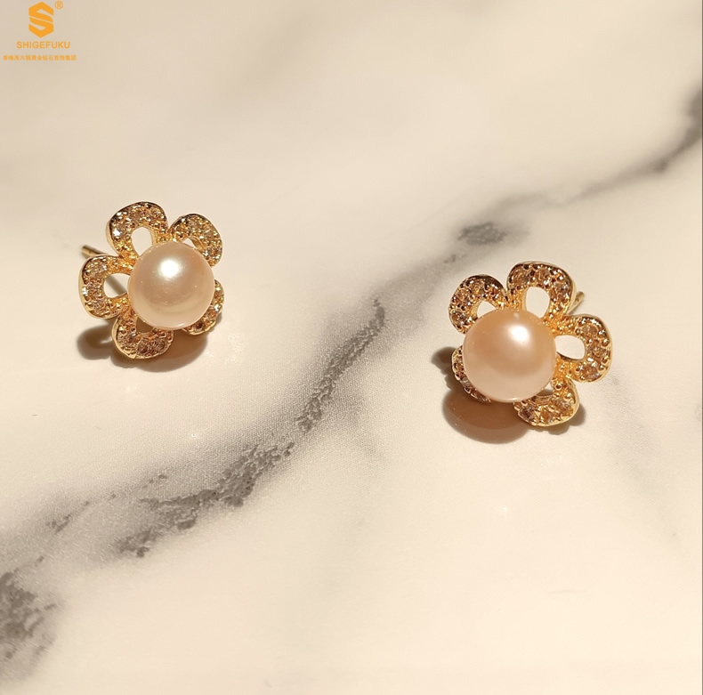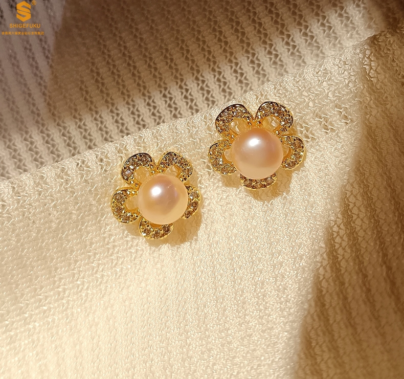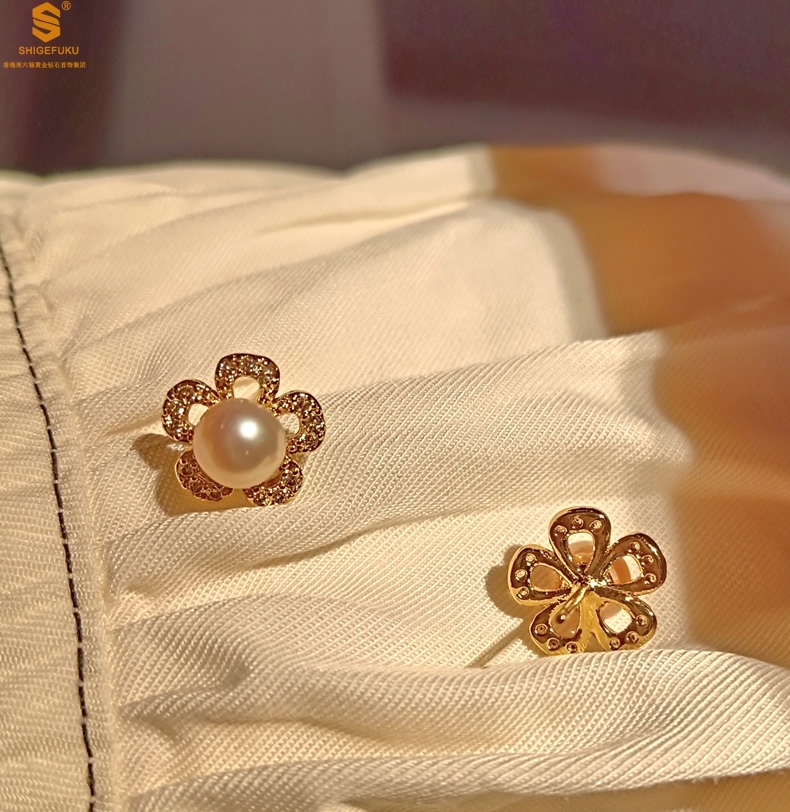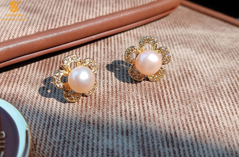 【品名】天然珍珠豪镶满钻太阳花朵耳钉(对)
