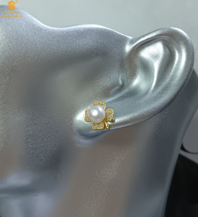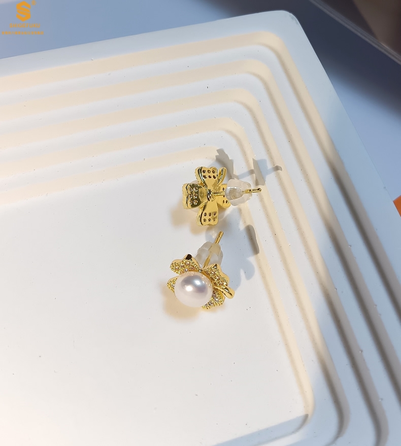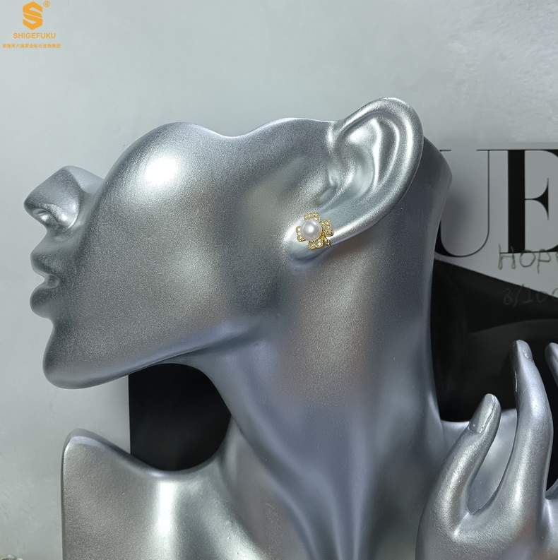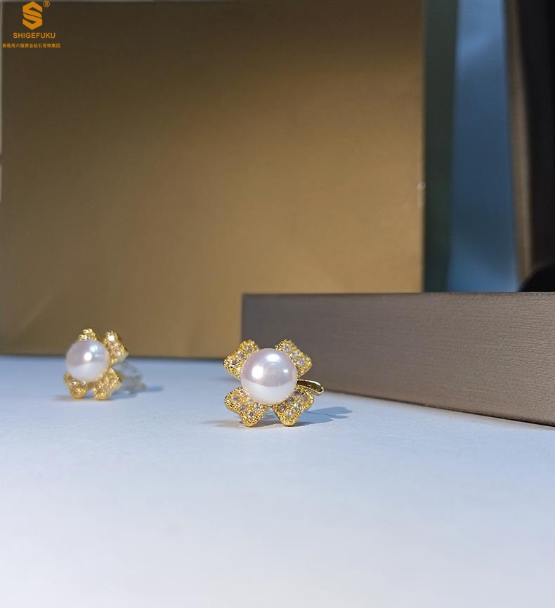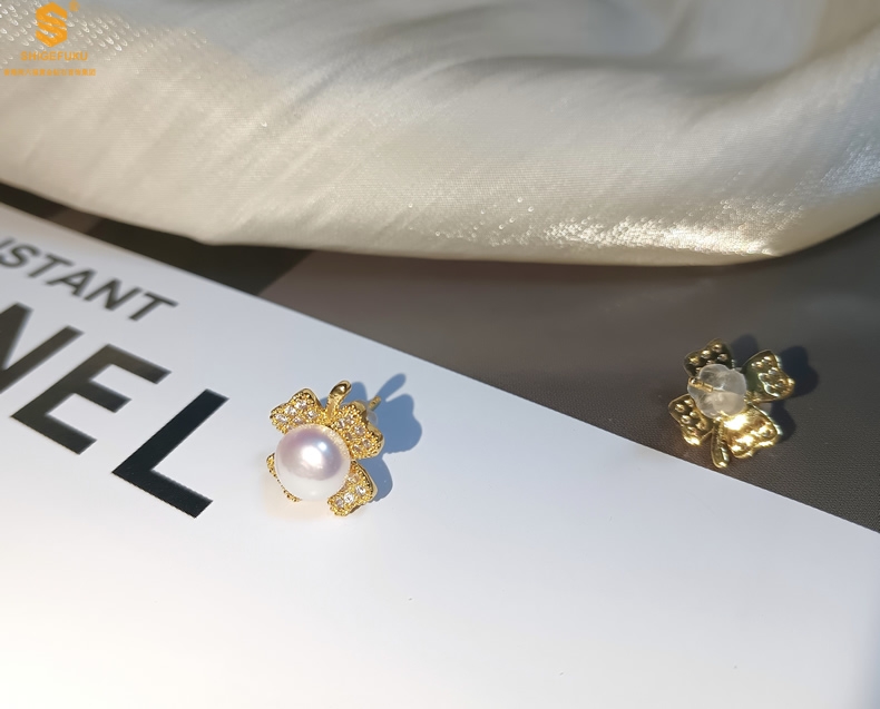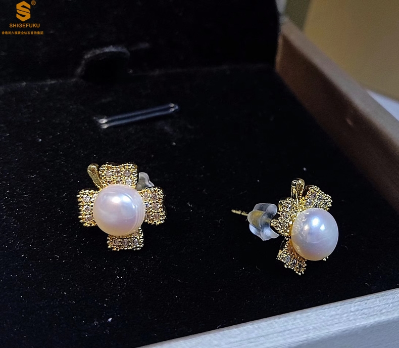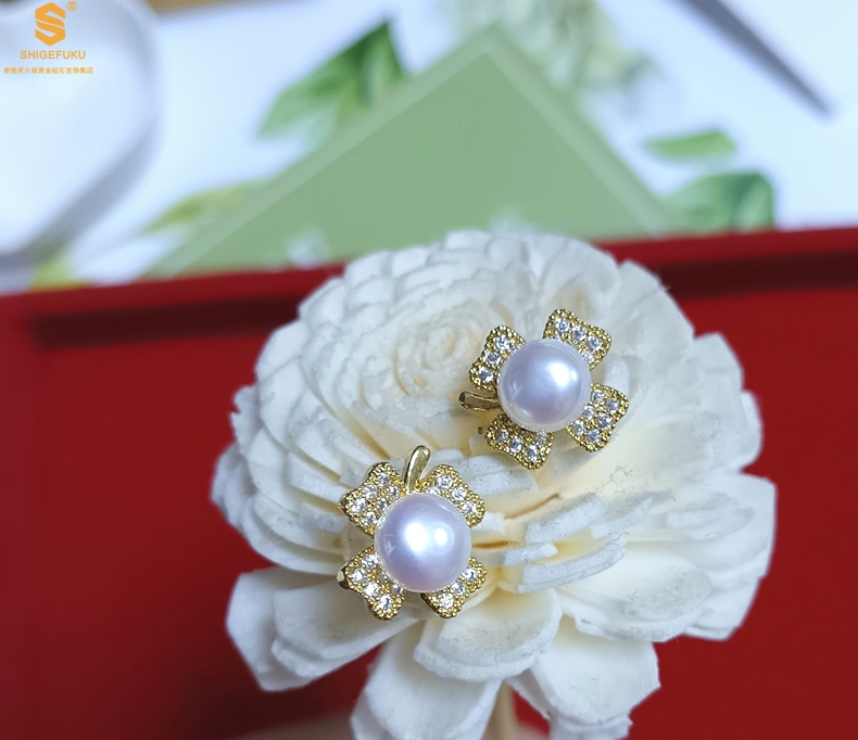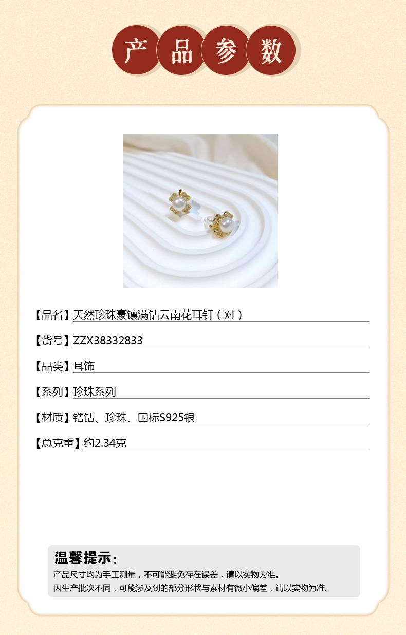 【品名】天然珍珠豪镶满钻云南花耳钉(对)