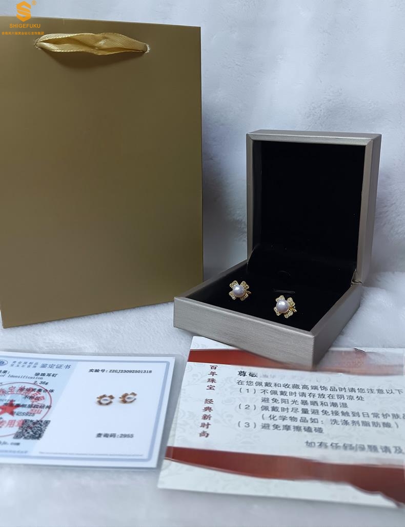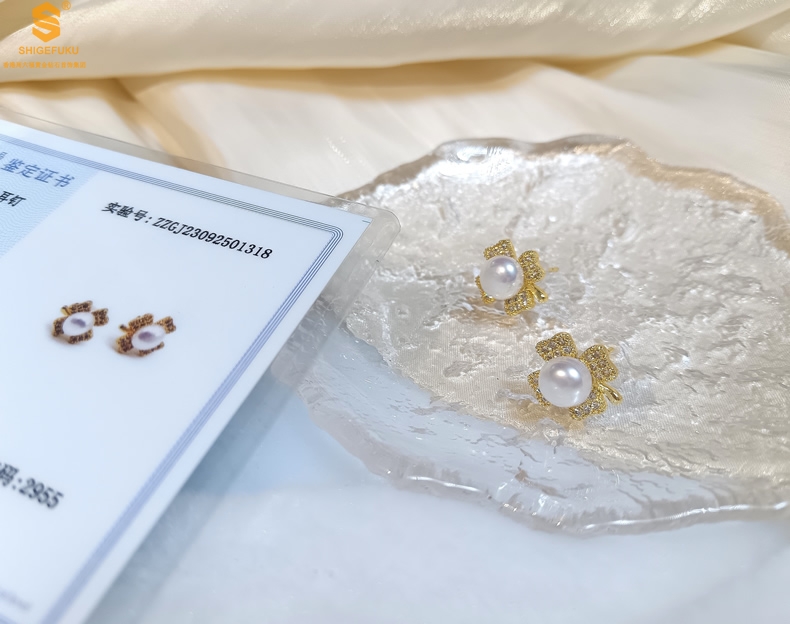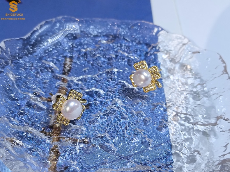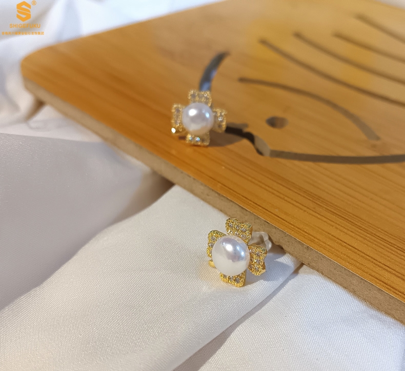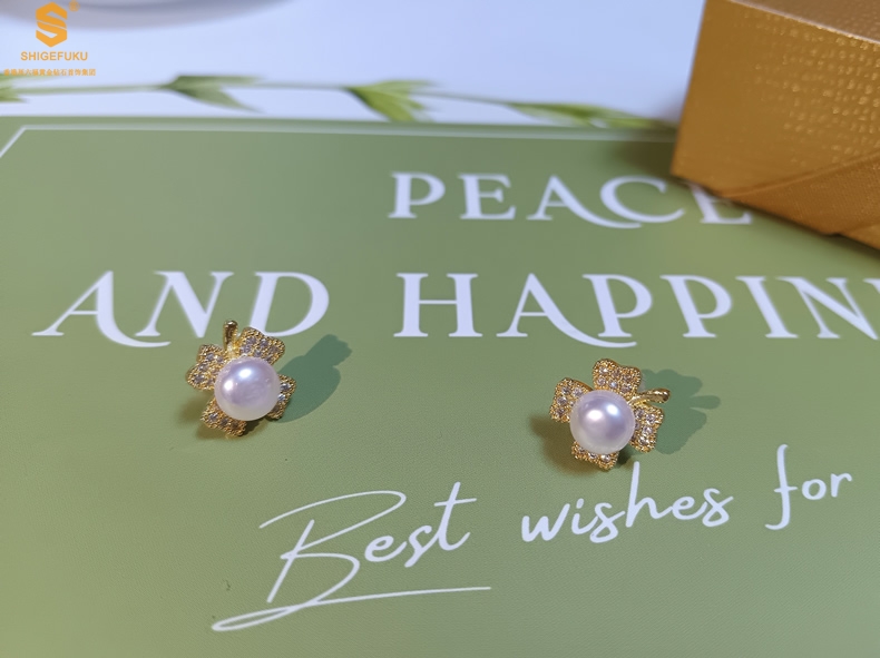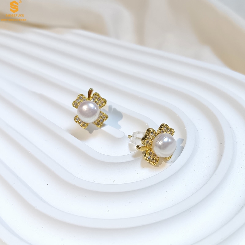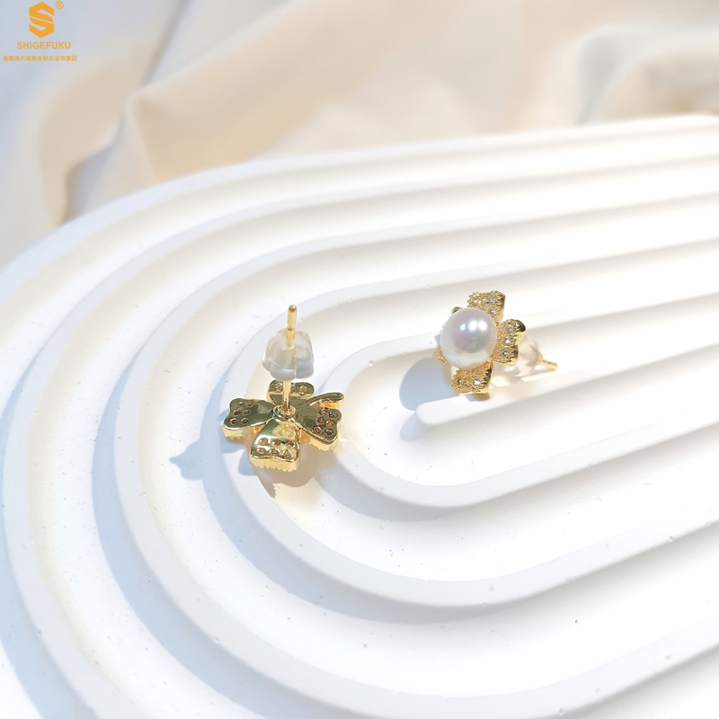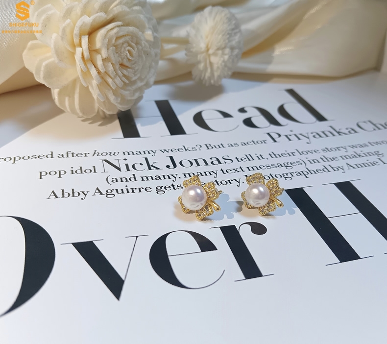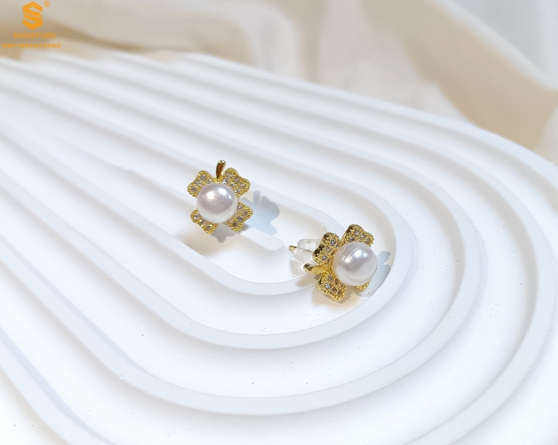 【品名】天然珍珠豪镶满钻云南花耳钉(对)