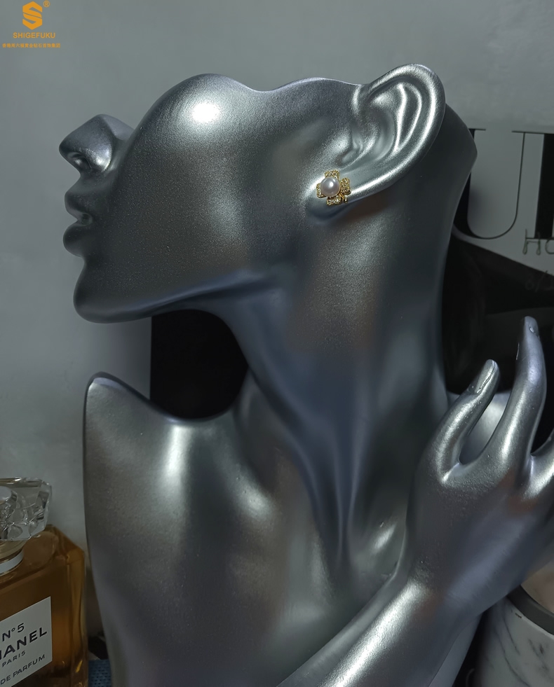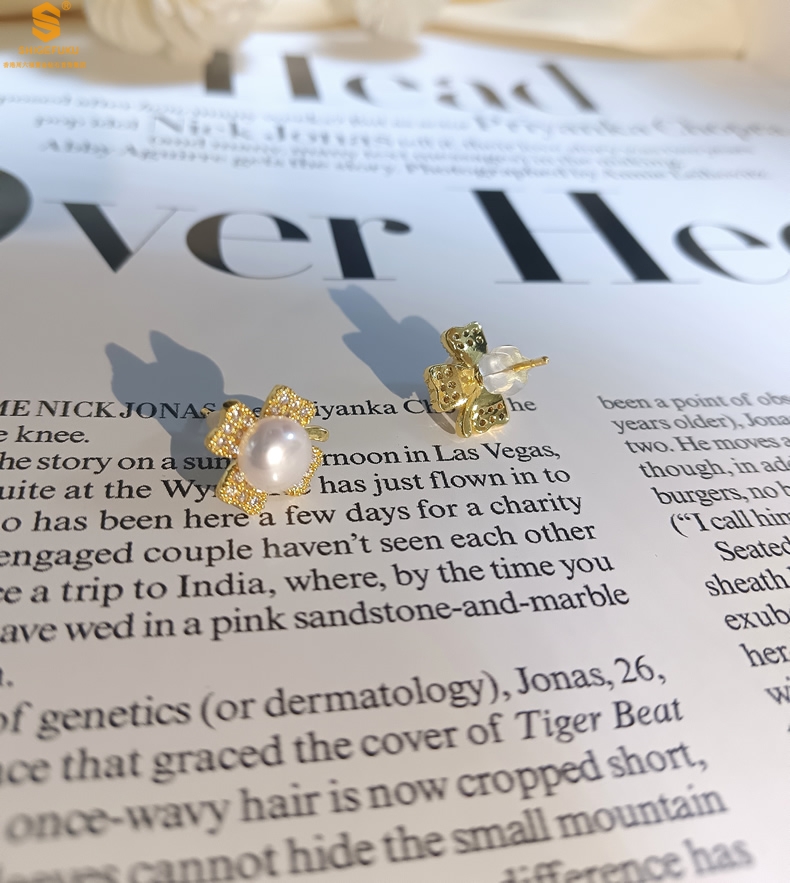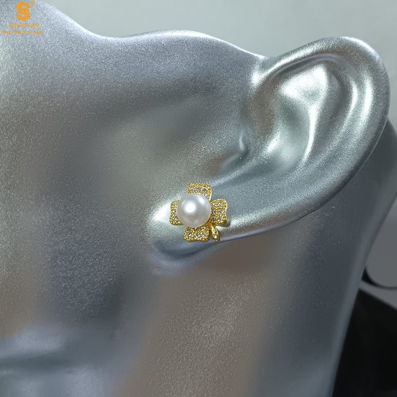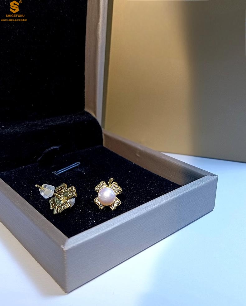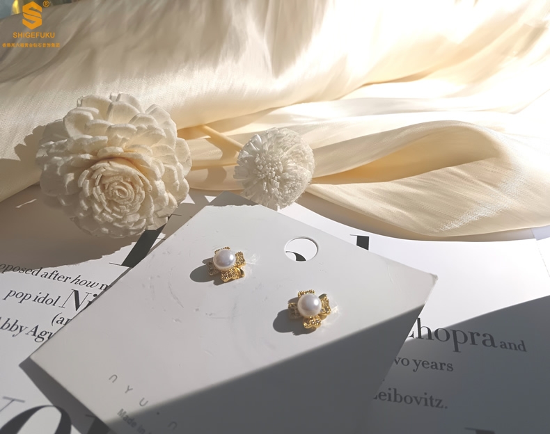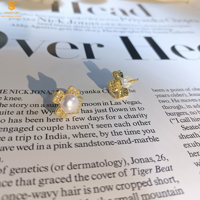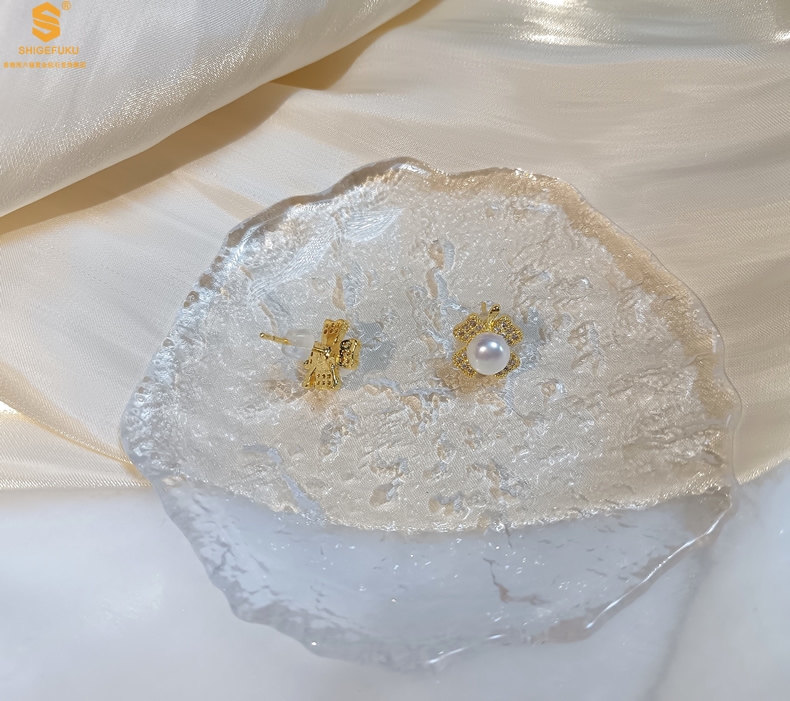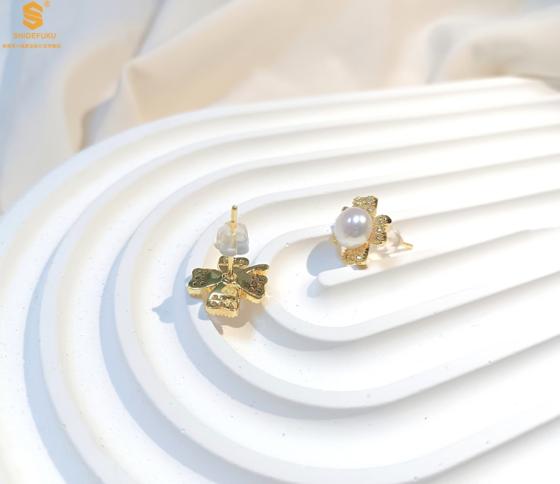 【品名】天然珍珠豪镶满钻云南花耳钉(对)
