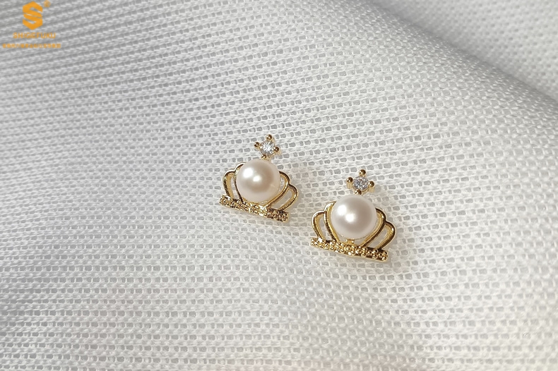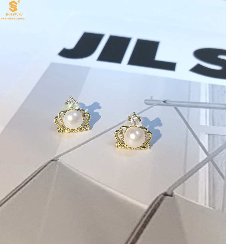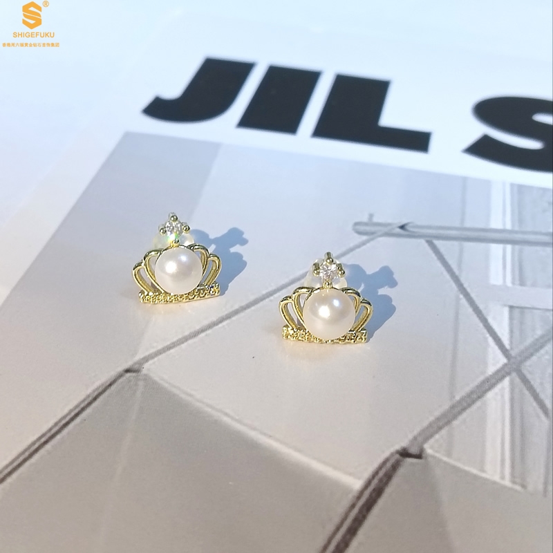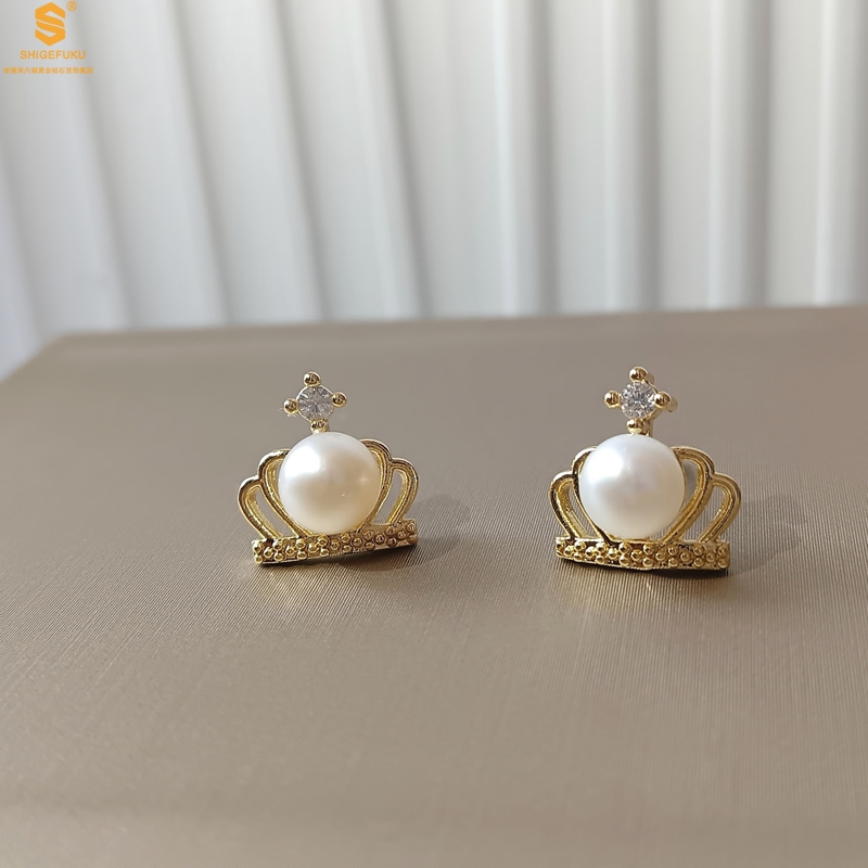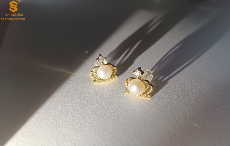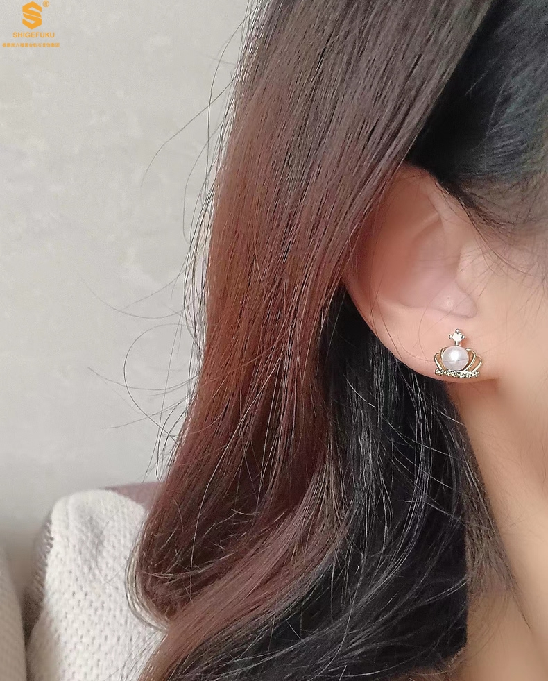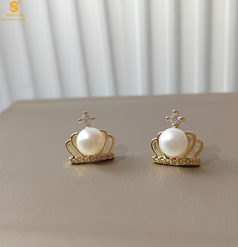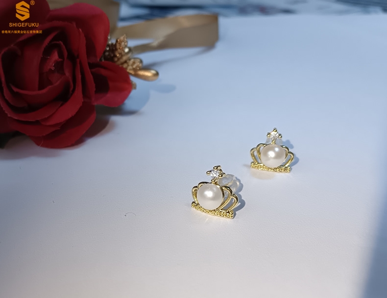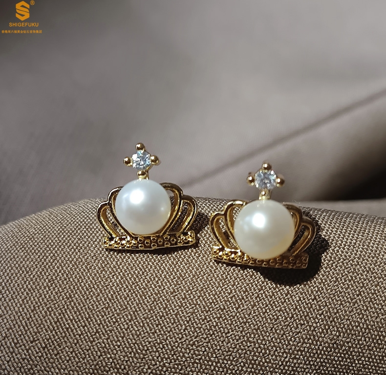 【品名】天然珍珠镶钻公主皇冠耳钉(对)