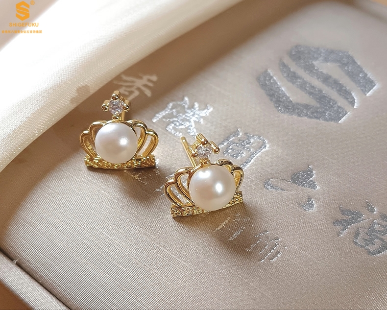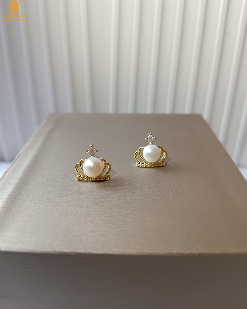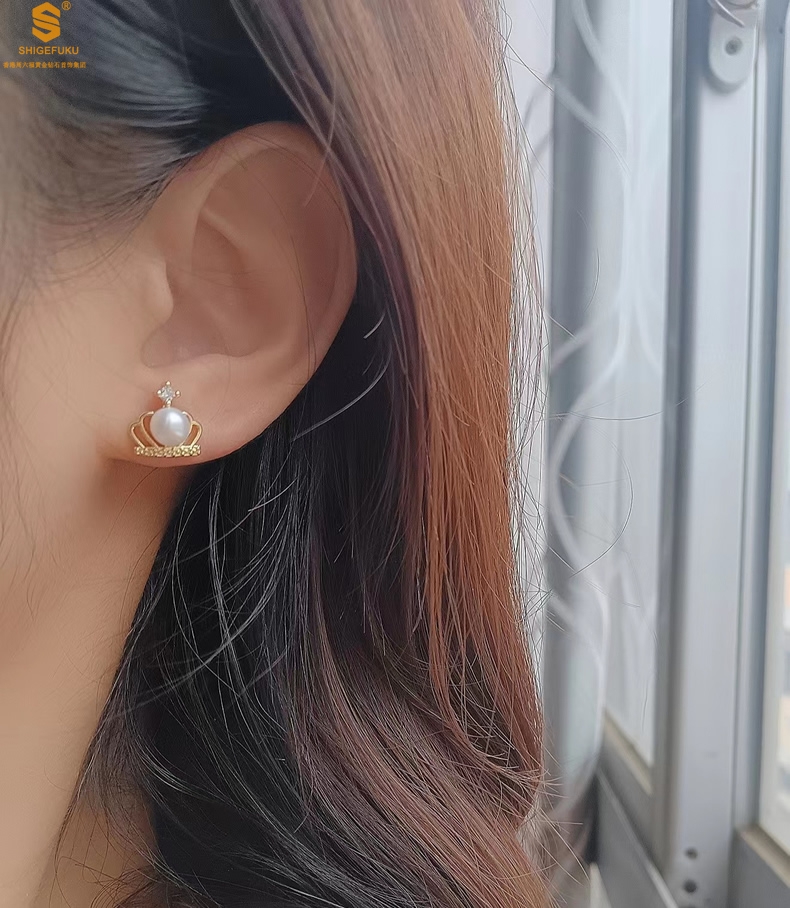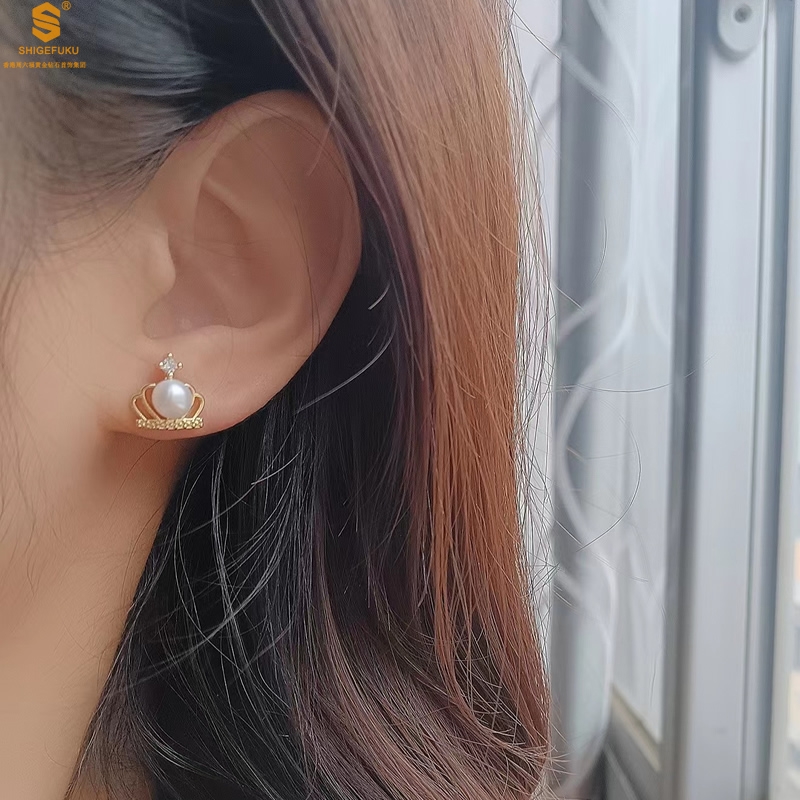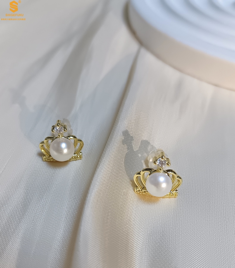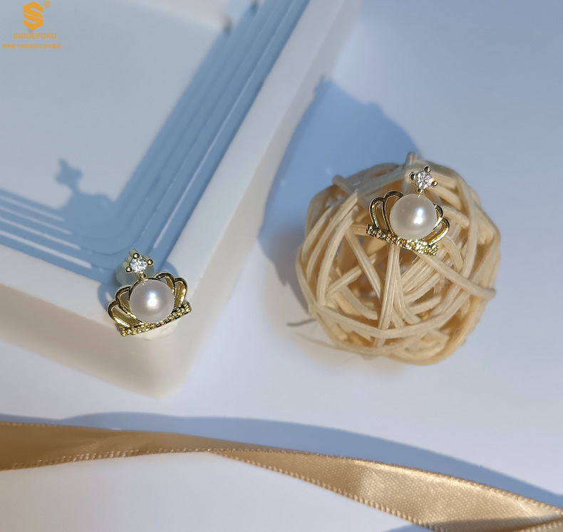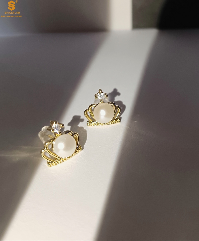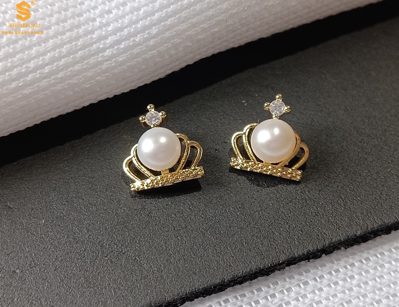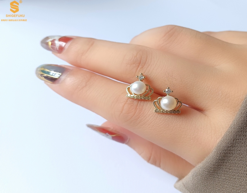 【品名】天然珍珠镶钻公主皇冠耳钉(对)