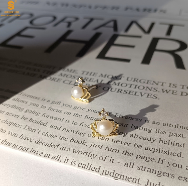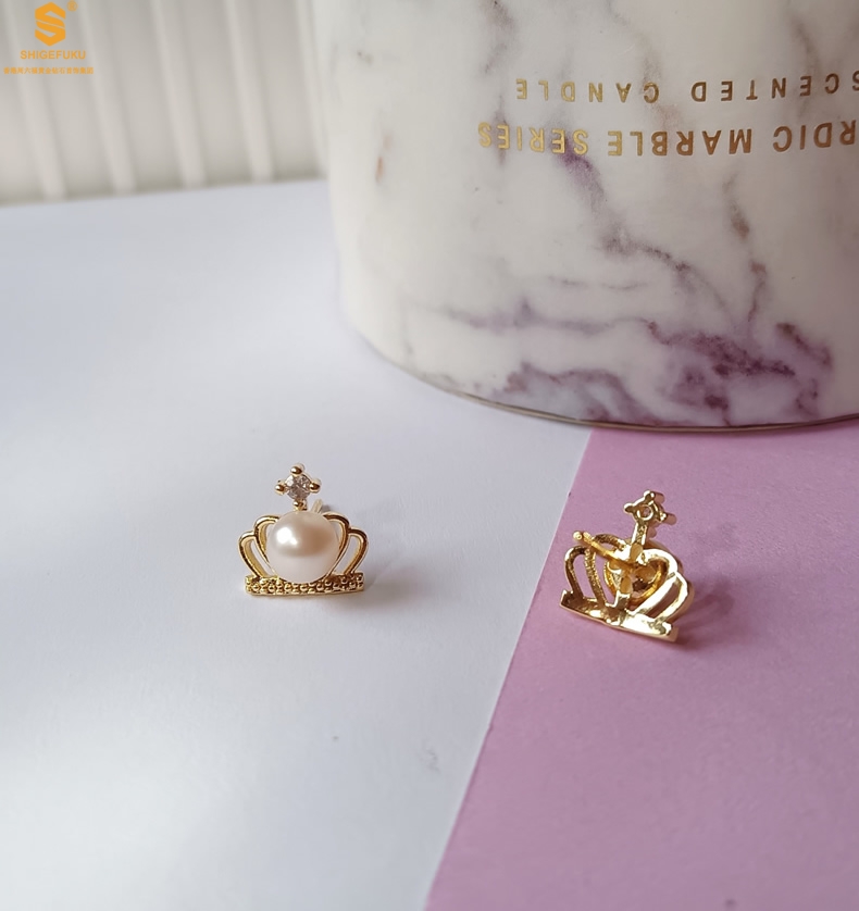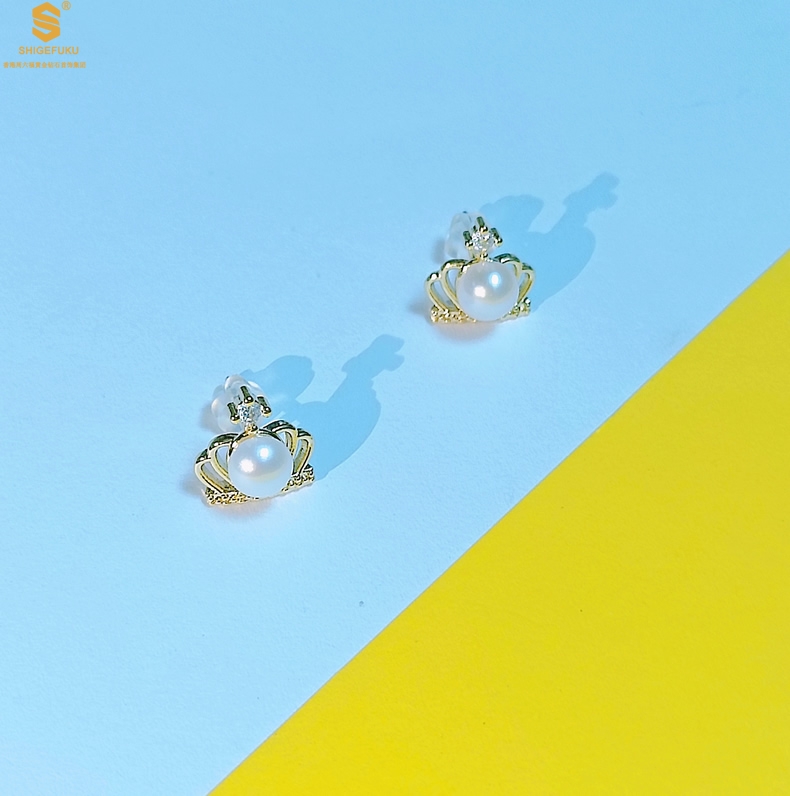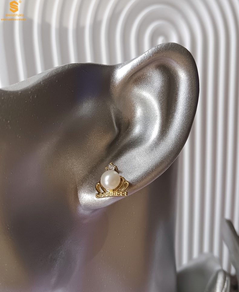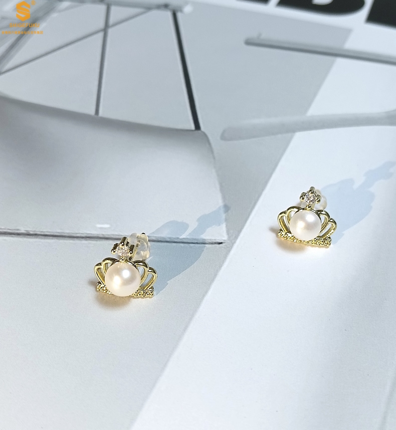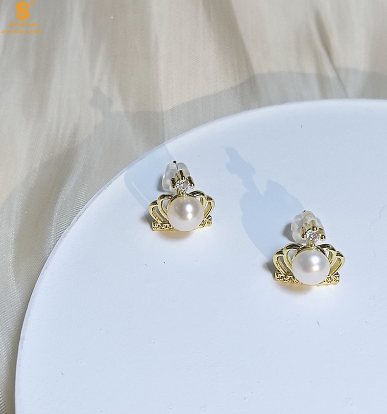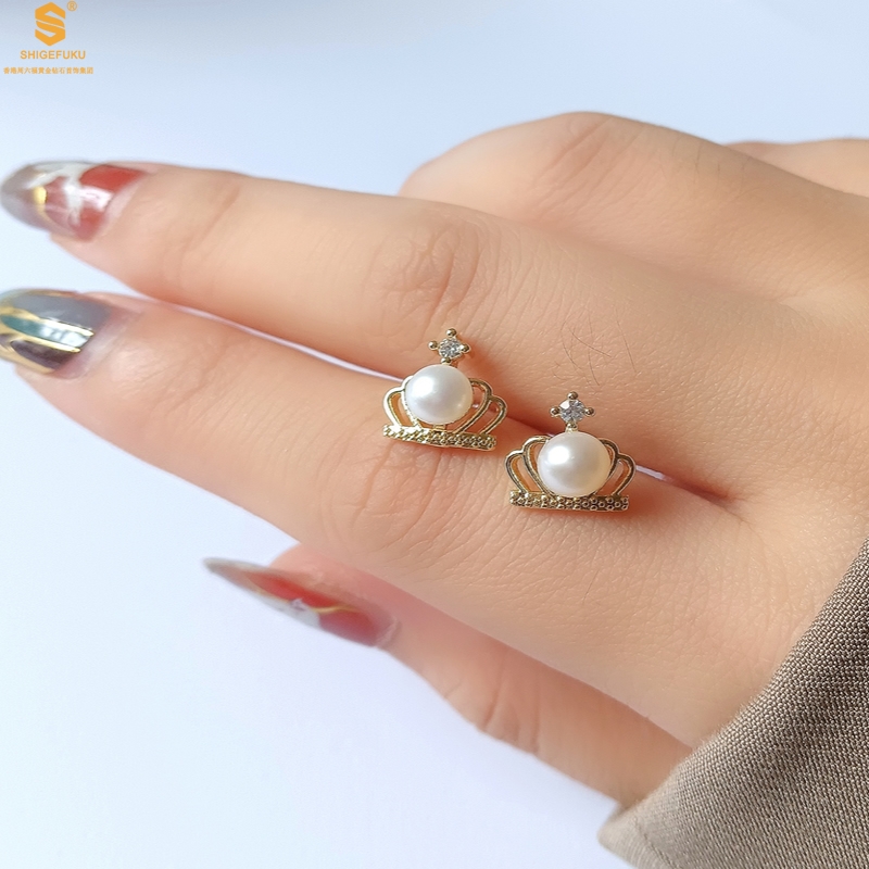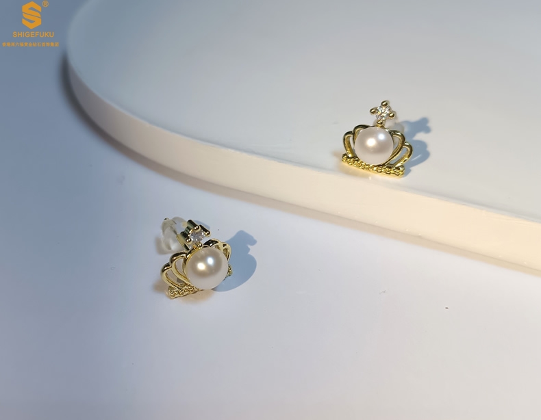 【品名】天然珍珠镶钻公主皇冠耳钉(对)