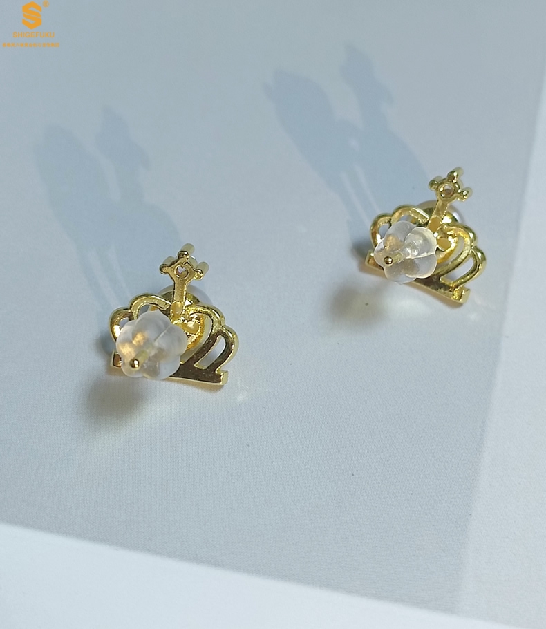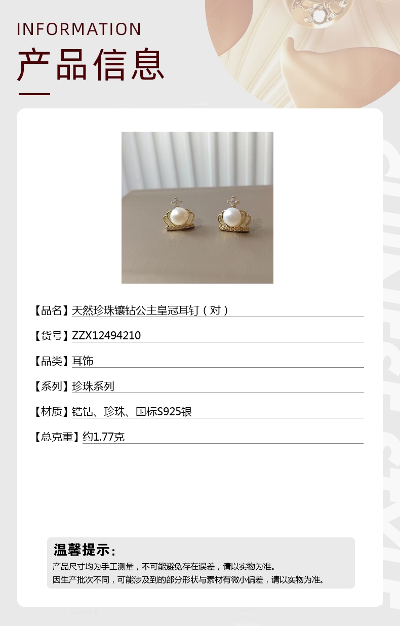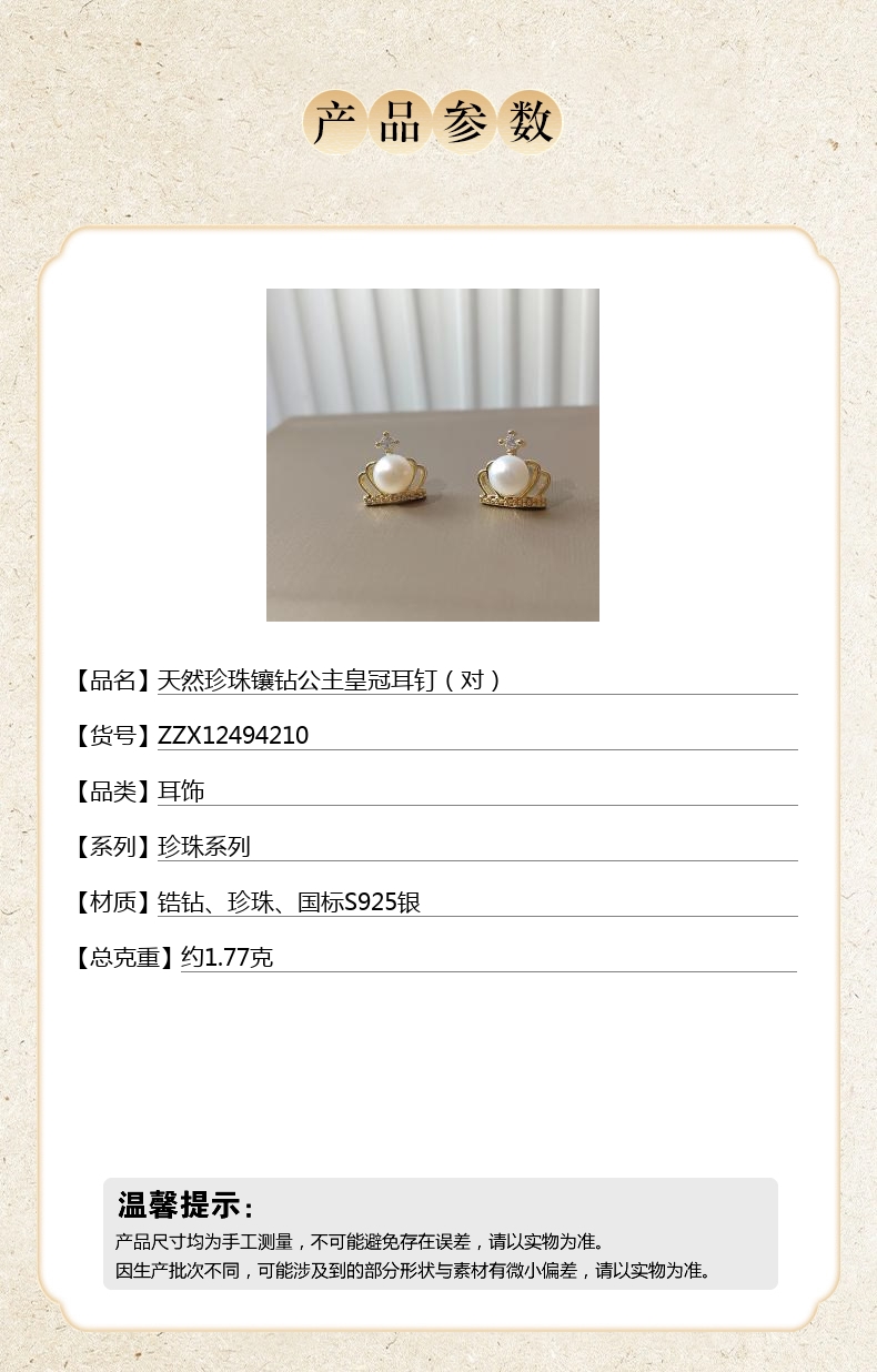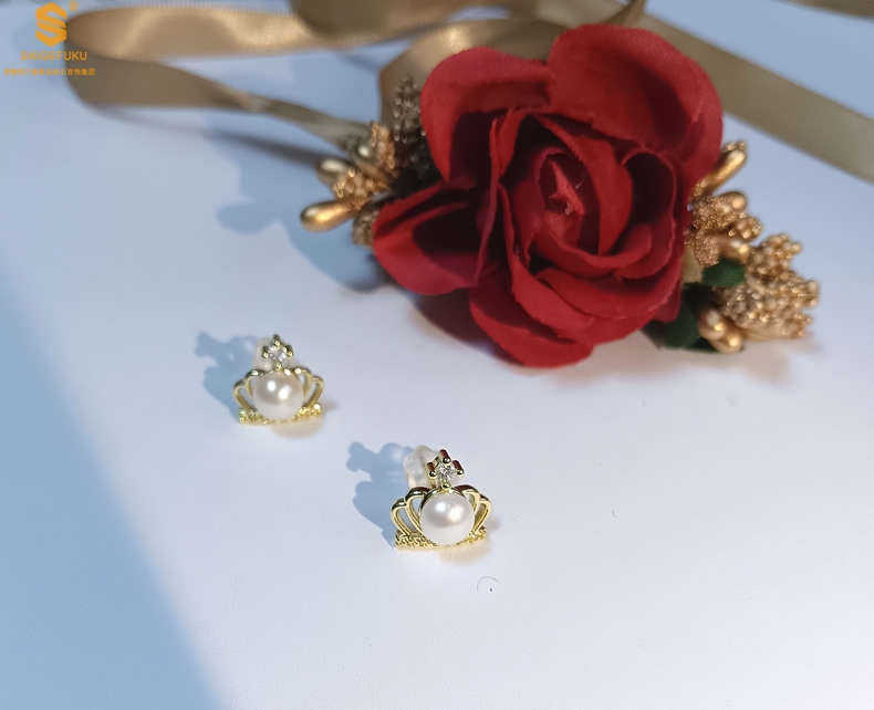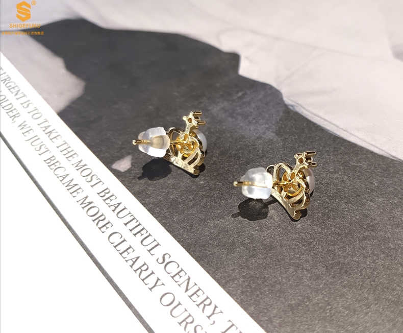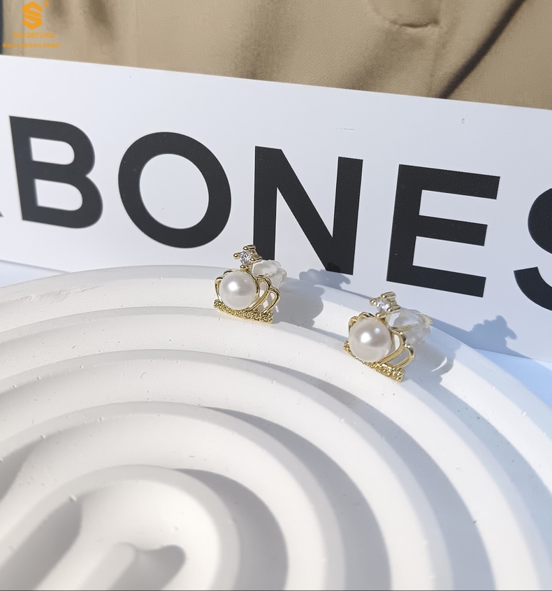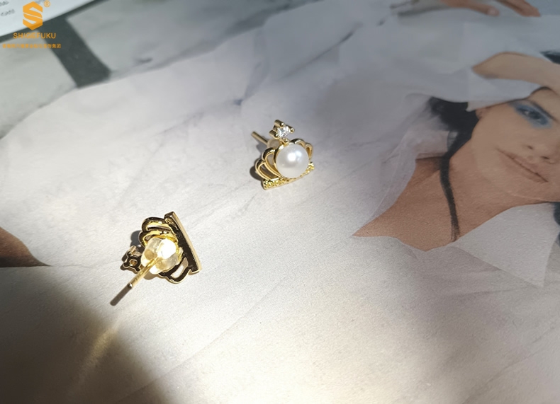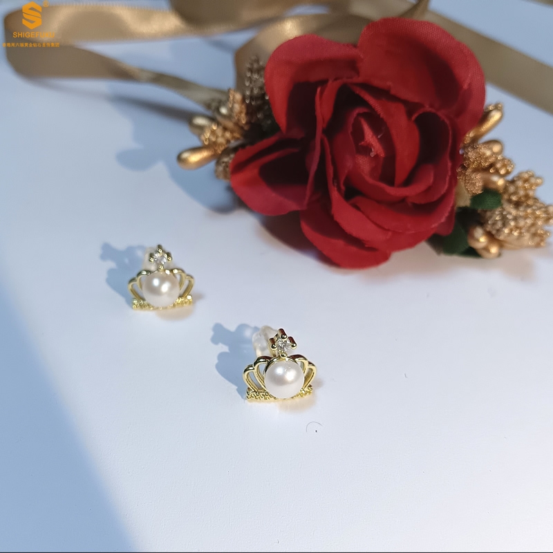 【品名】天然珍珠镶钻公主皇冠耳钉(对)