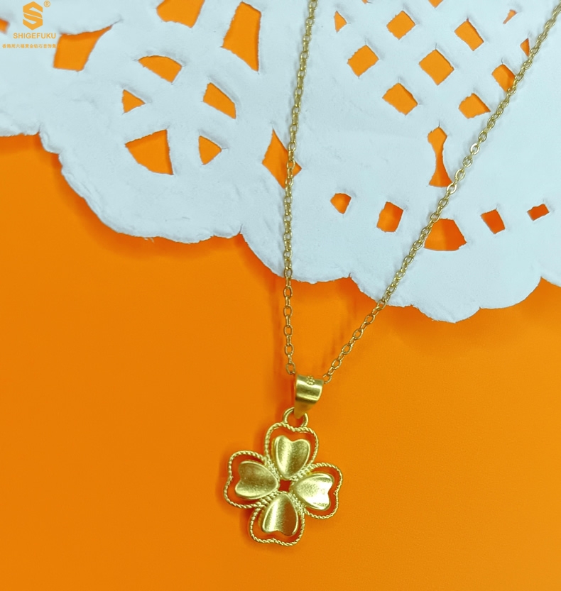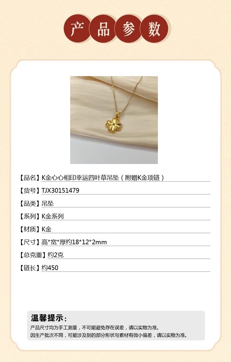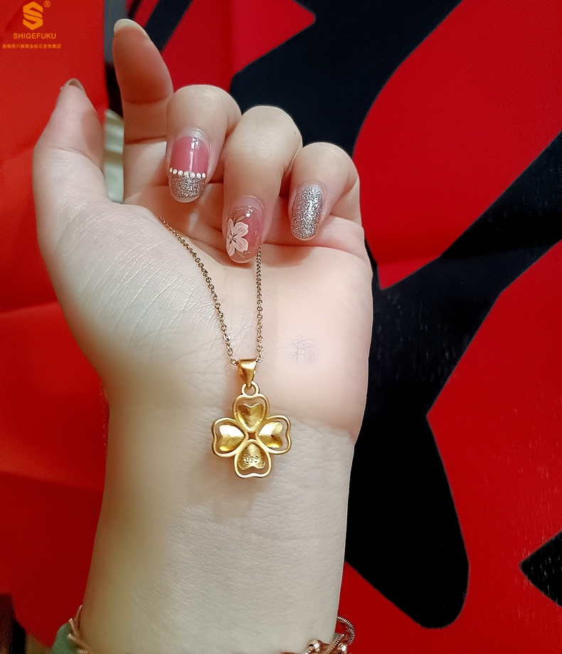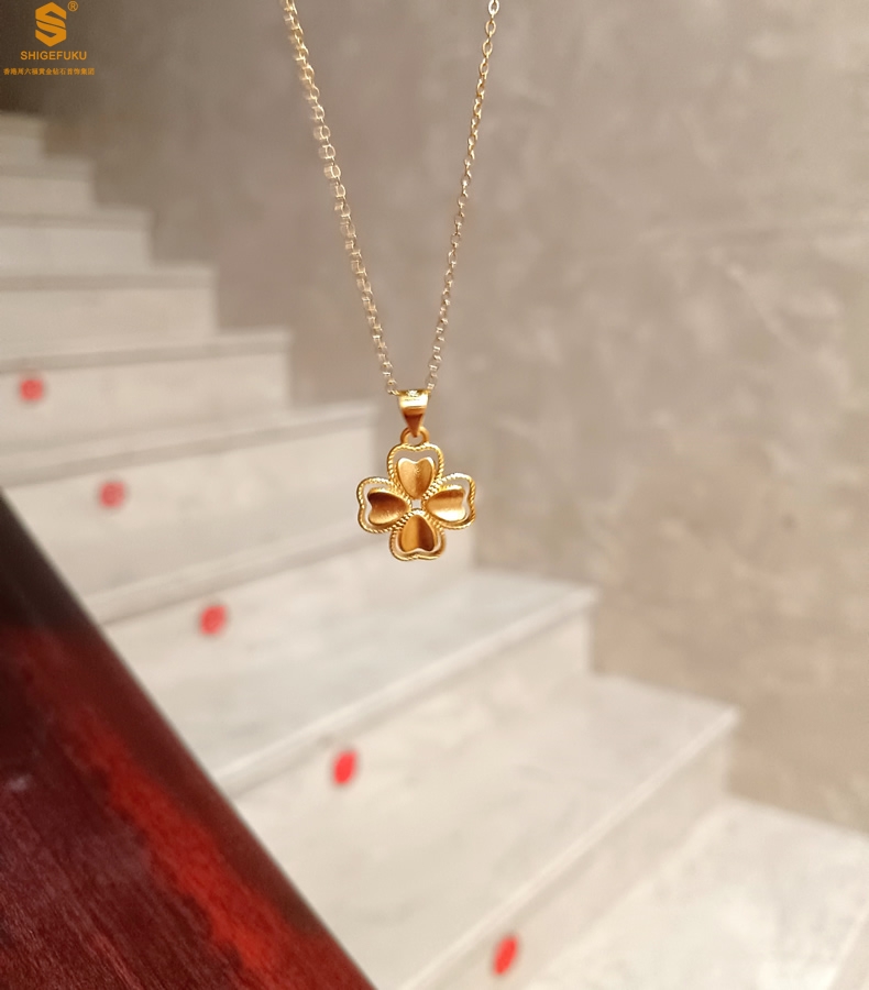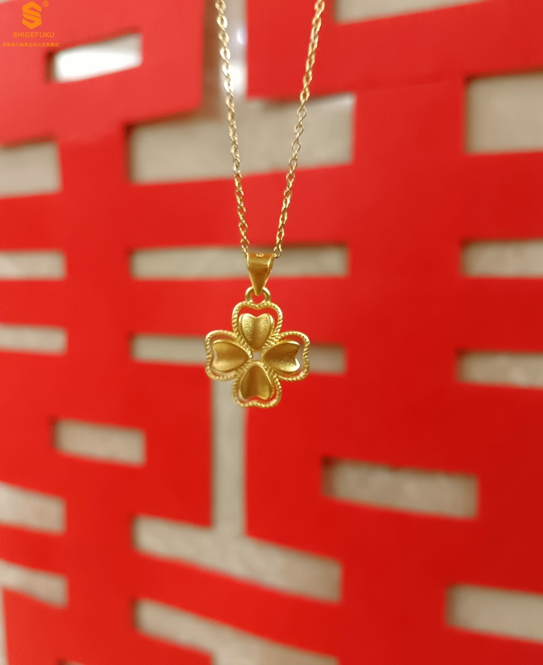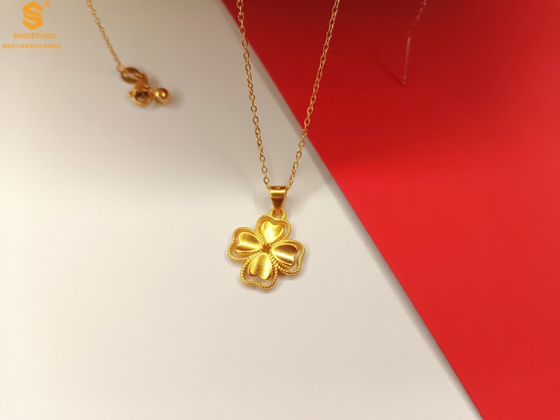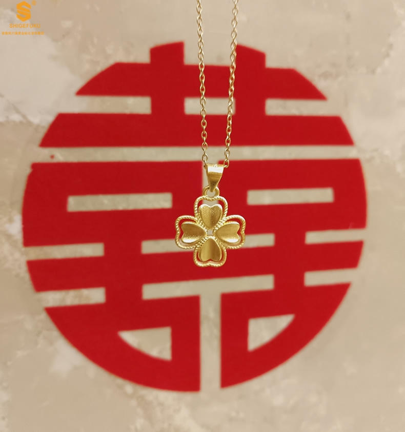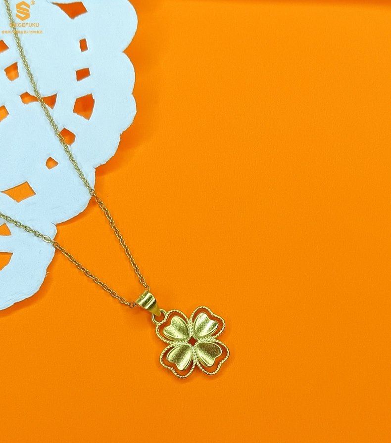 【品名】K金心心相印幸运四叶草吊坠(附赠K金项链)