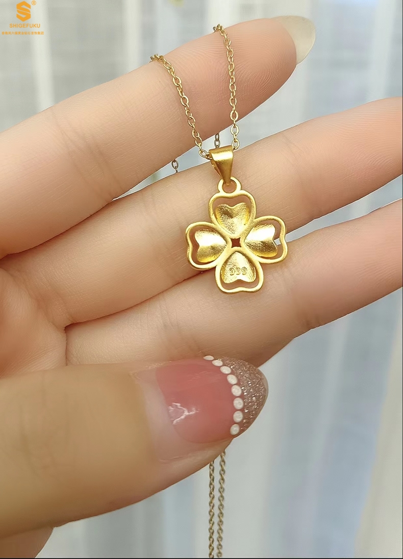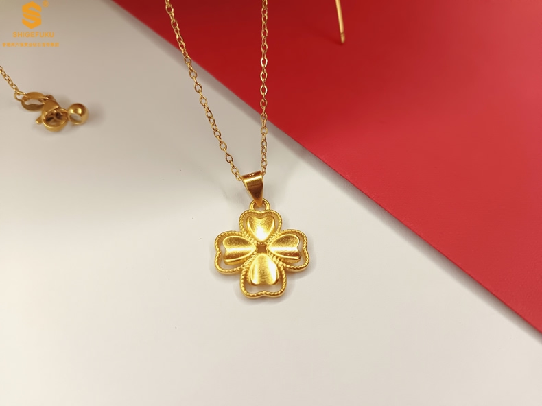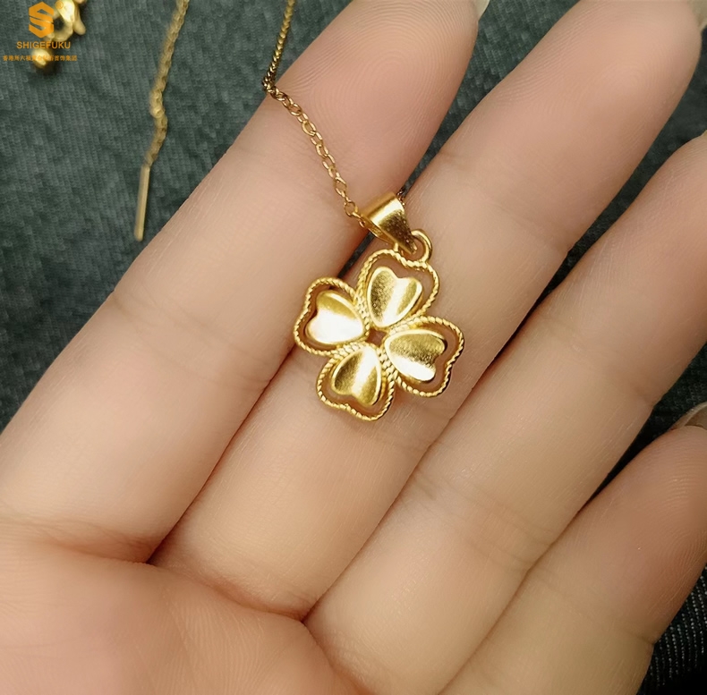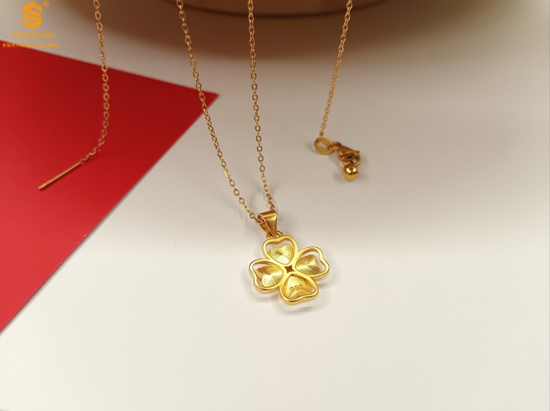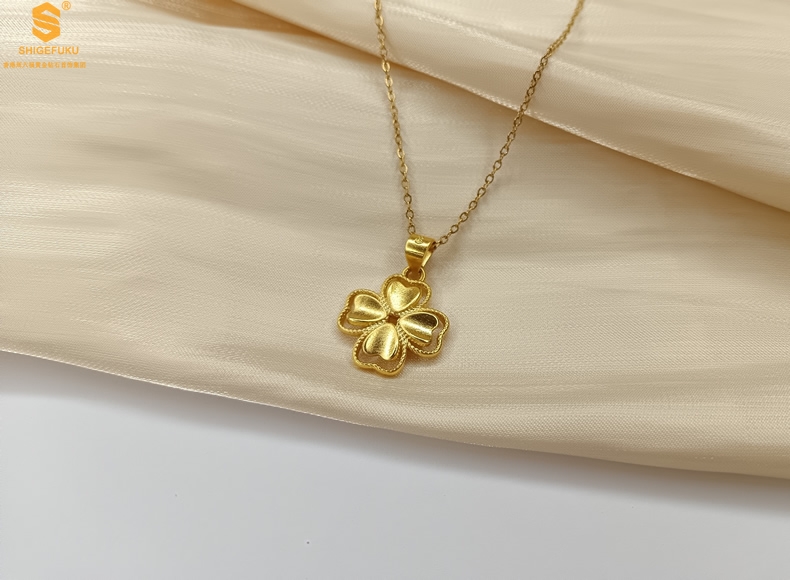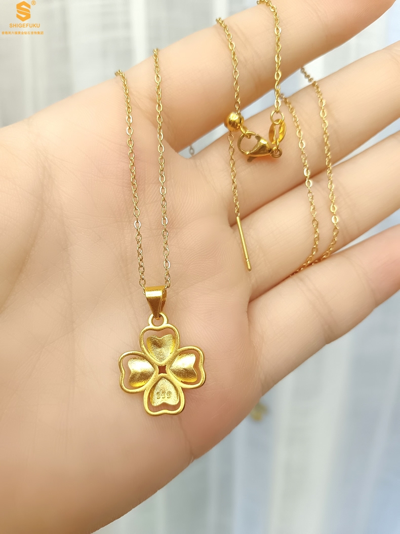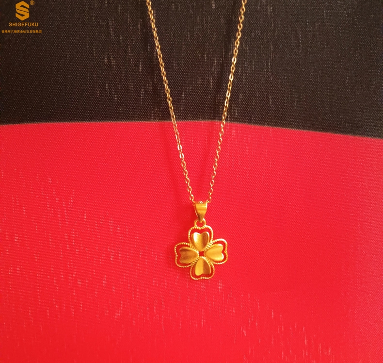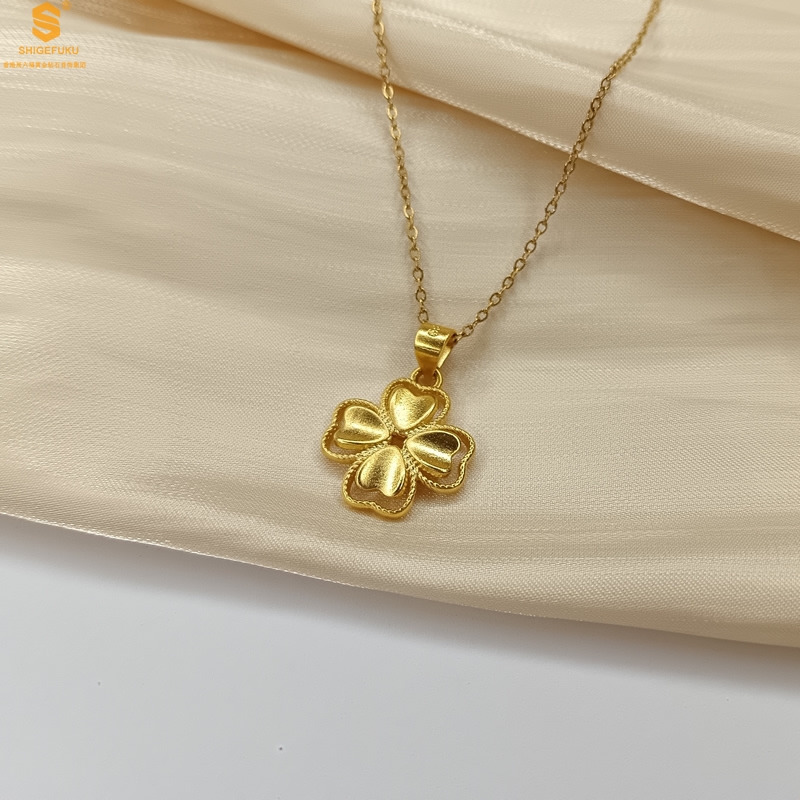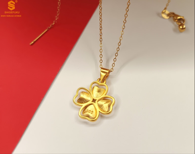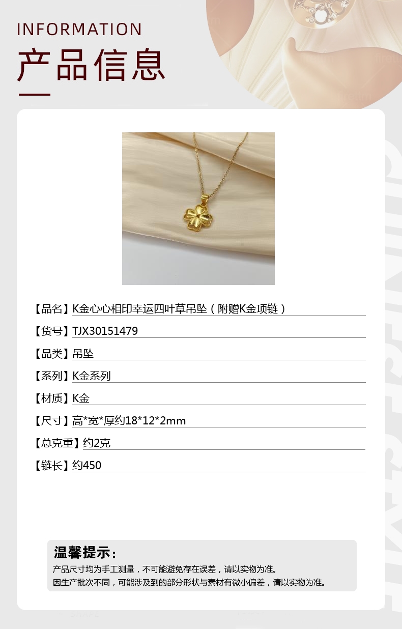 【品名】K金心心相印幸运四叶草吊坠(附赠K金项链)