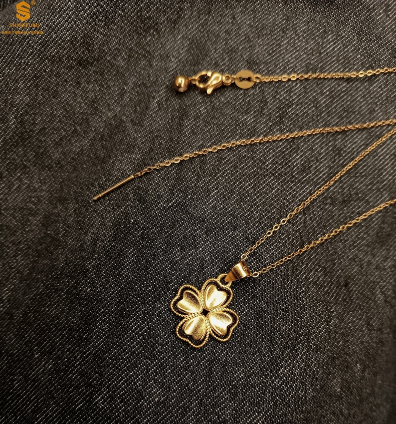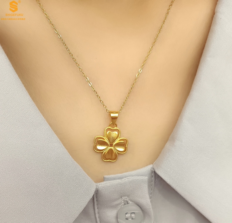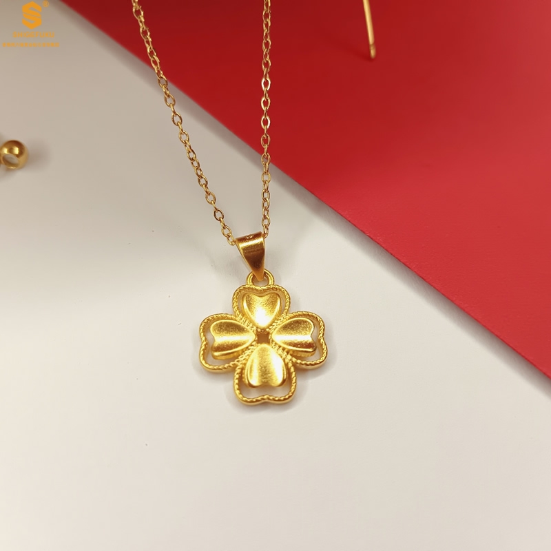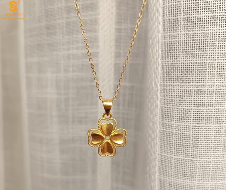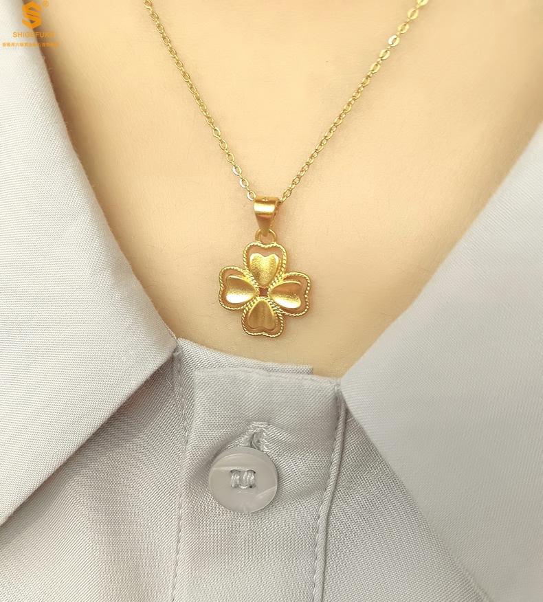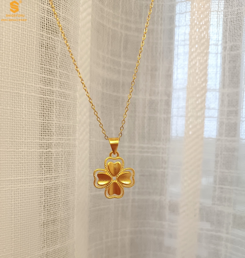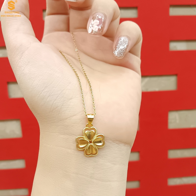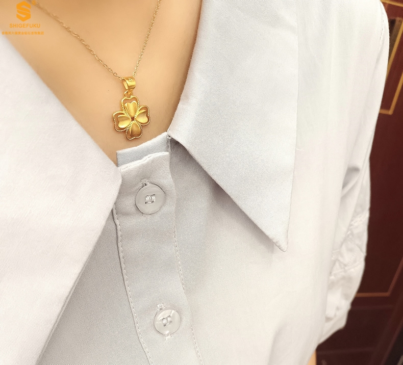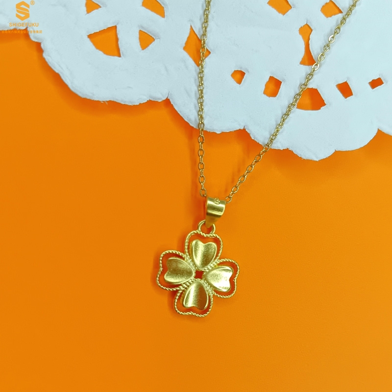 【品名】K金心心相印幸运四叶草吊坠(附赠K金项链)