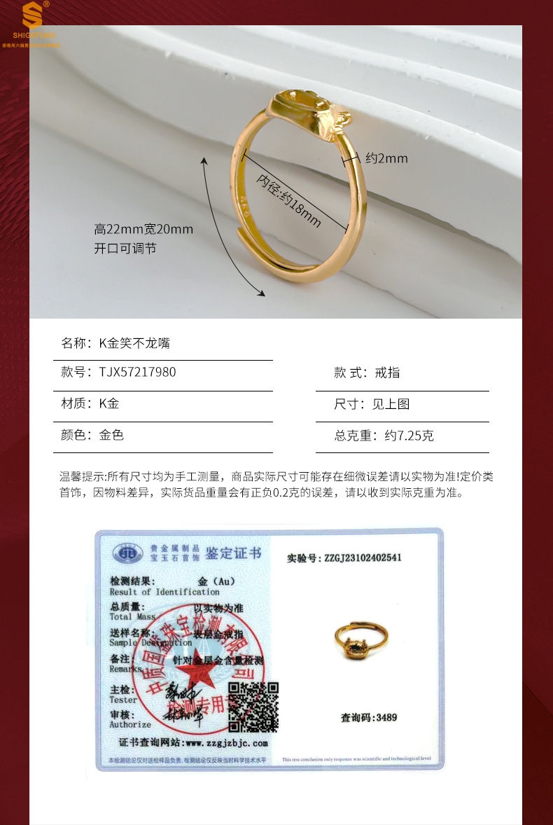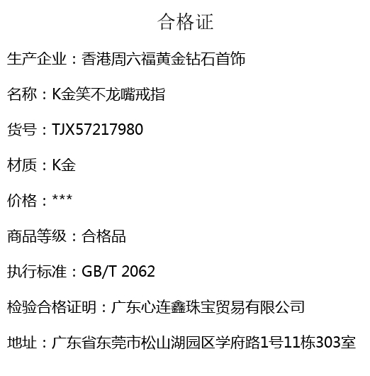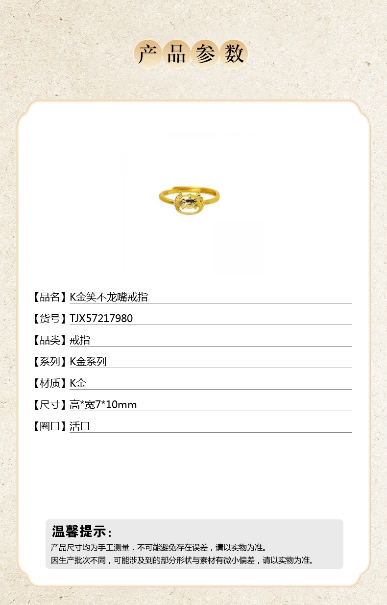 【品名】K金笑不龙嘴戒指