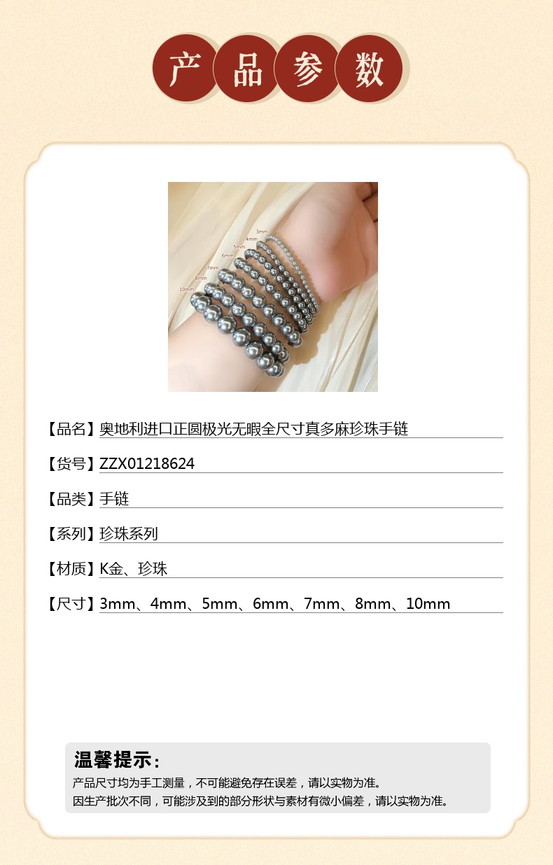 【品名】奥地利进口正圆极光无暇全尺寸真多麻珍珠手链