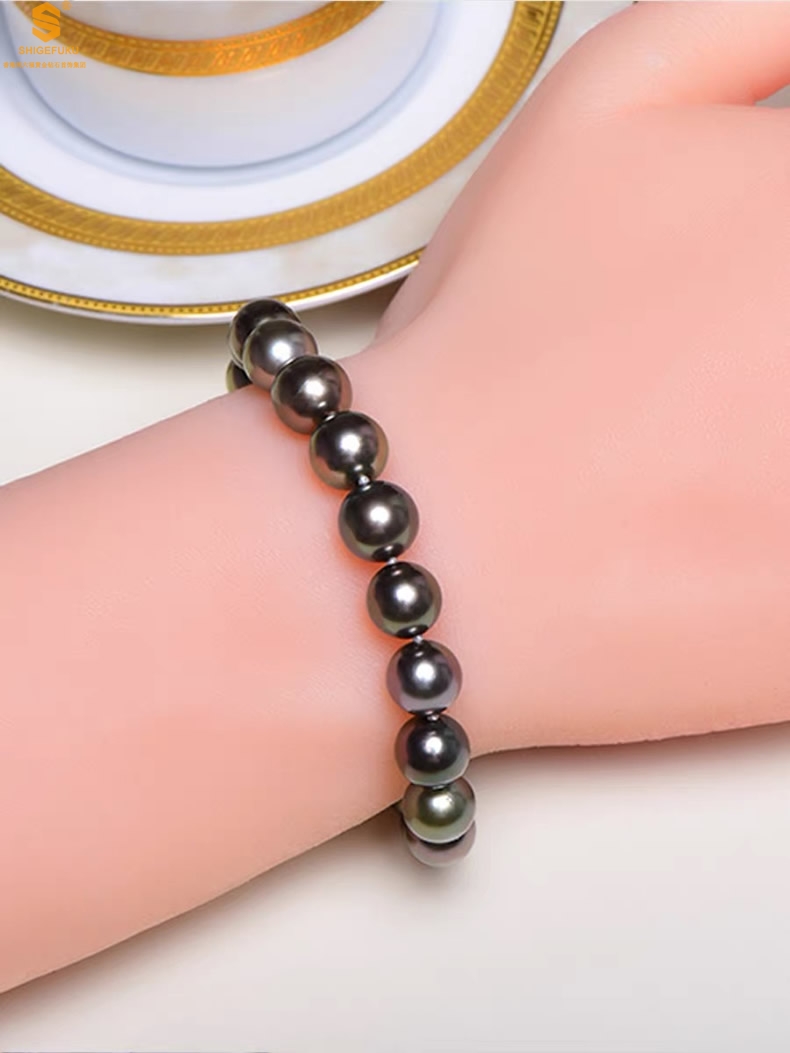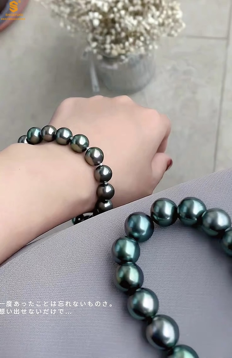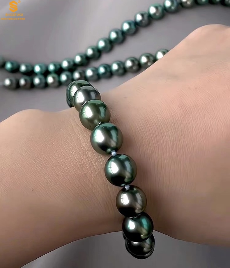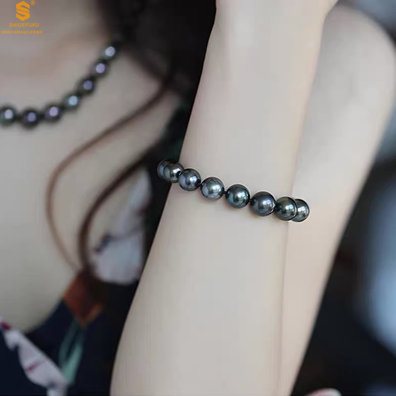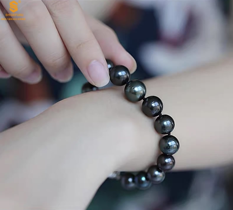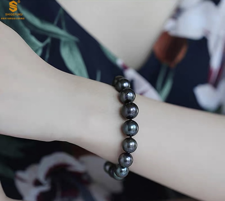 【品名】大溪地进口正圆极光无暇全尺寸孔雀珍珠手链