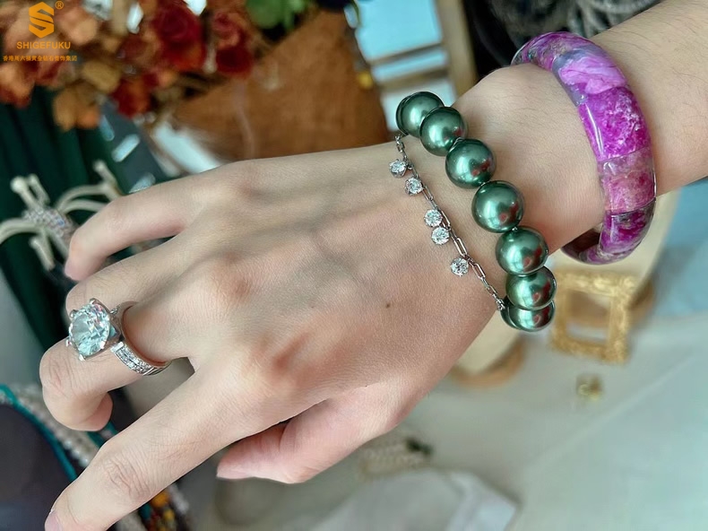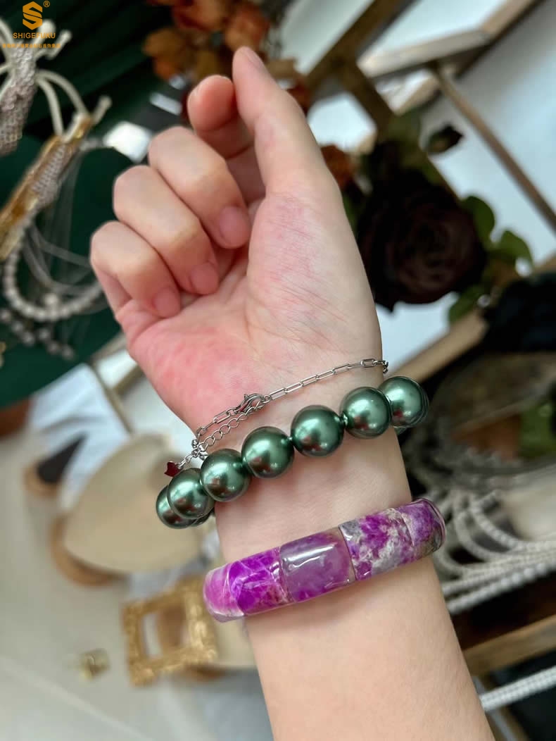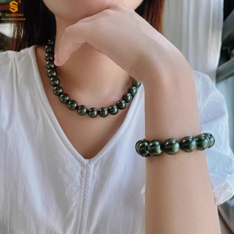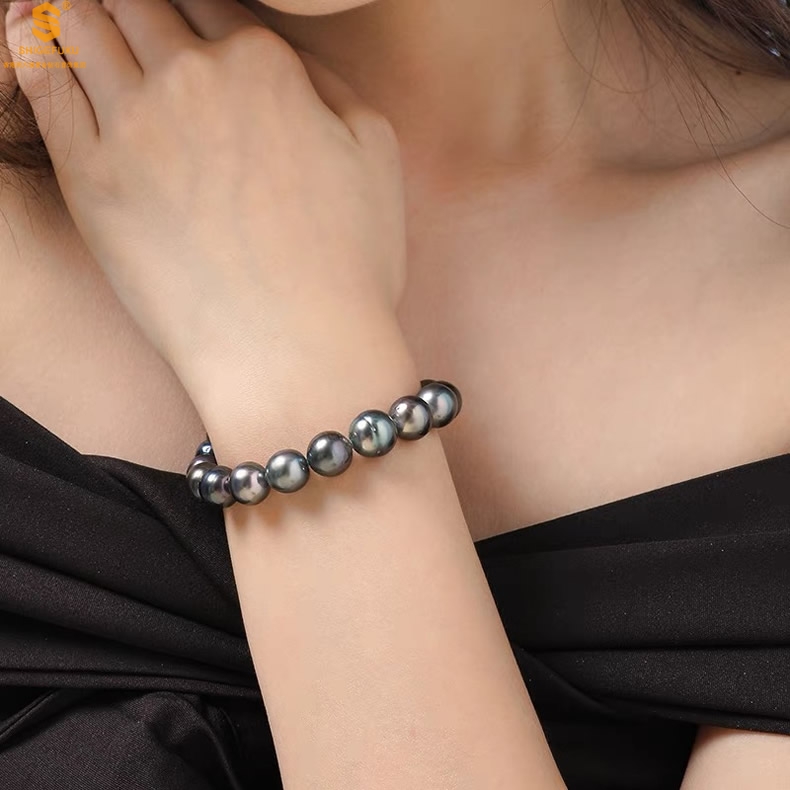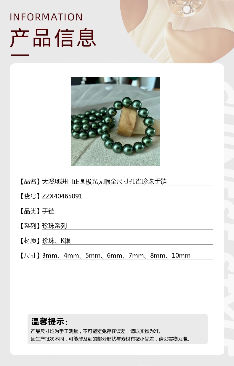 【品名】大溪地进口正圆极光无暇全尺寸孔雀珍珠手链