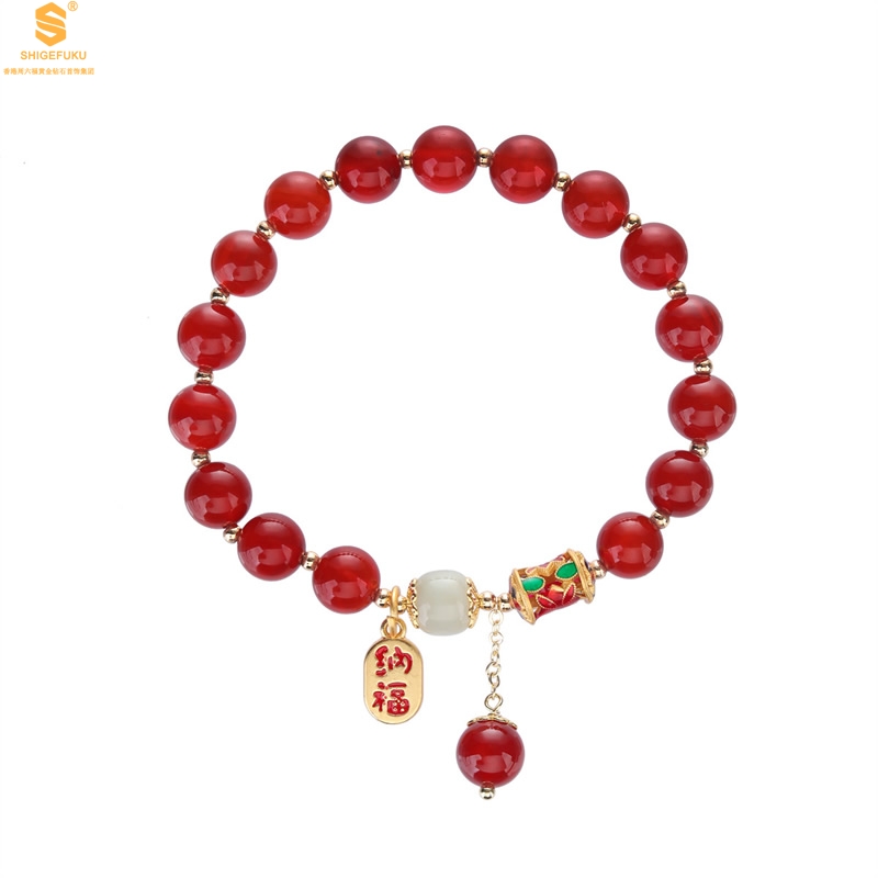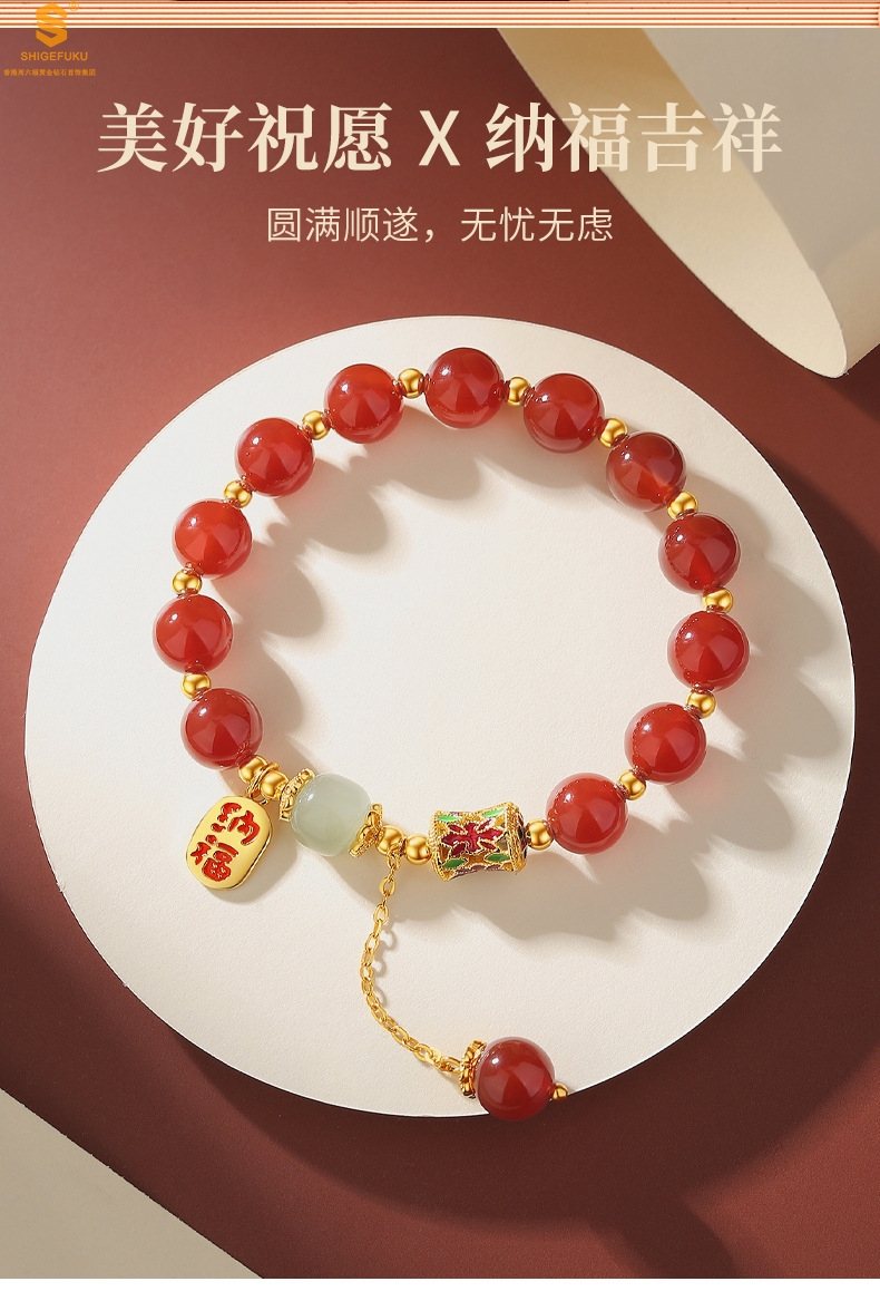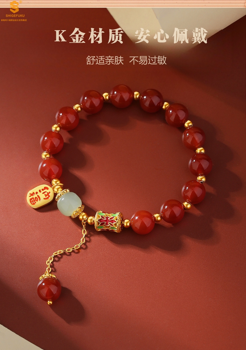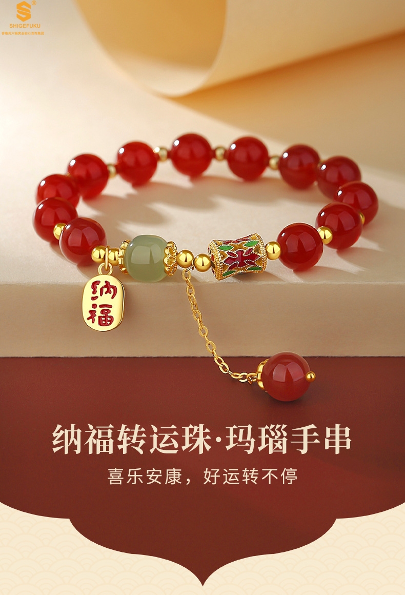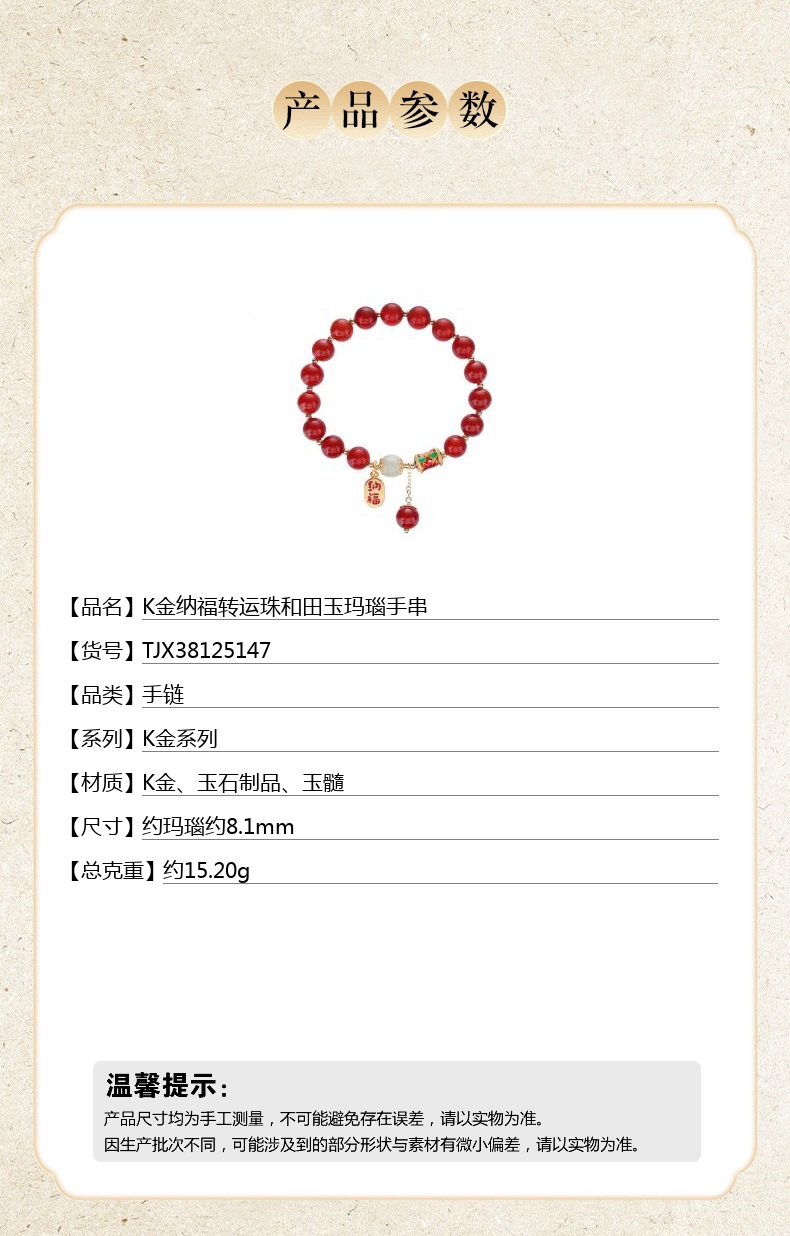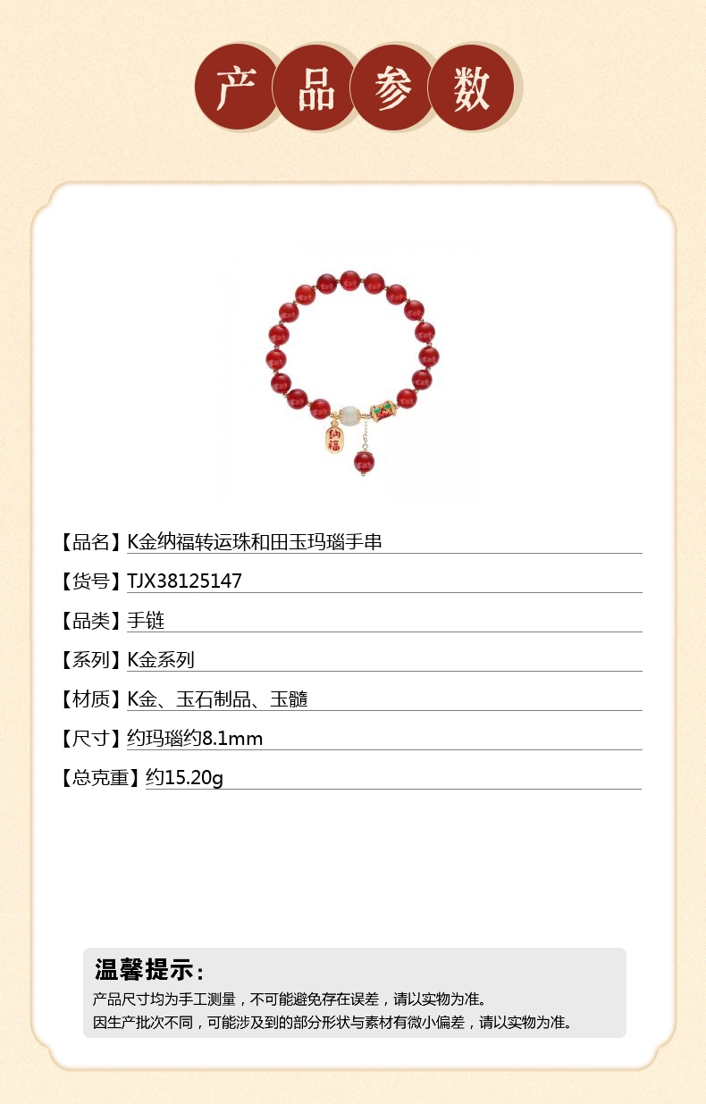 【品名】K金纳福转运珠和田玉玛瑙手串