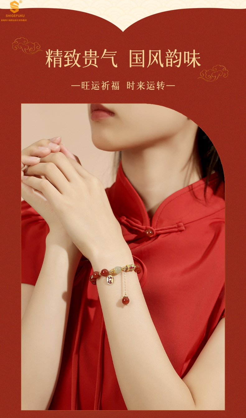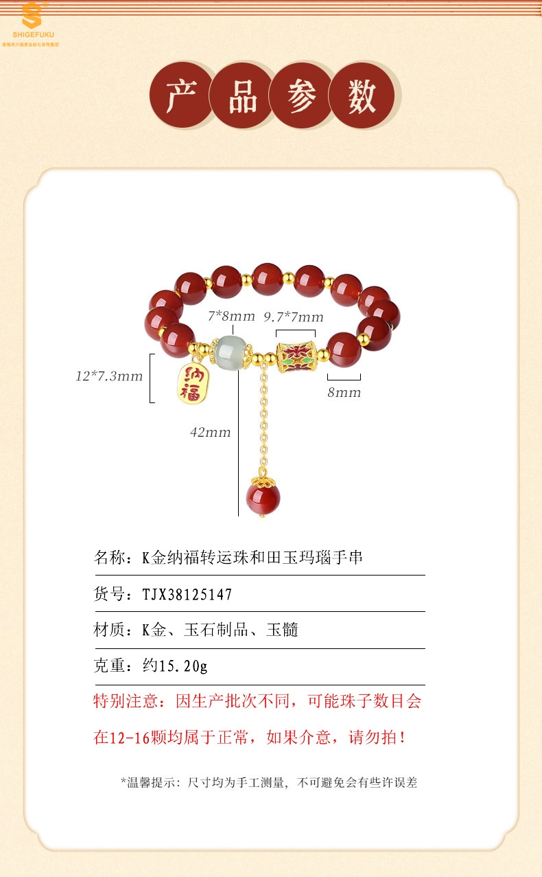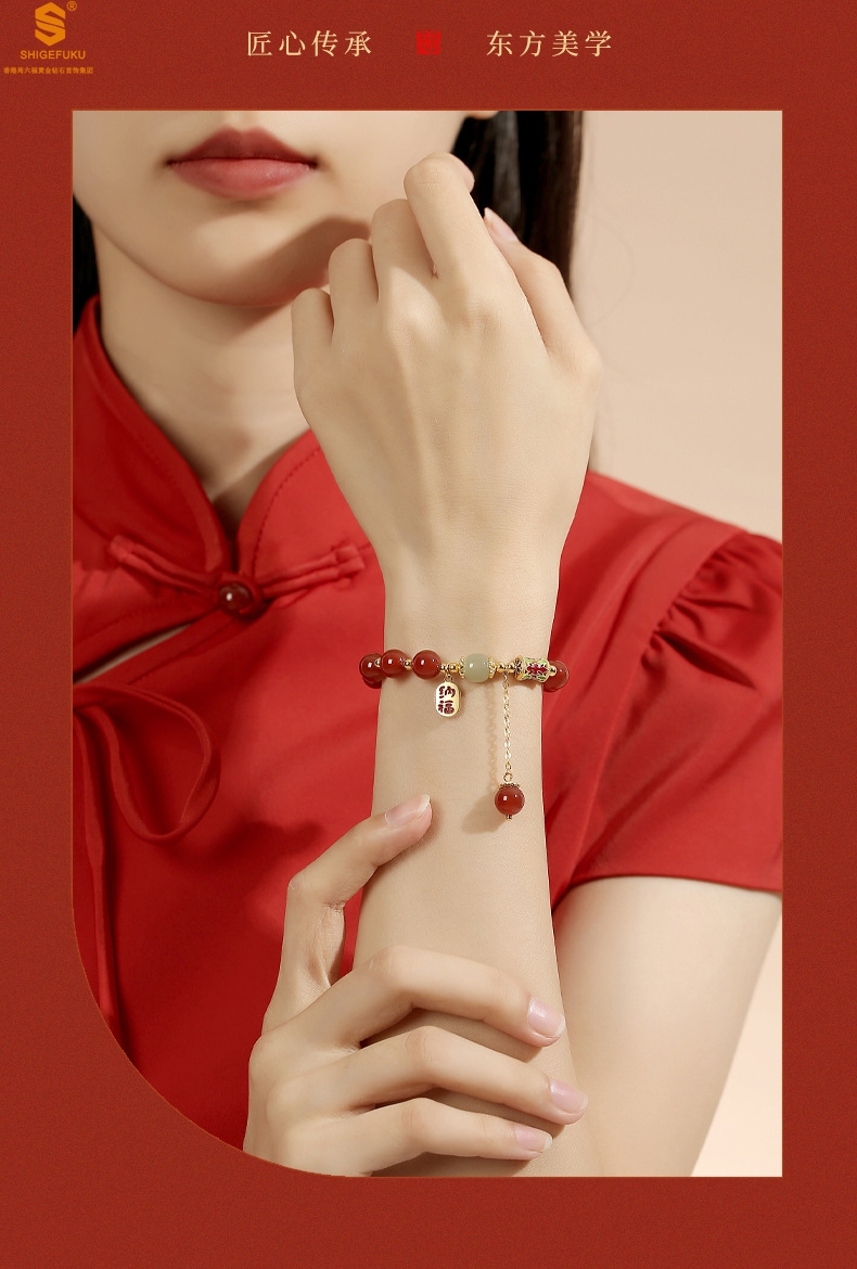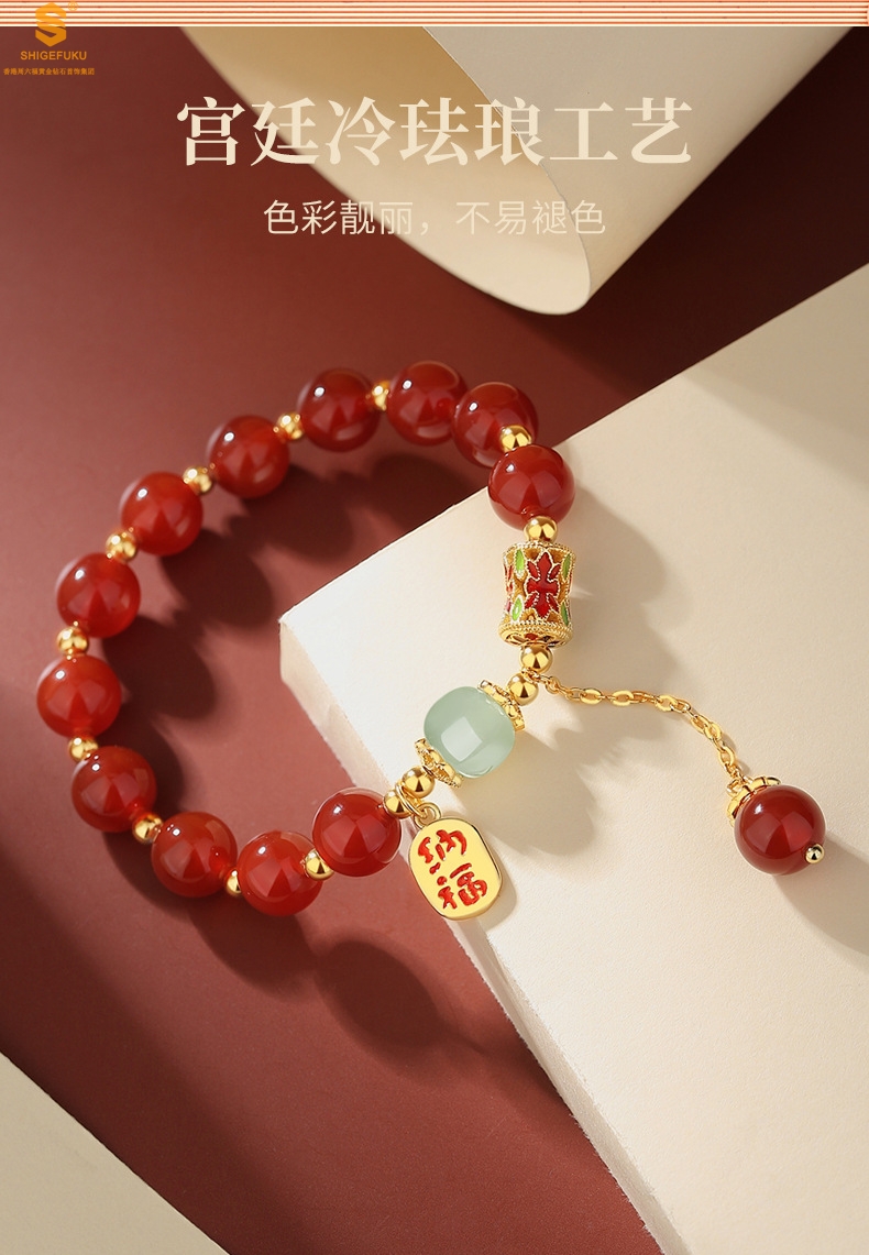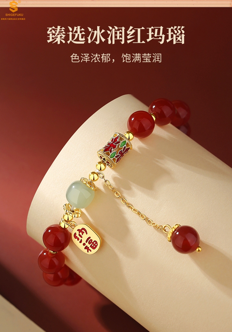 【品名】K金纳福转运珠和田玉玛瑙手串