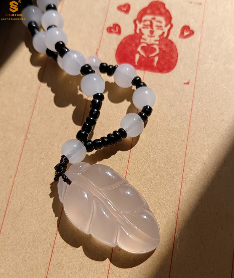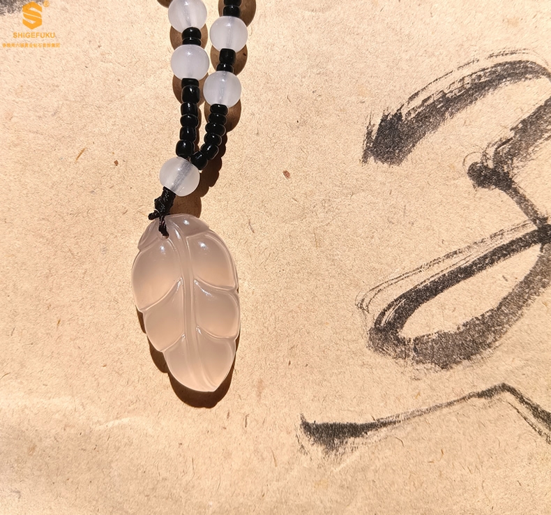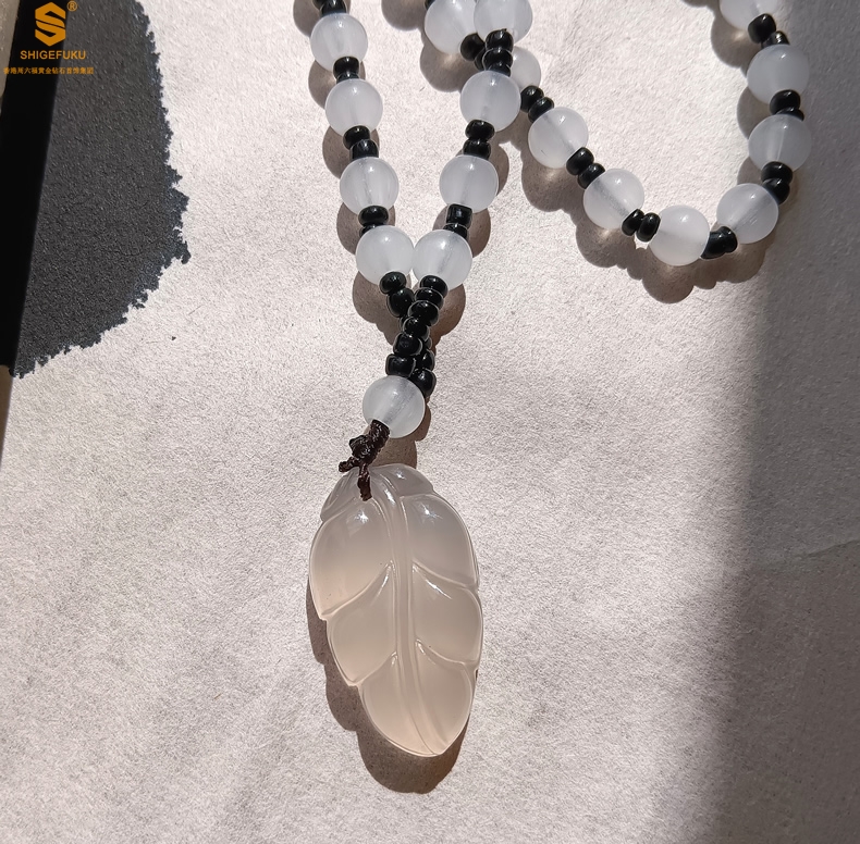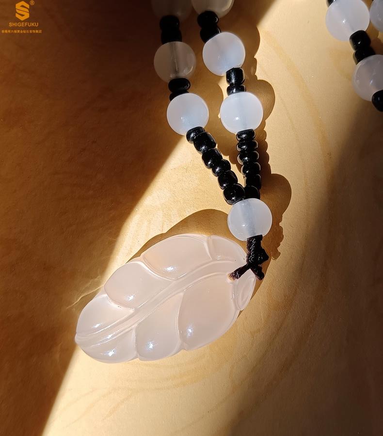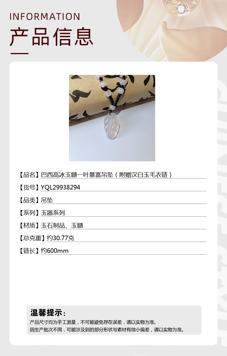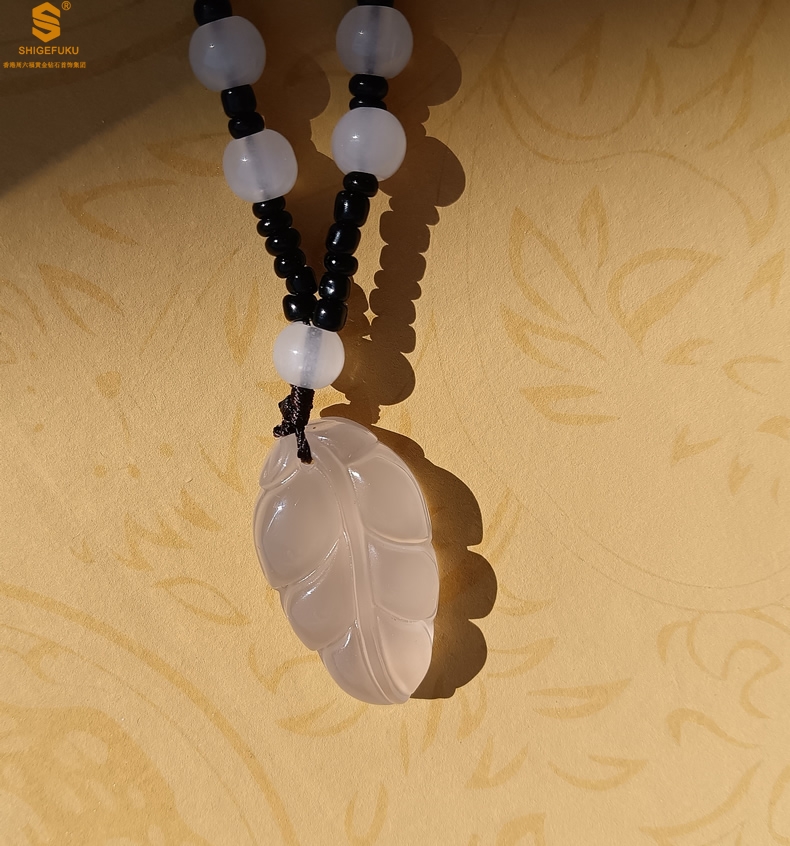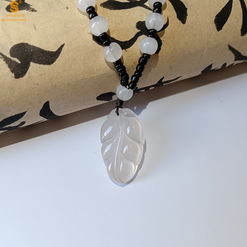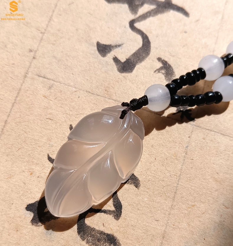 【品名】巴西高冰玉髓一叶暴富吊坠(附赠汉白玉毛衣链)