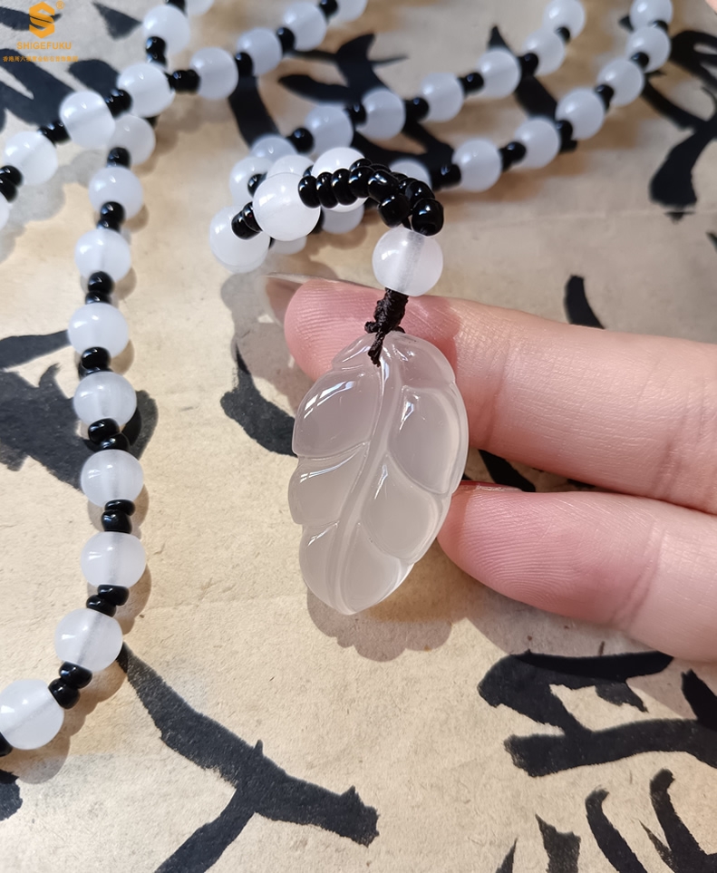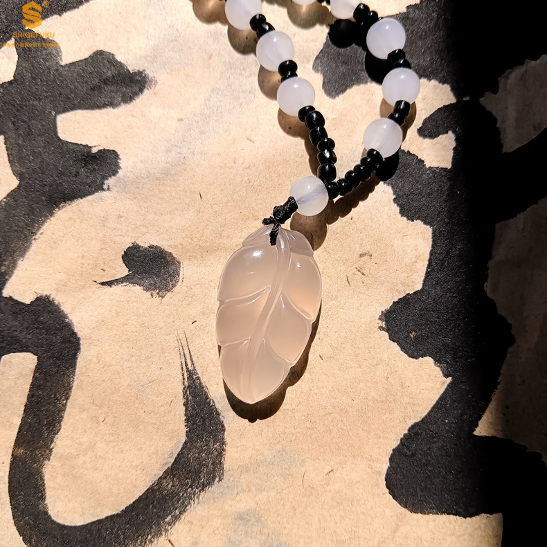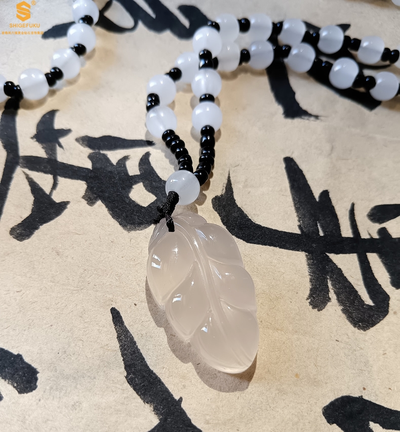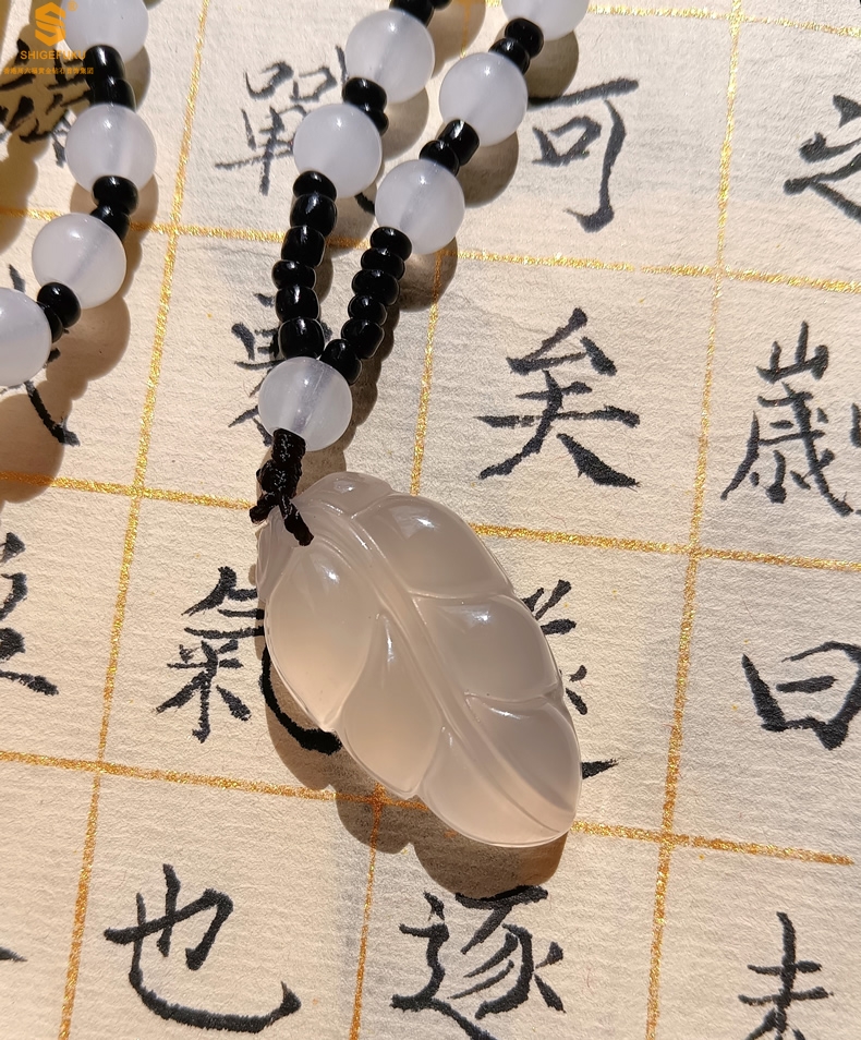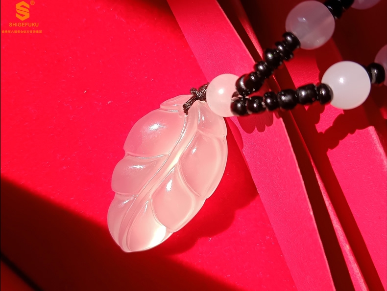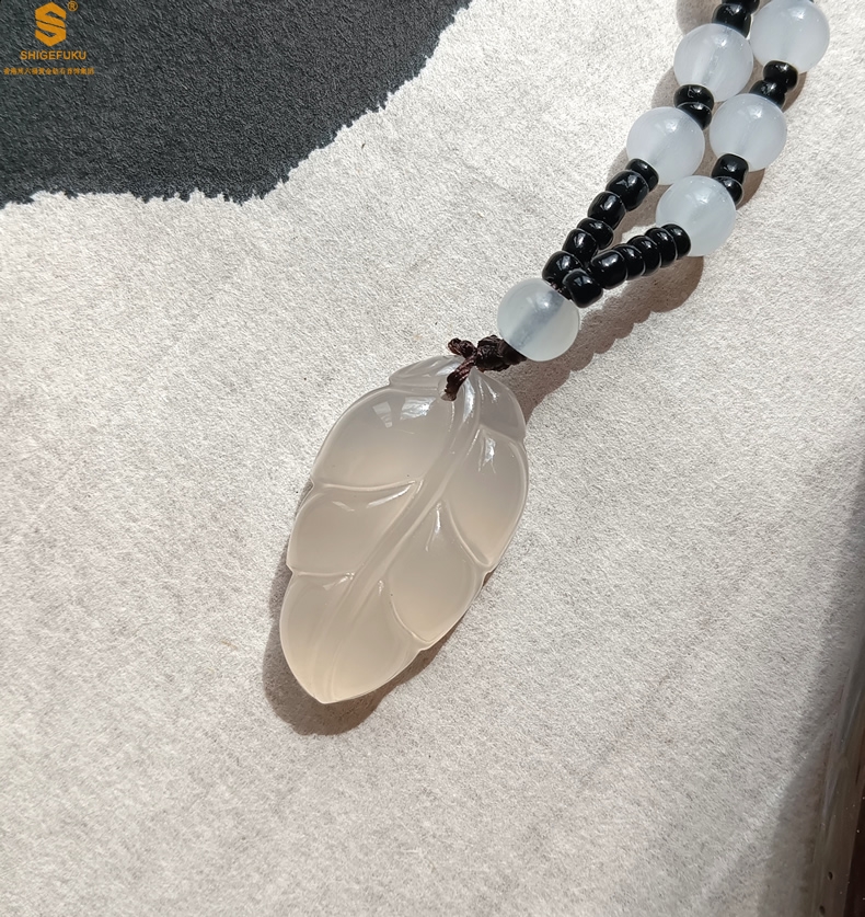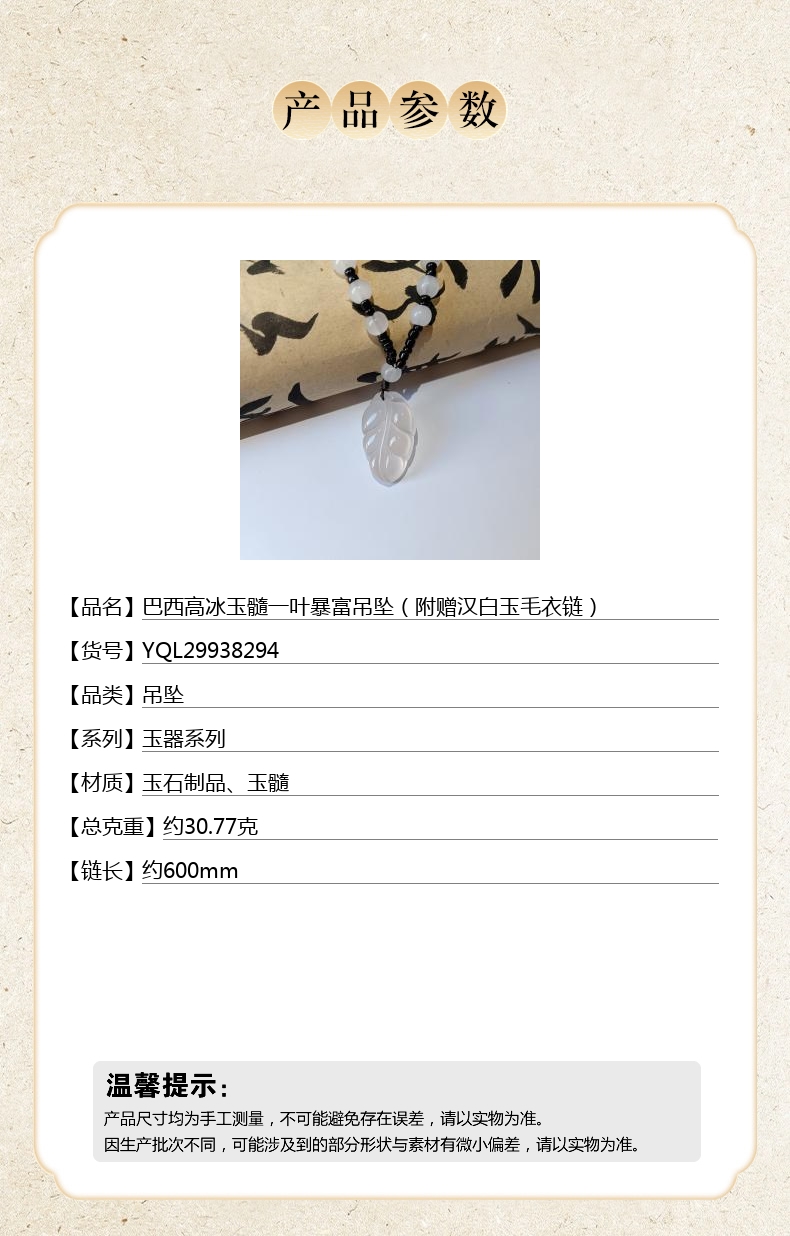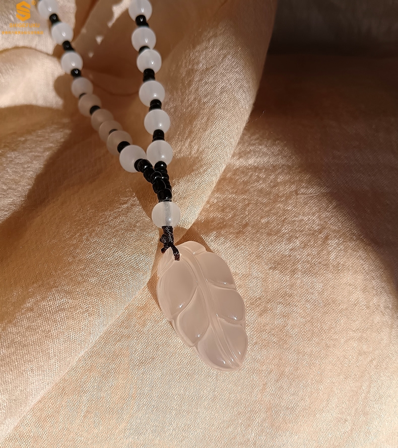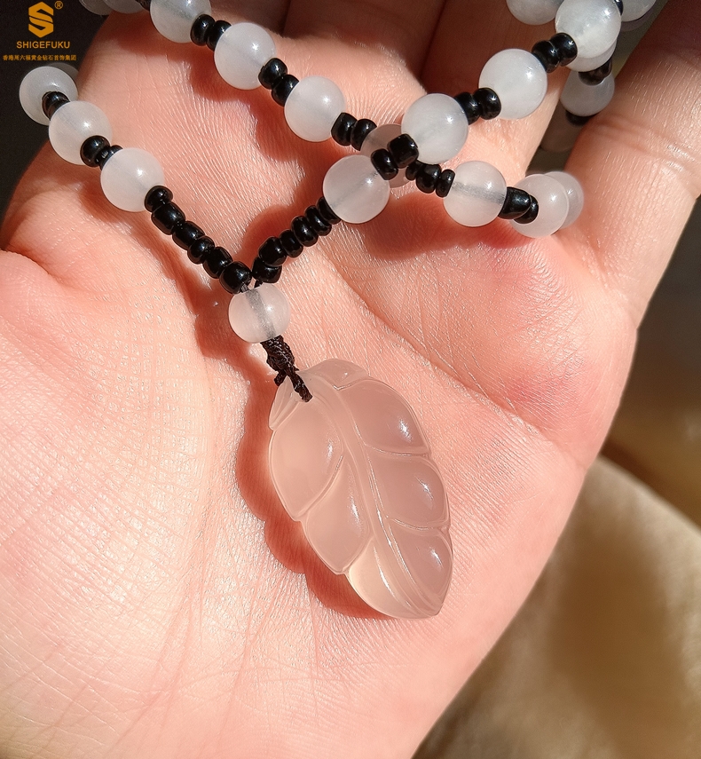 【品名】巴西高冰玉髓一叶暴富吊坠(附赠汉白玉毛衣链)
