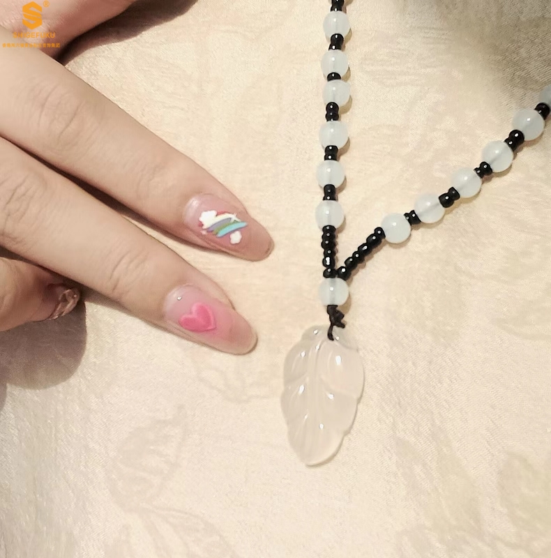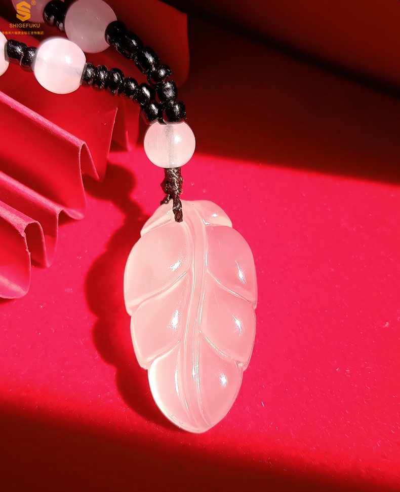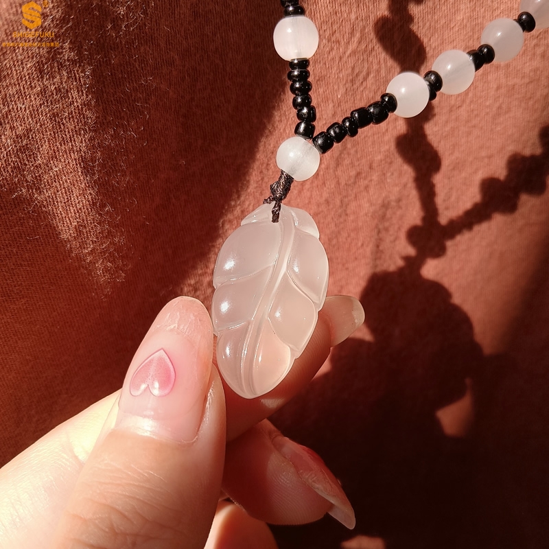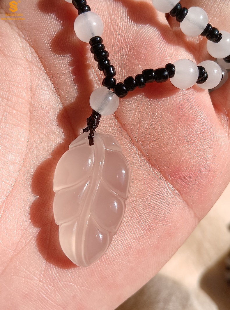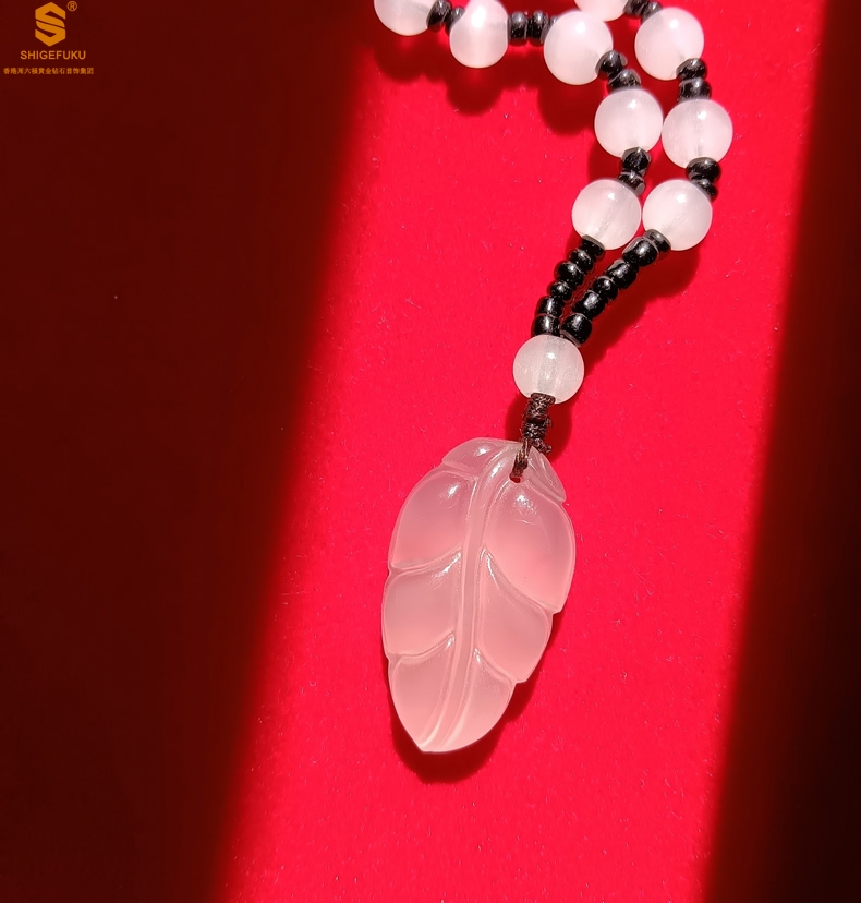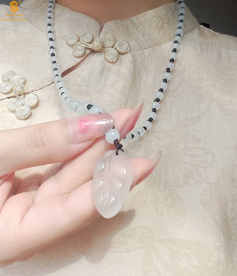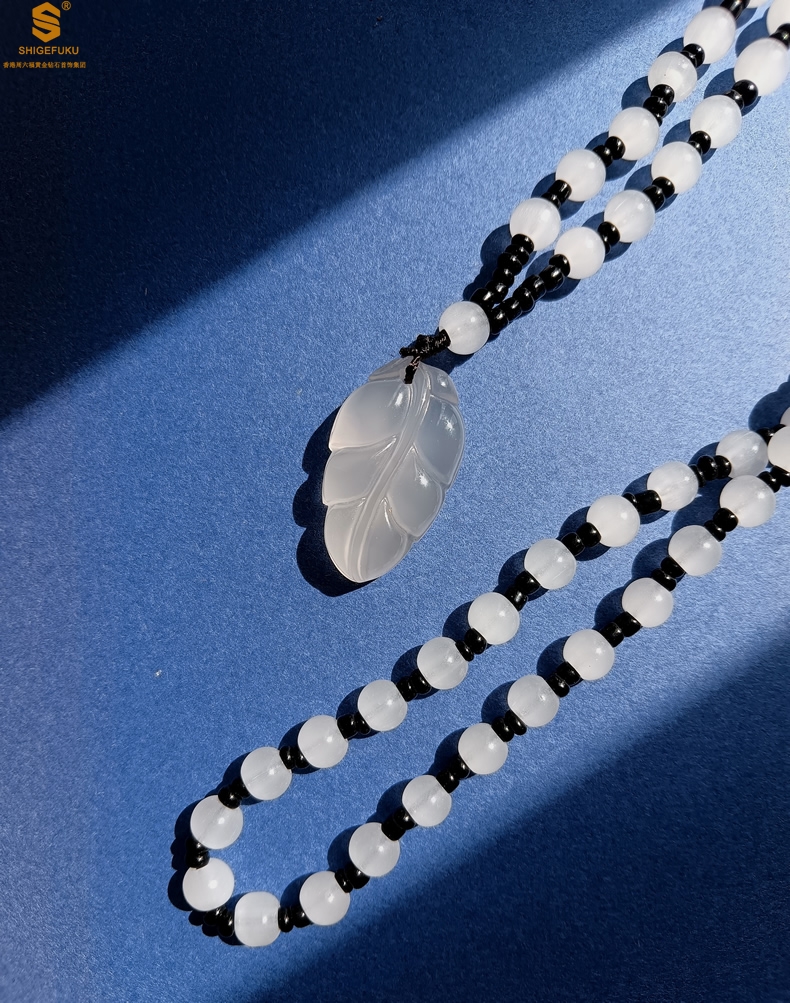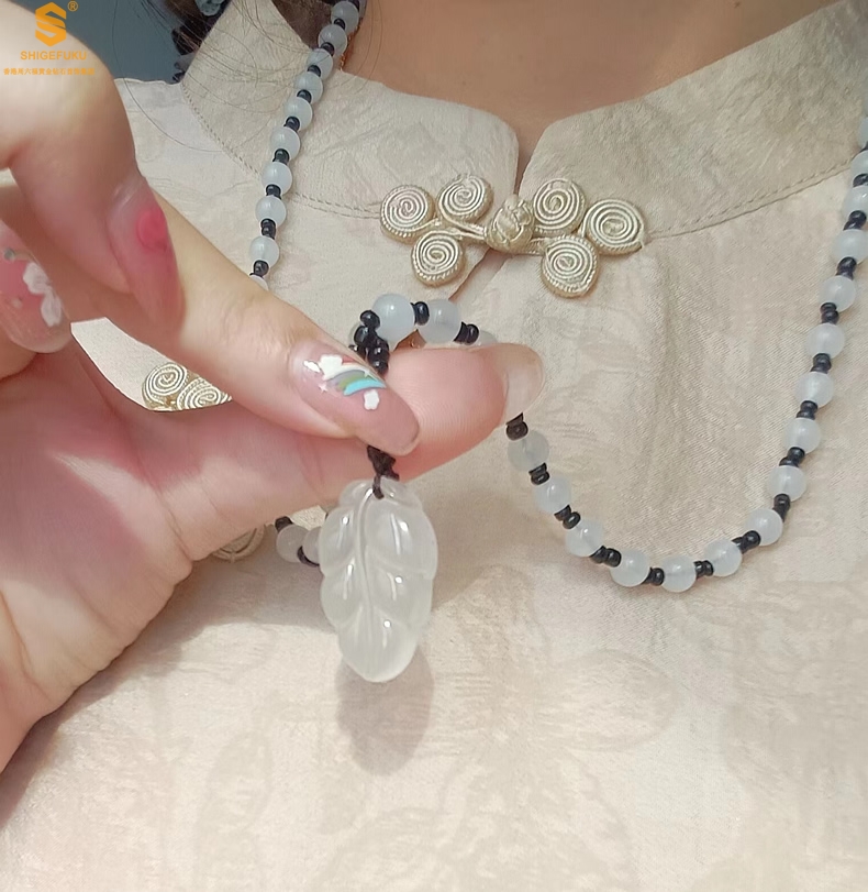 【品名】巴西高冰玉髓一叶暴富吊坠(附赠汉白玉毛衣链)