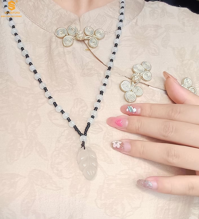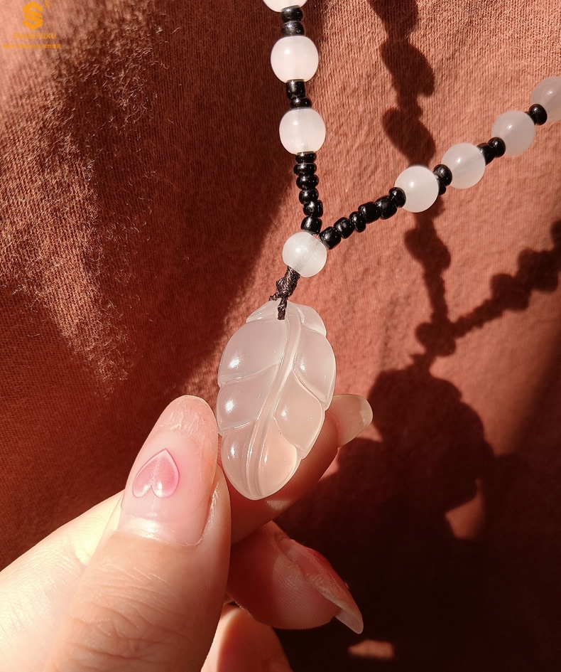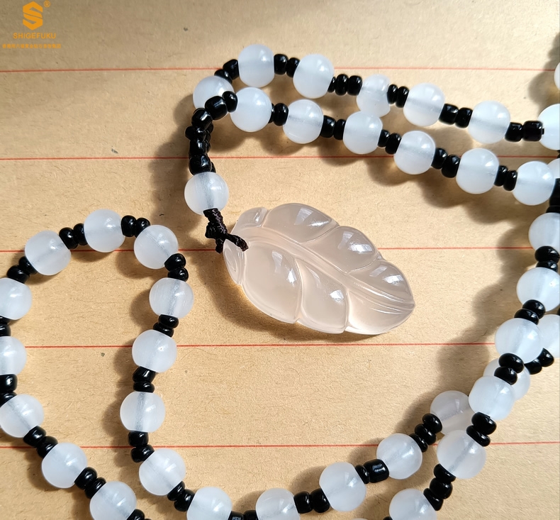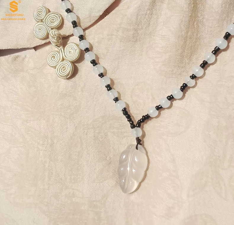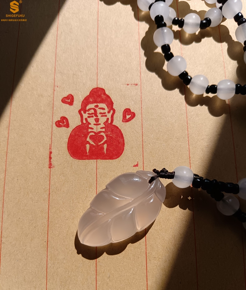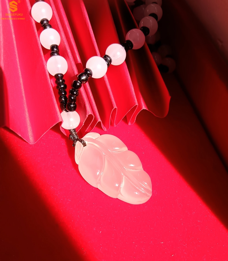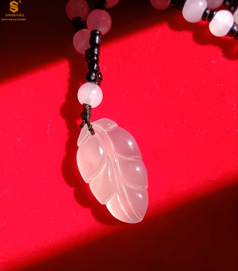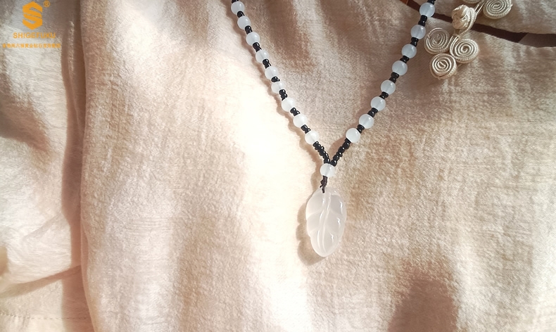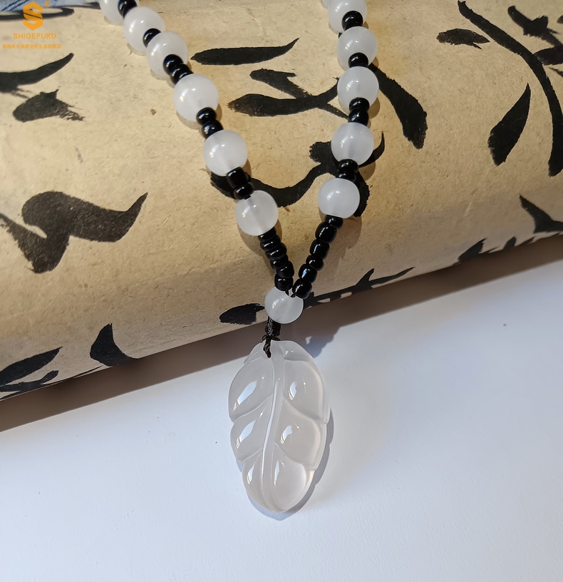 【品名】巴西高冰玉髓一叶暴富吊坠(附赠汉白玉毛衣链)