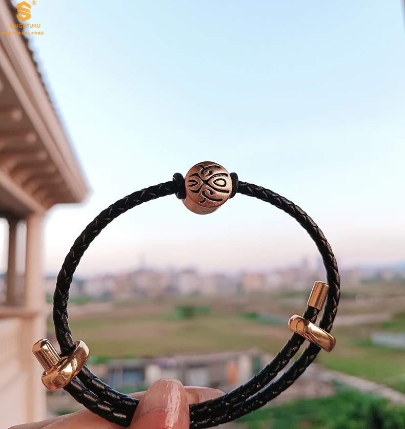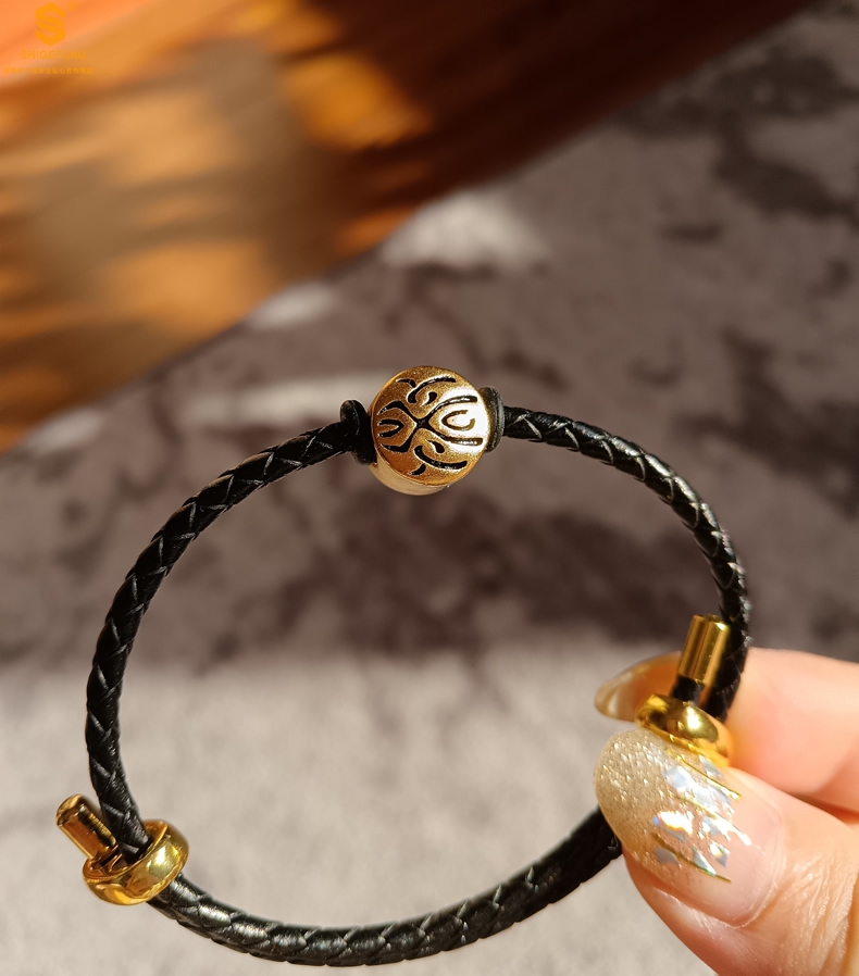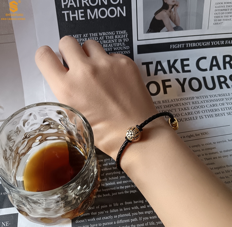 【品名】(幸运)酷黑珐琅手绘转运珠情侣手绳