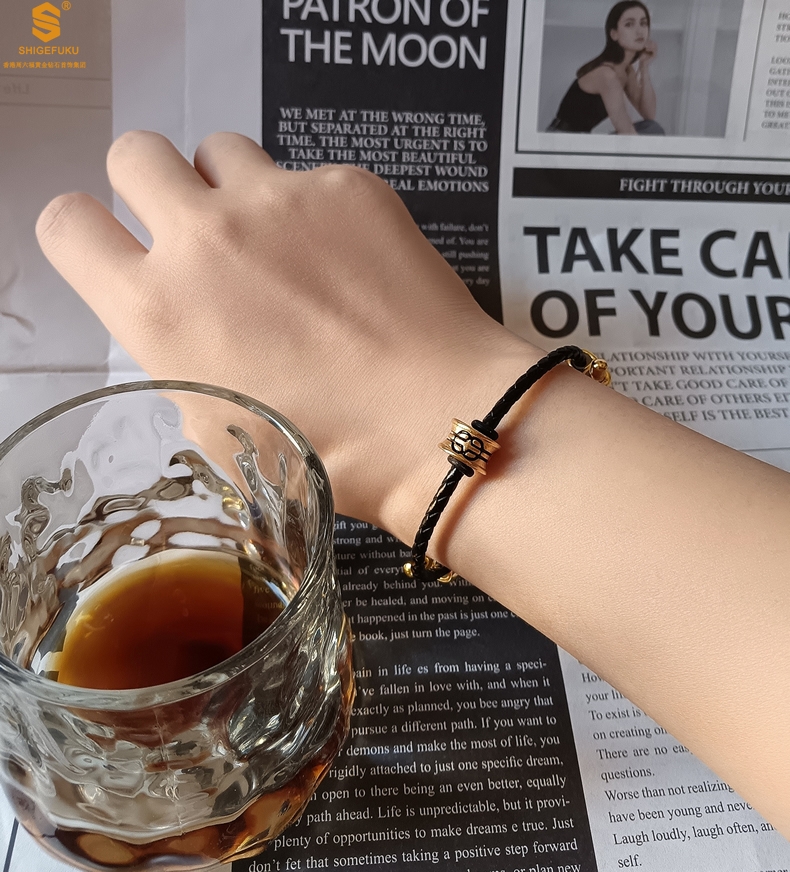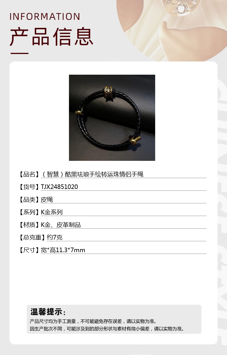 【品名】(智慧)酷黑珐琅手绘转运珠情侣手绳