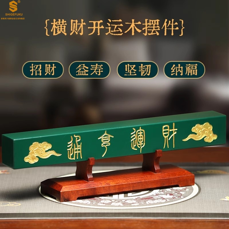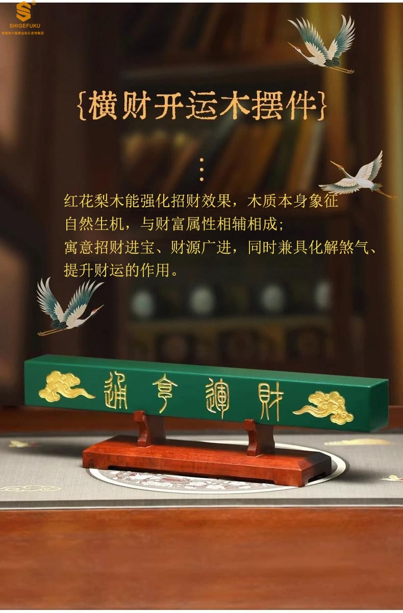 【品名】古法鎏金红花梨财运亨通横财木摆件(实木带底座)