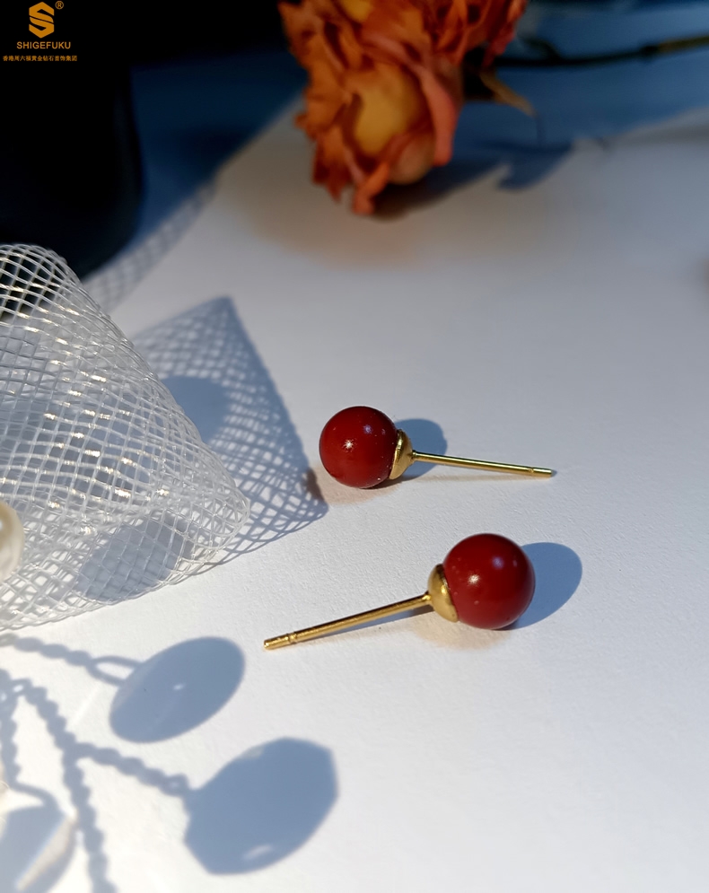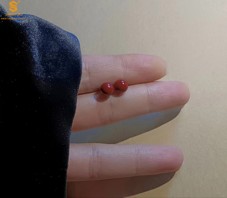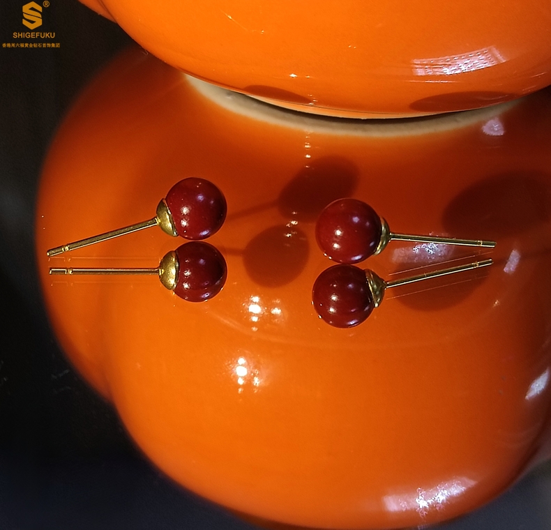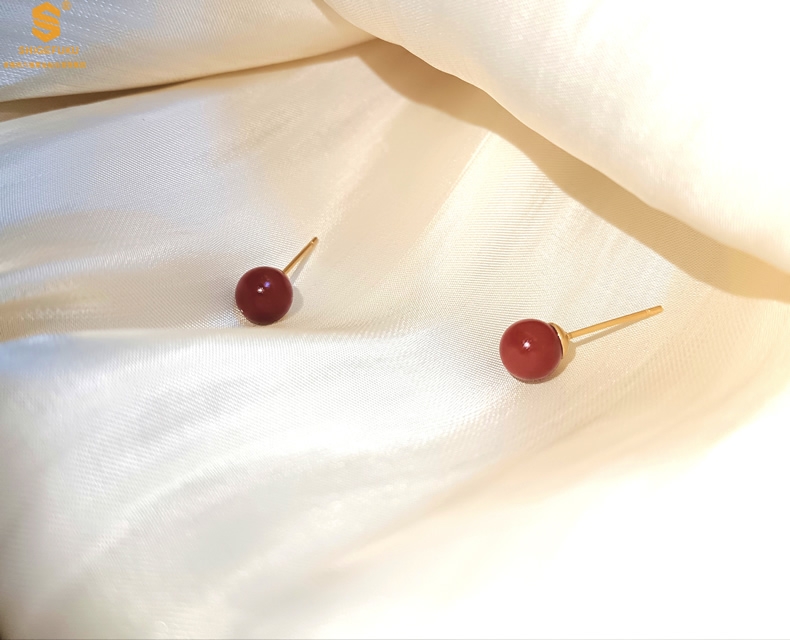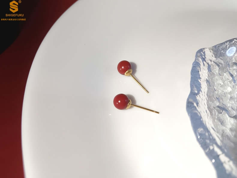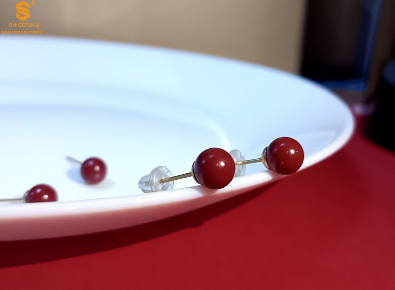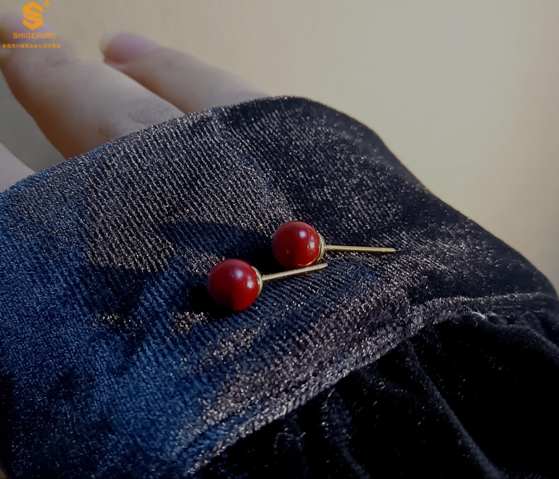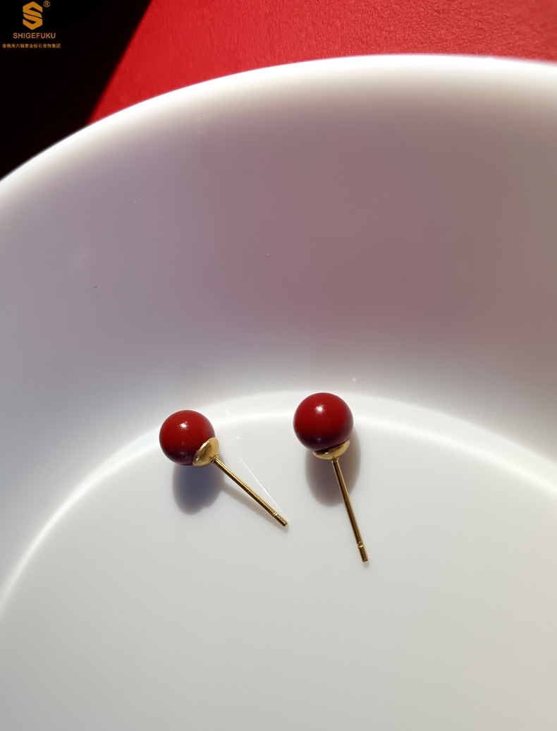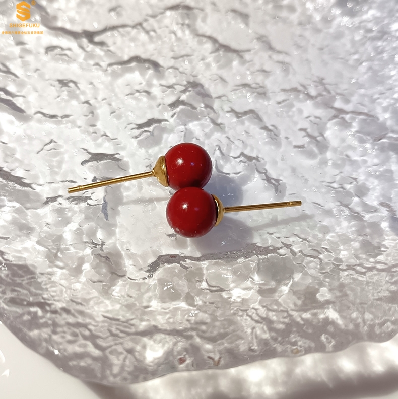 【品名】天然原矿朱砂K金耳钉