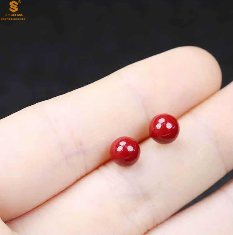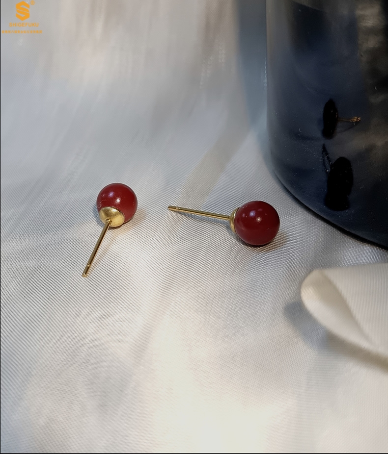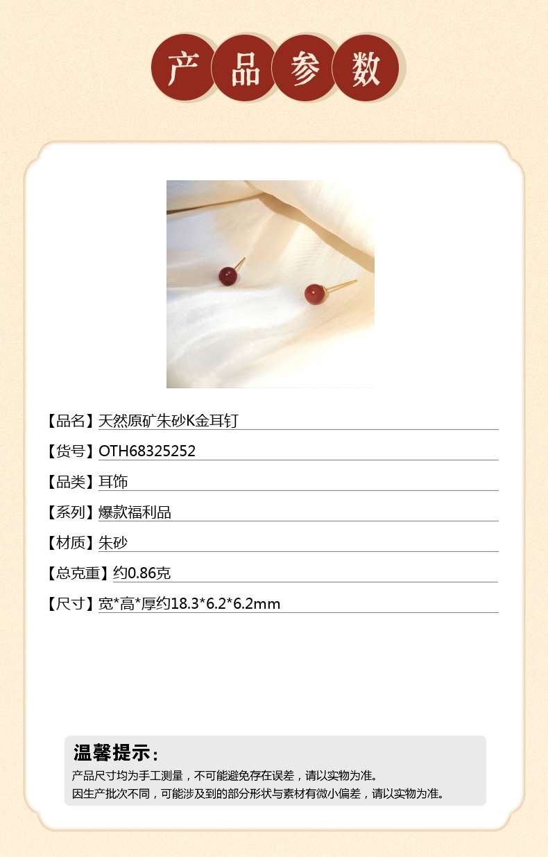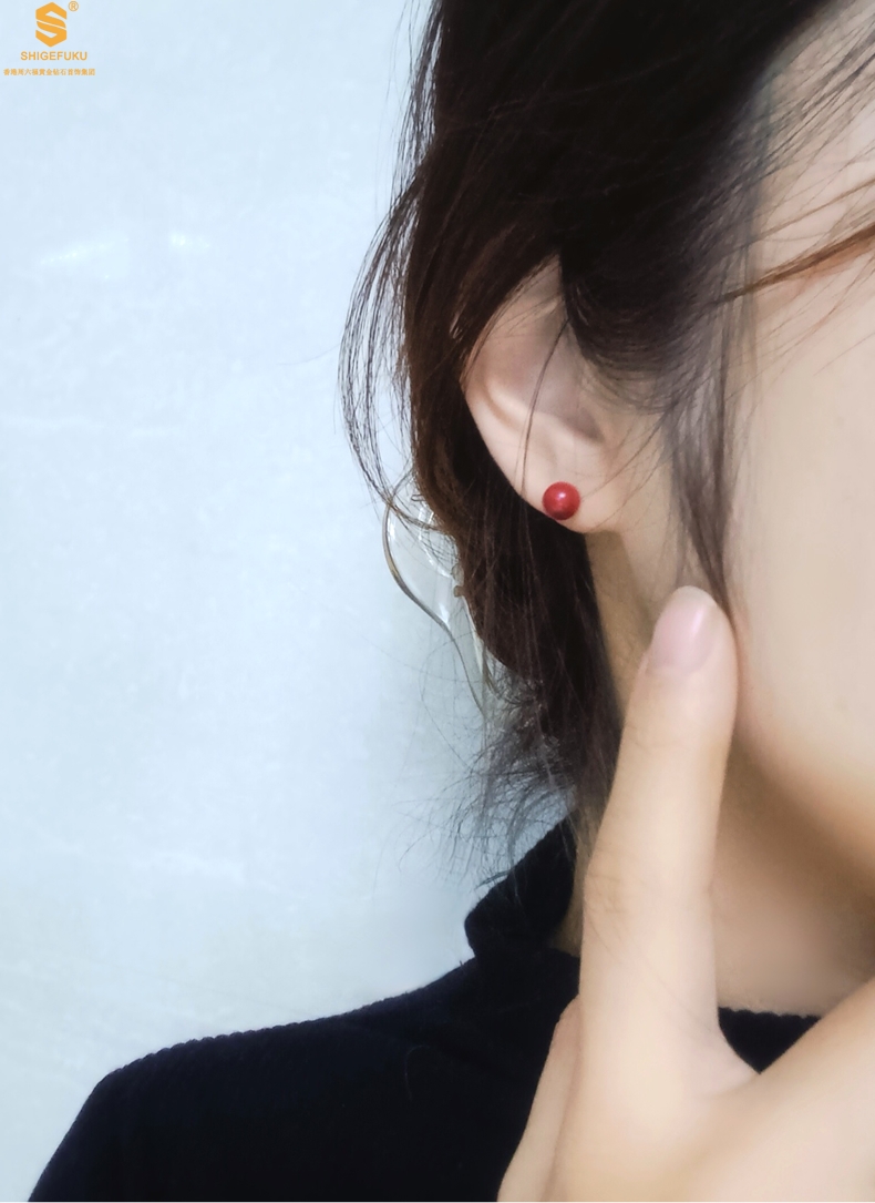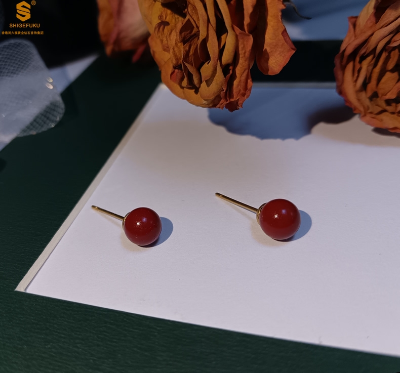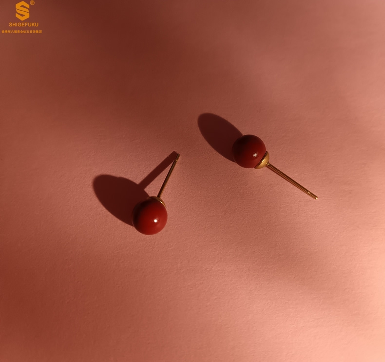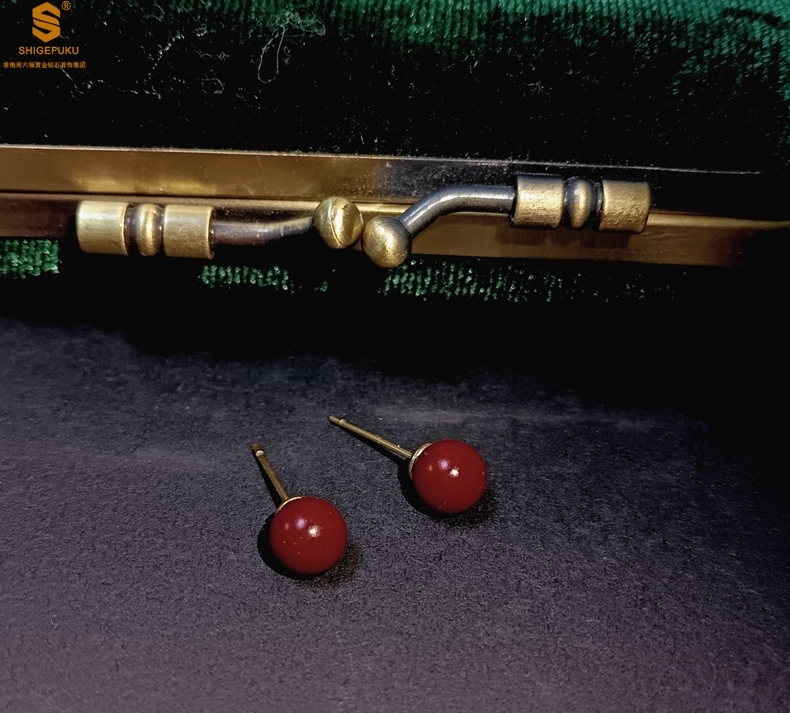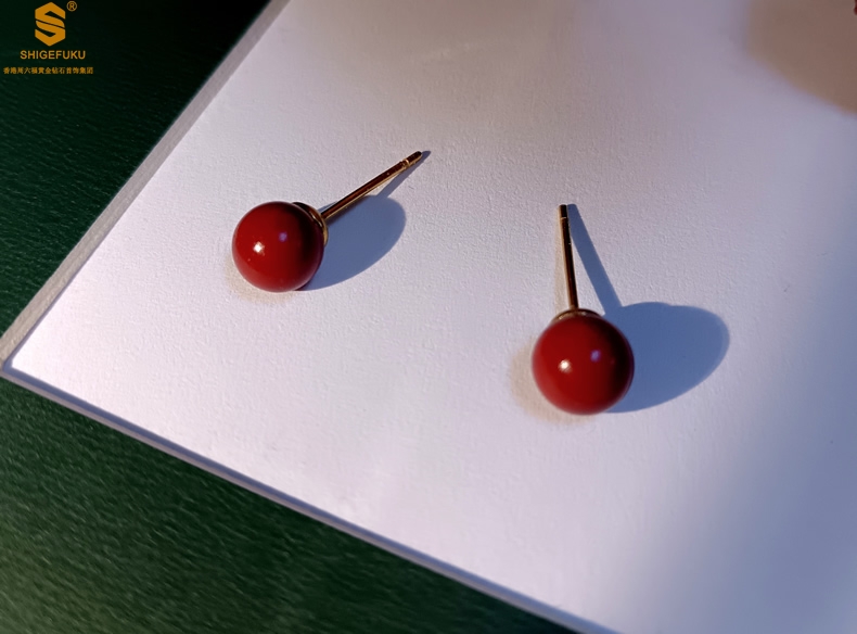 【品名】天然原矿朱砂K金耳钉