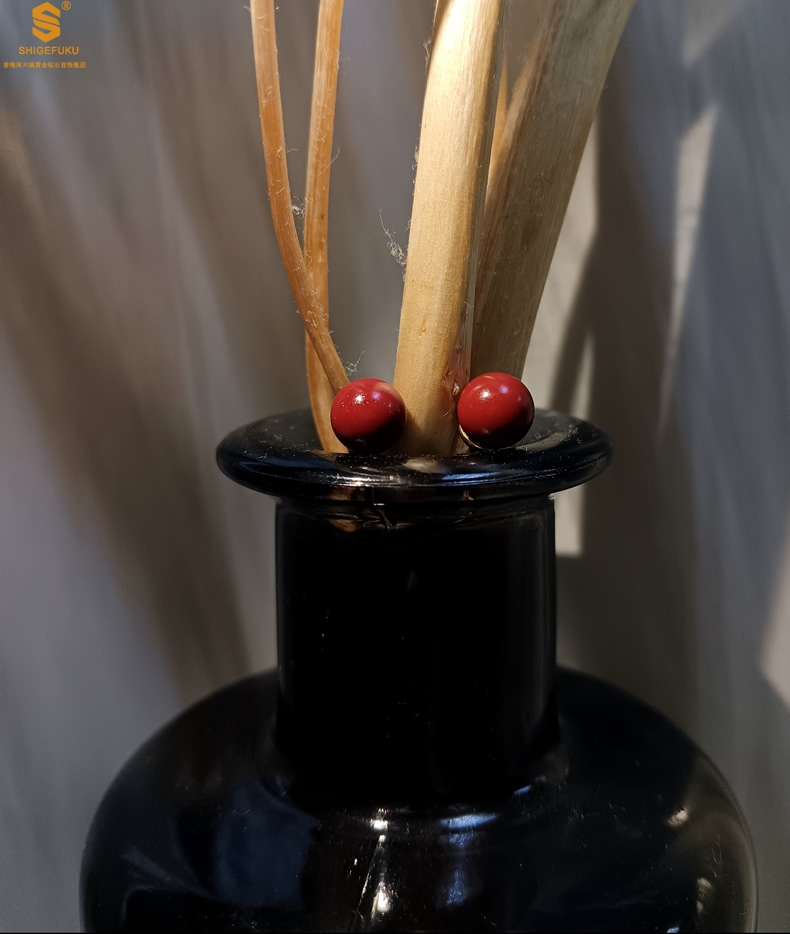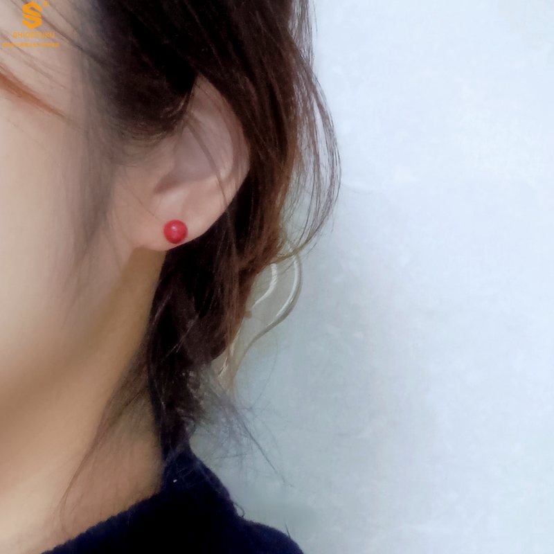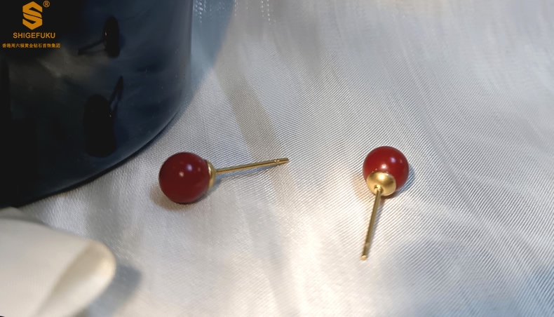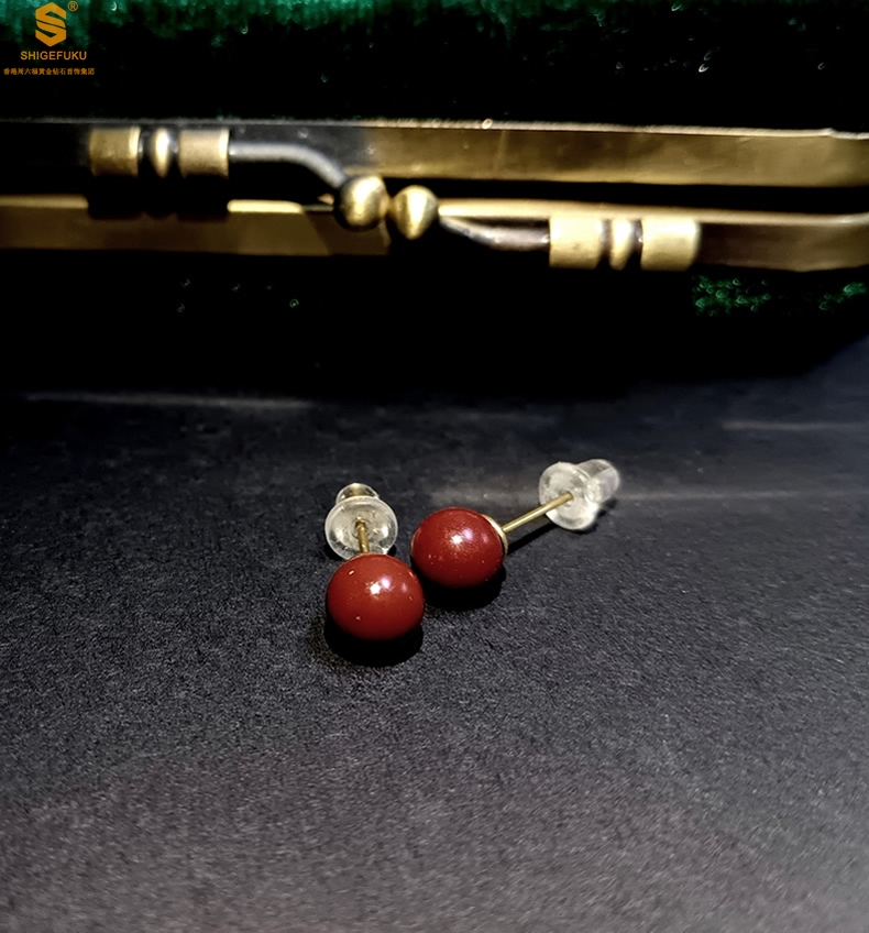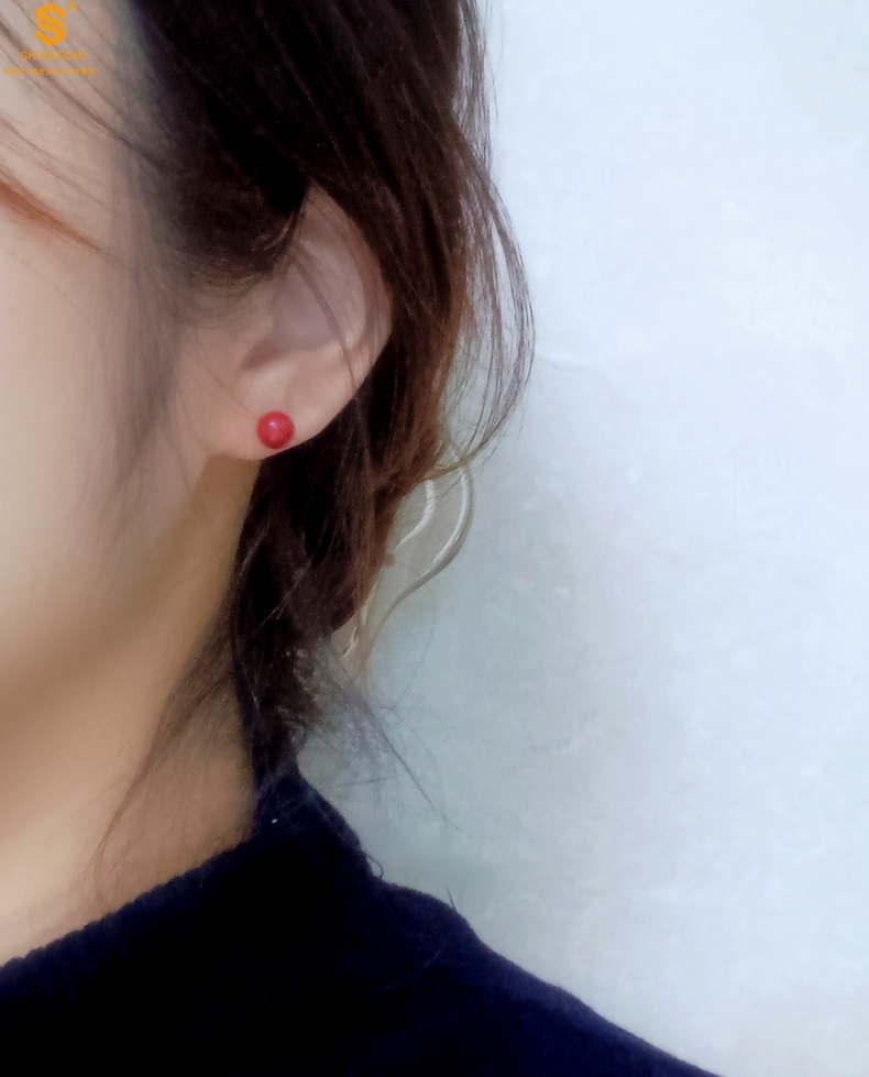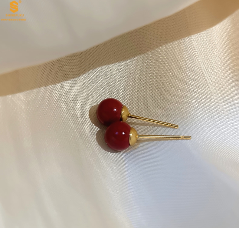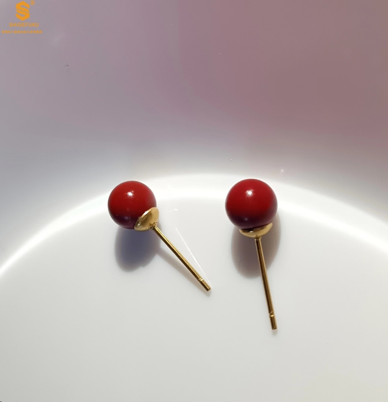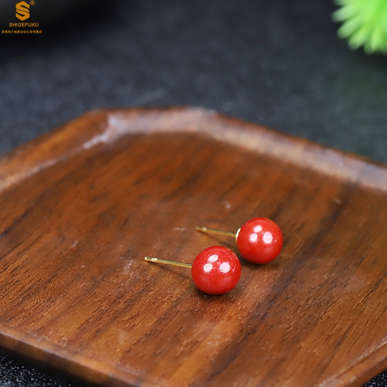 【品名】天然原矿朱砂K金耳钉