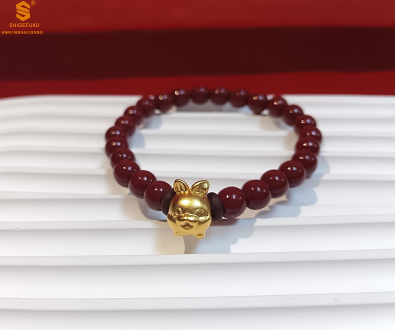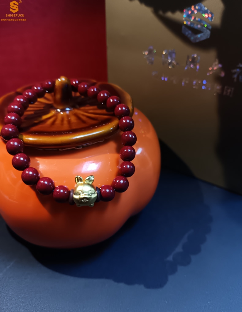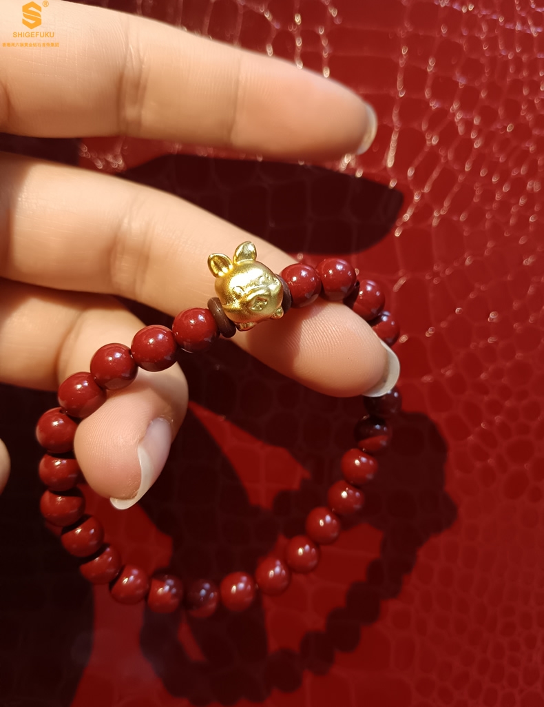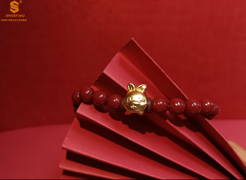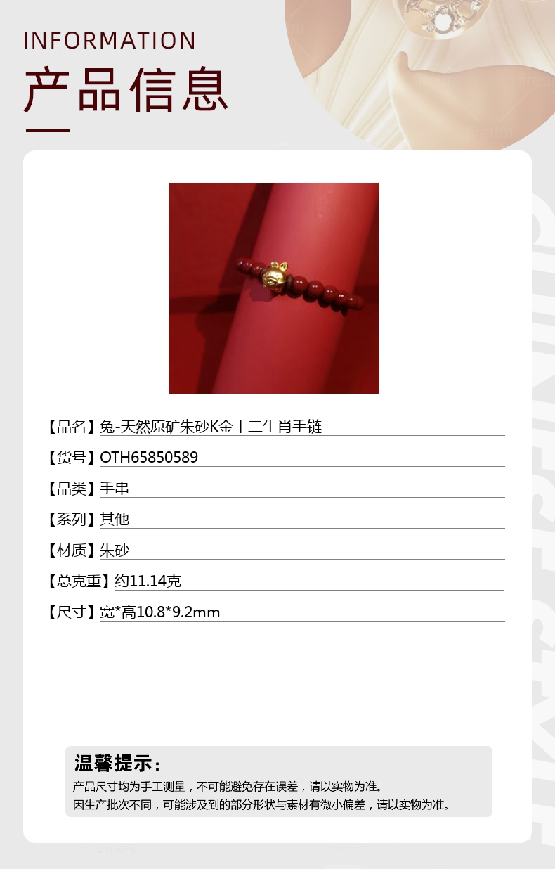 【品名】兔-天然原矿朱砂K金十二生肖手链