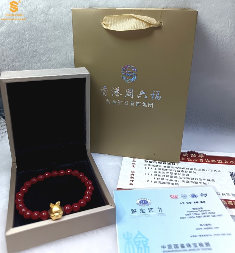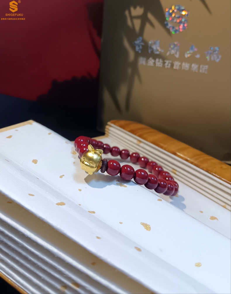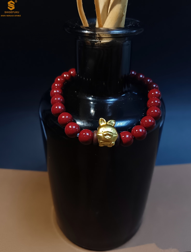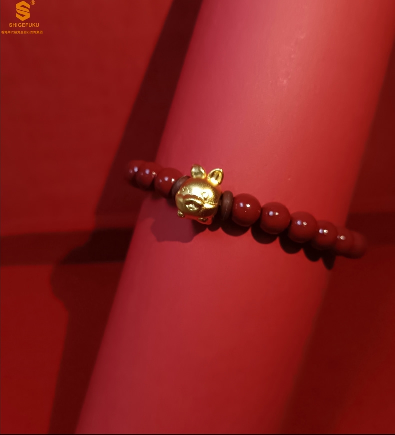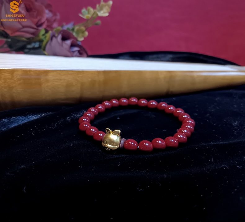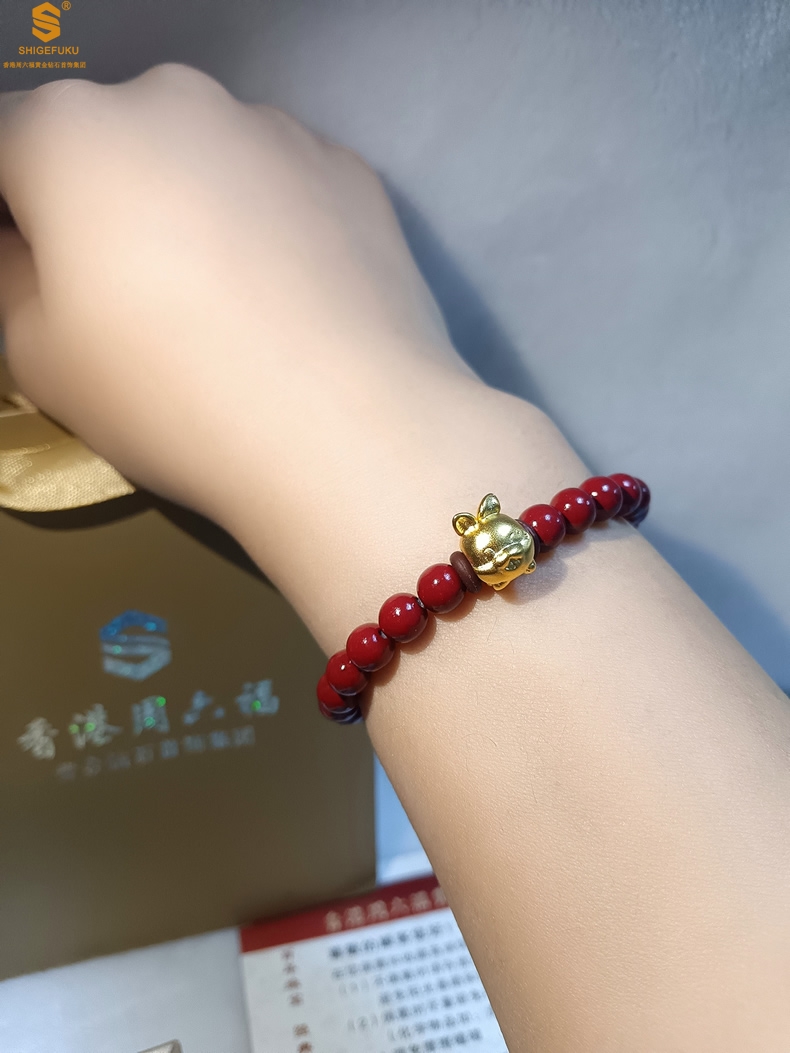 【品名】兔-天然原矿朱砂K金十二生肖手链