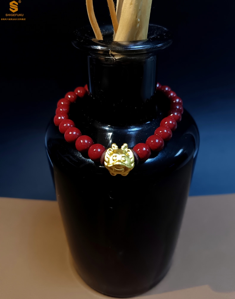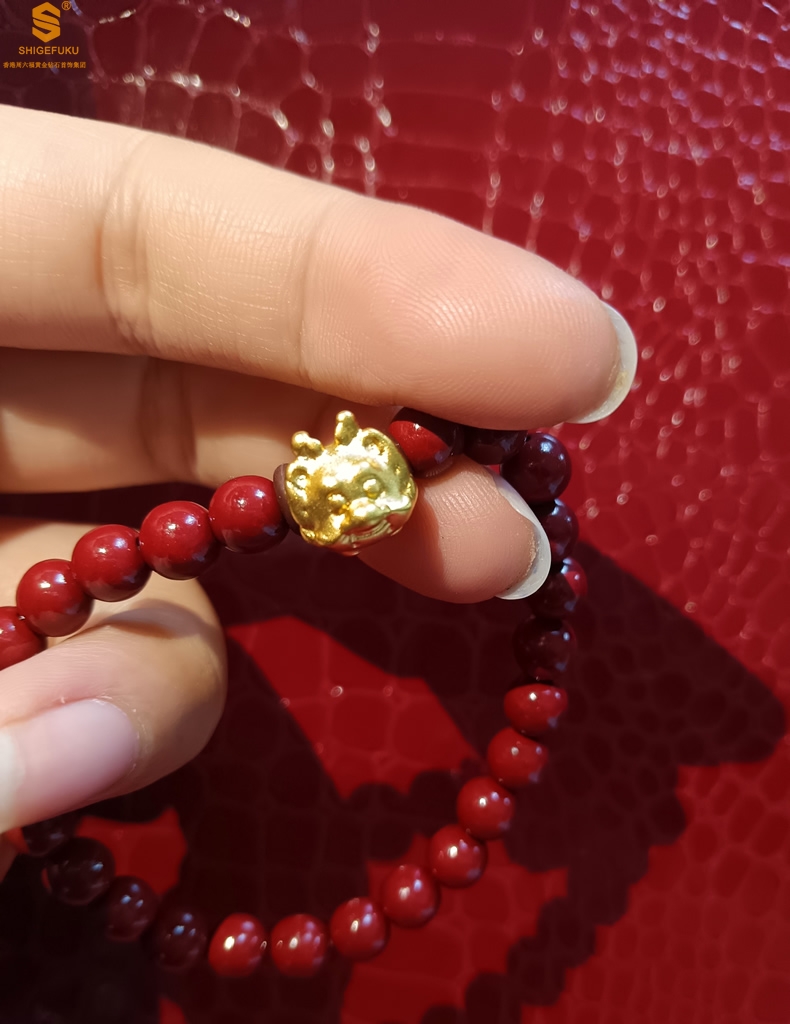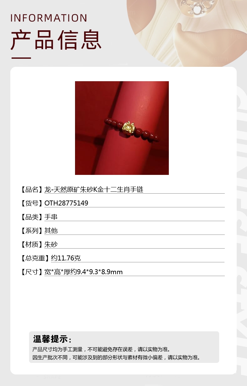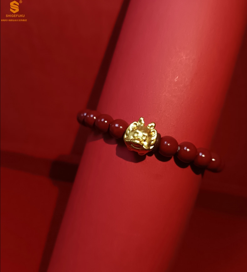 【品名】龙-天然原矿朱砂K金十二生肖手链