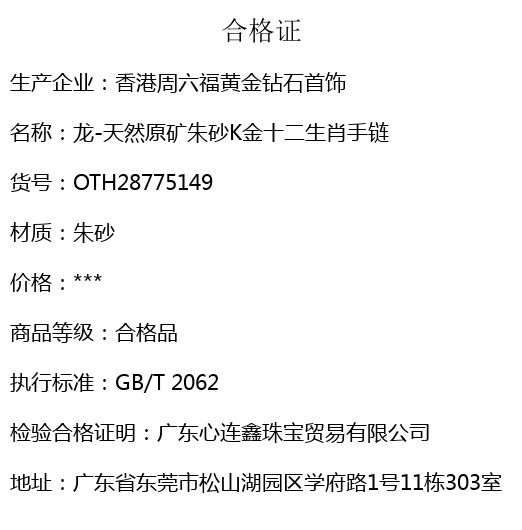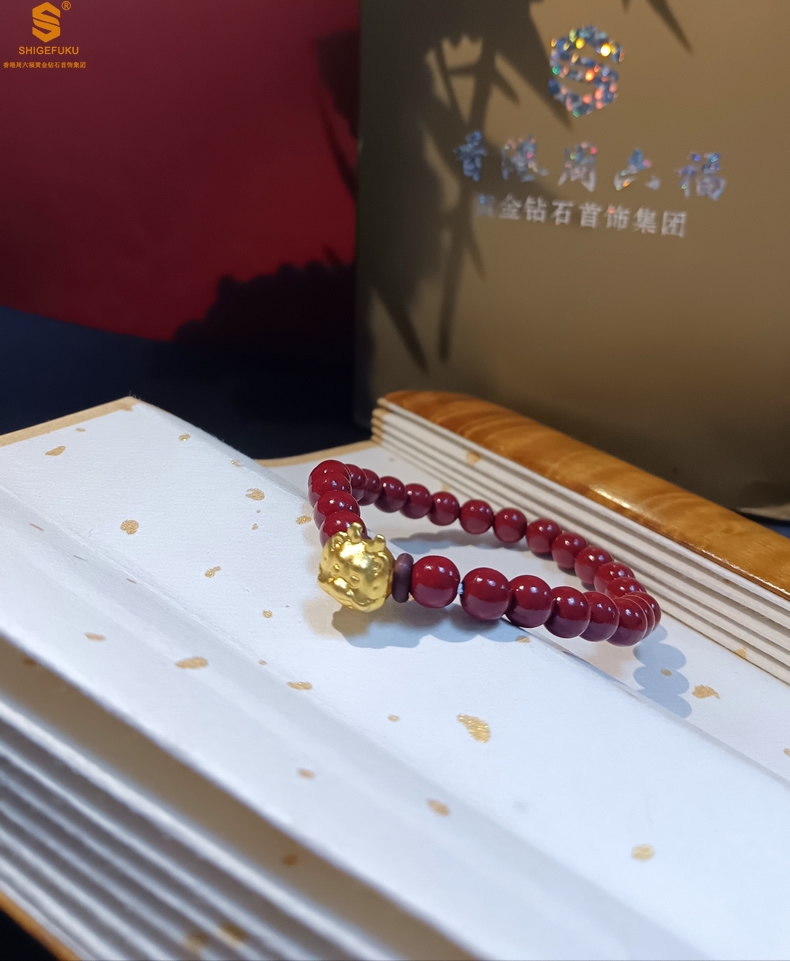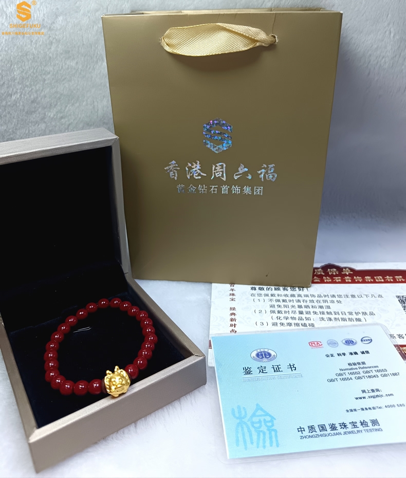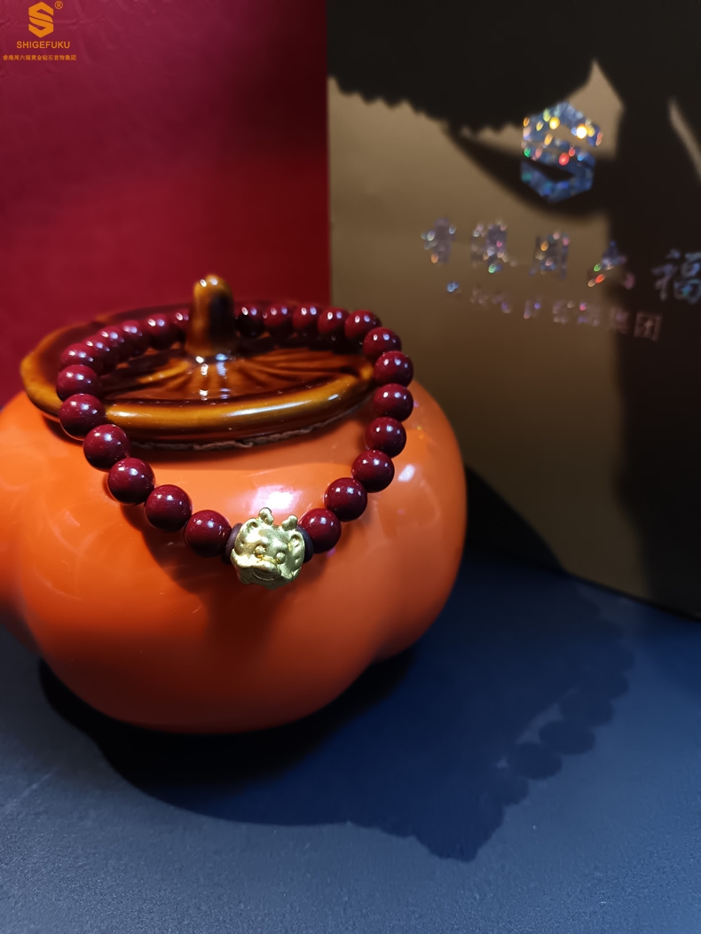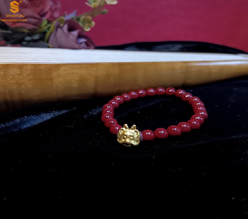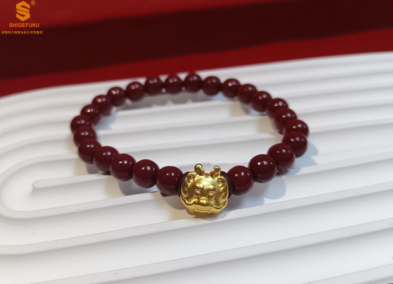 【品名】龙-天然原矿朱砂K金十二生肖手链