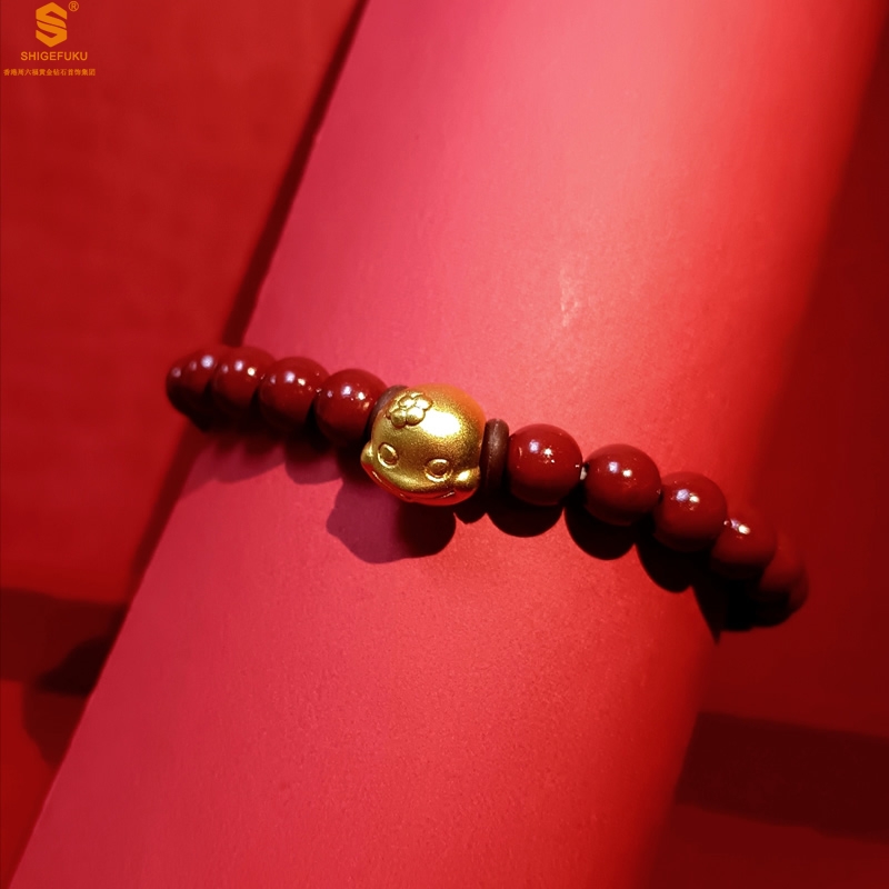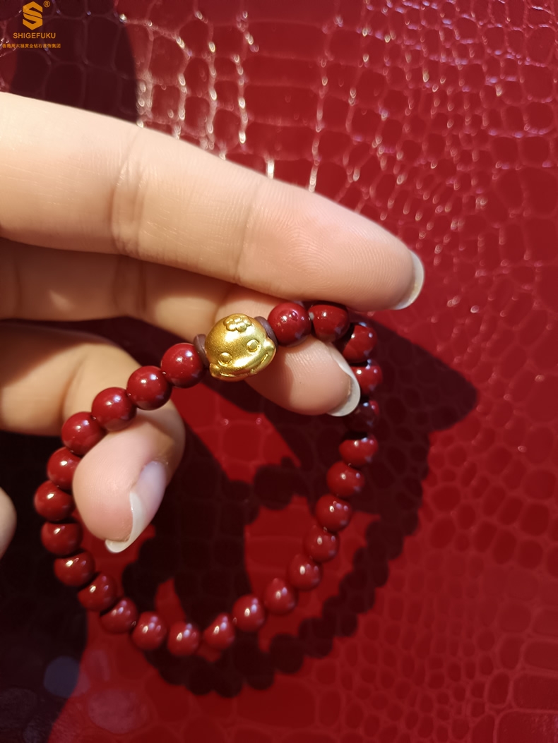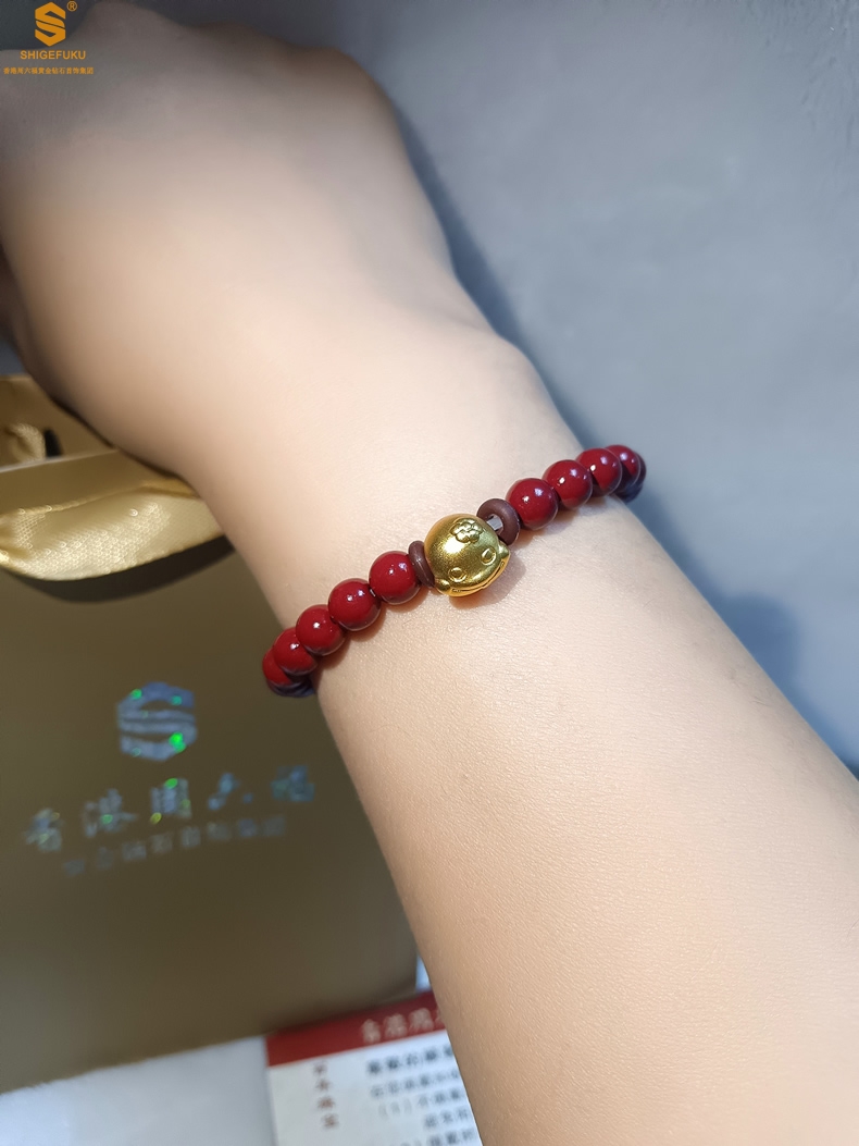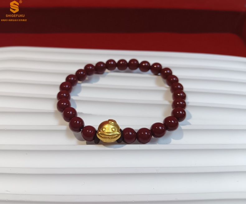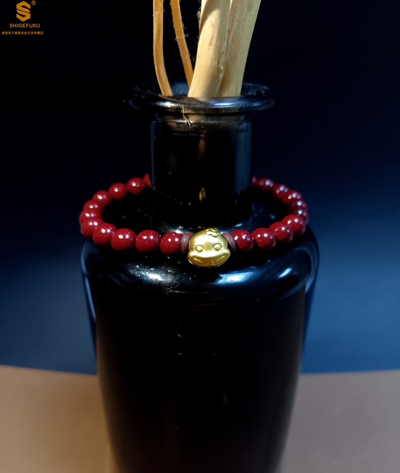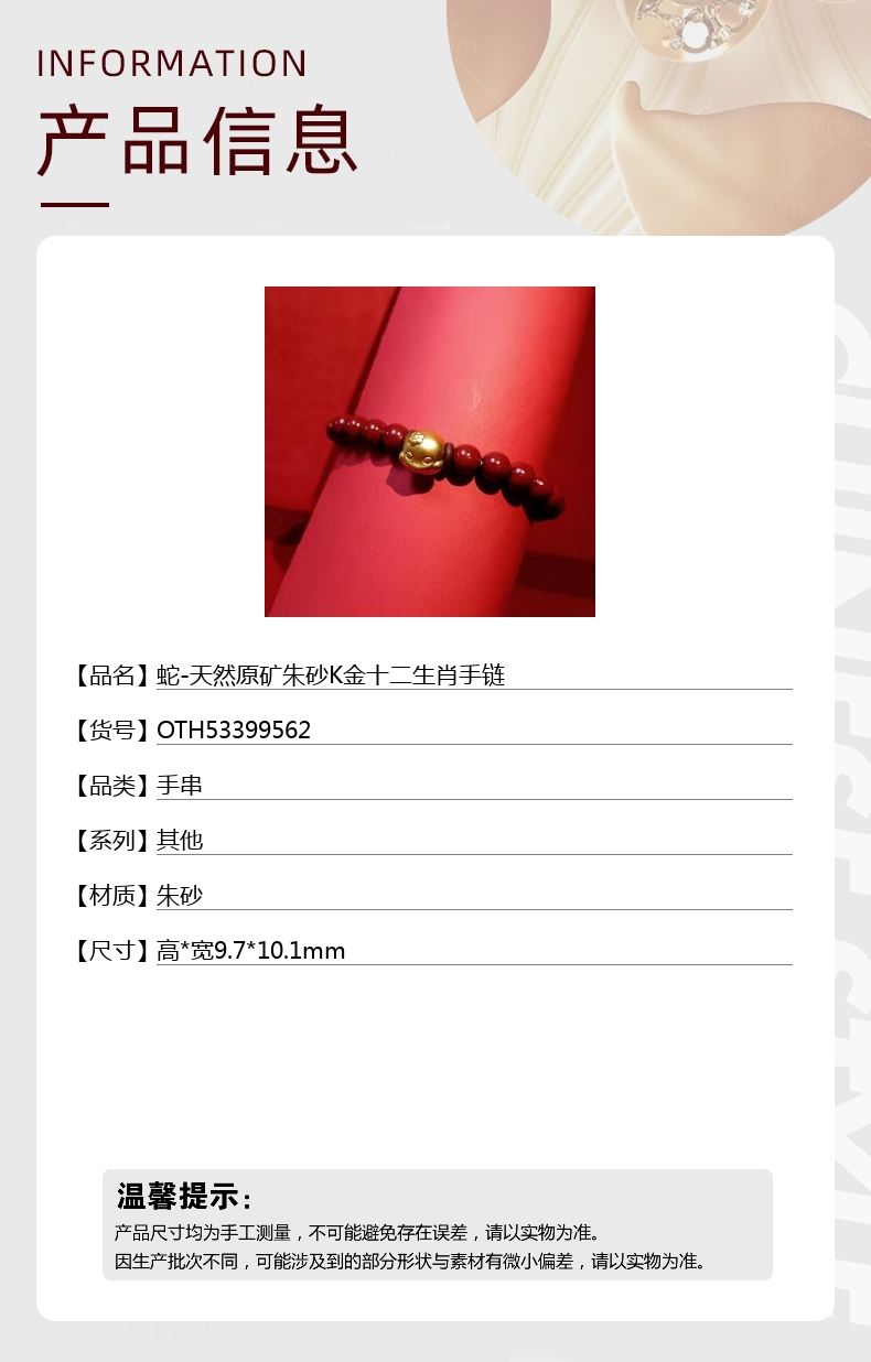 【品名】蛇-天然原矿朱砂K金十二生肖手链