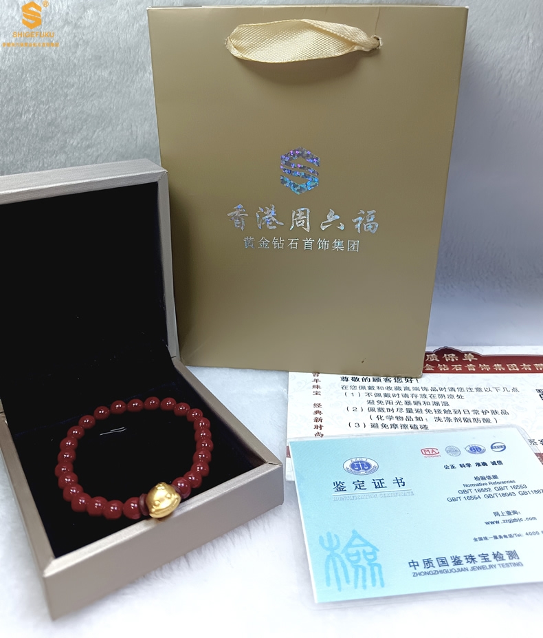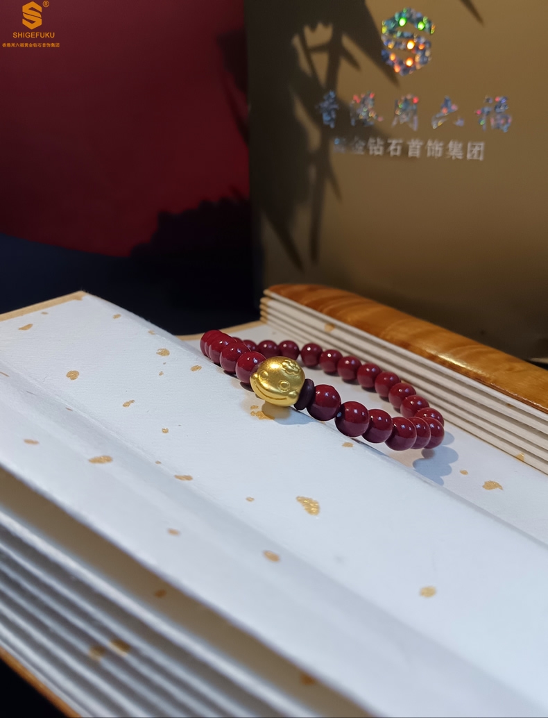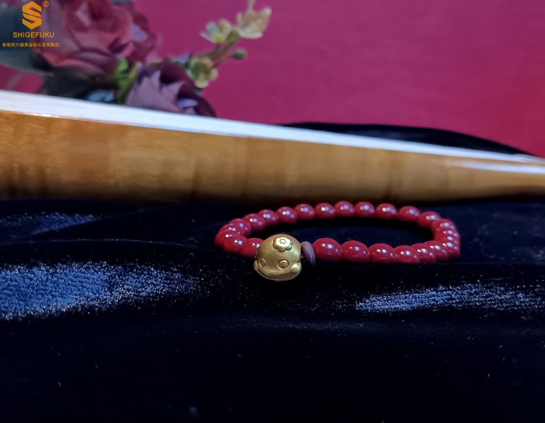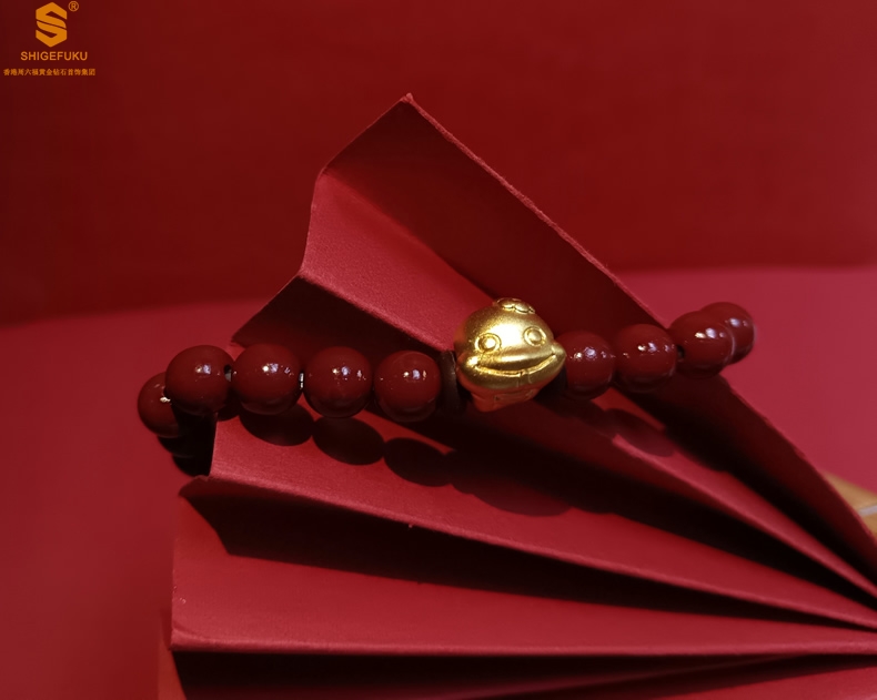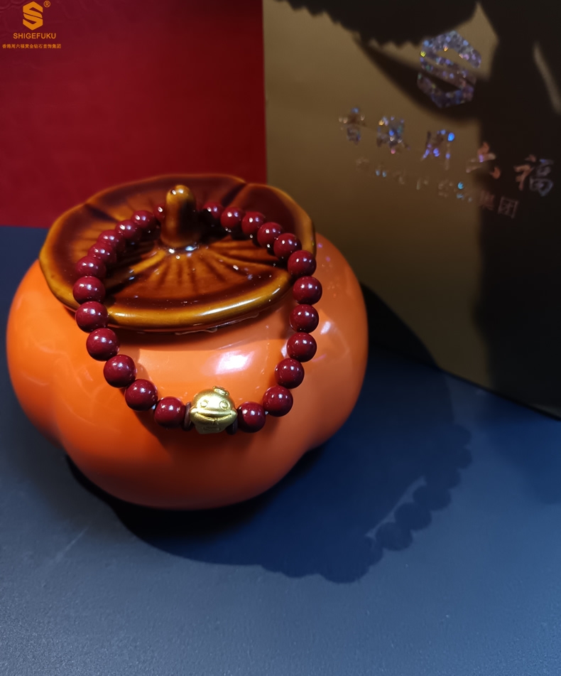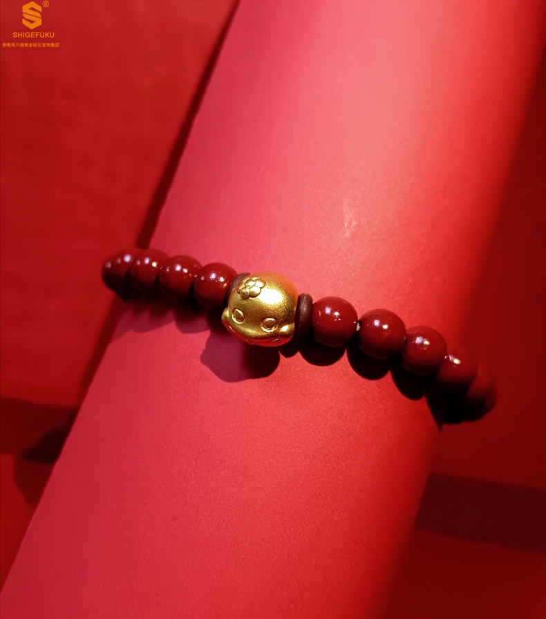 【品名】蛇-天然原矿朱砂K金十二生肖手链