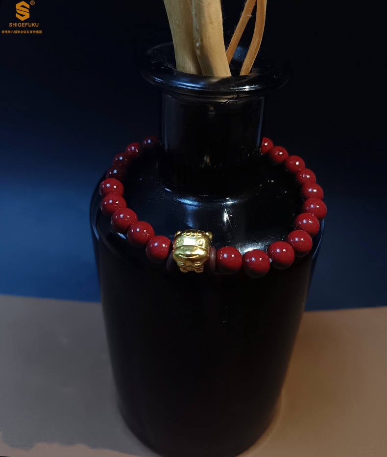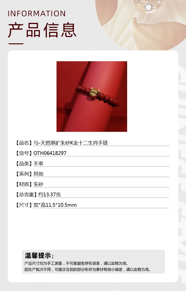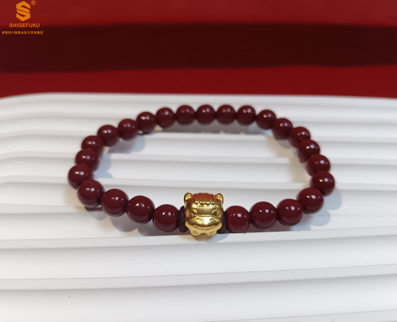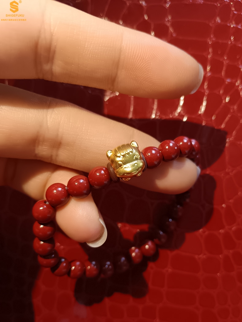 【品名】马-天然原矿朱砂K金十二生肖手链