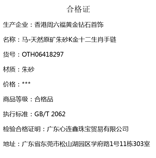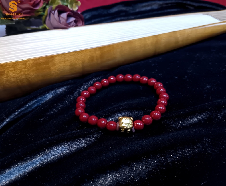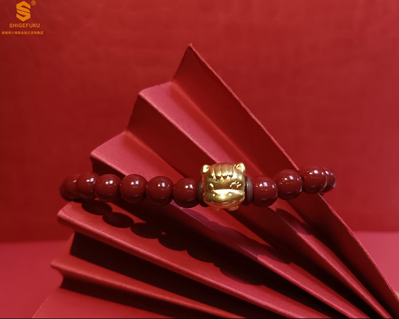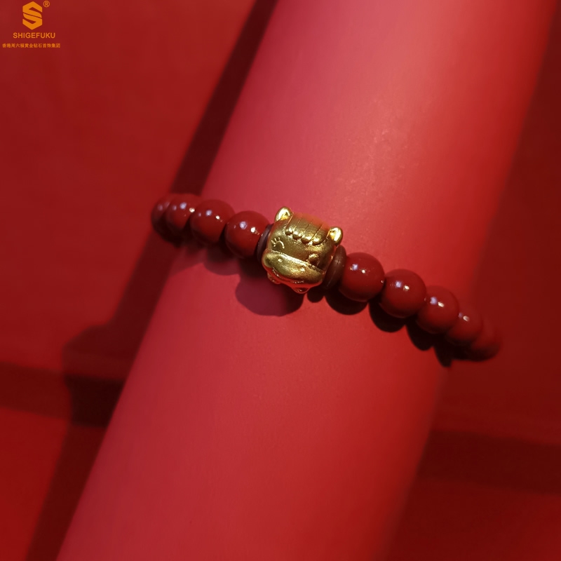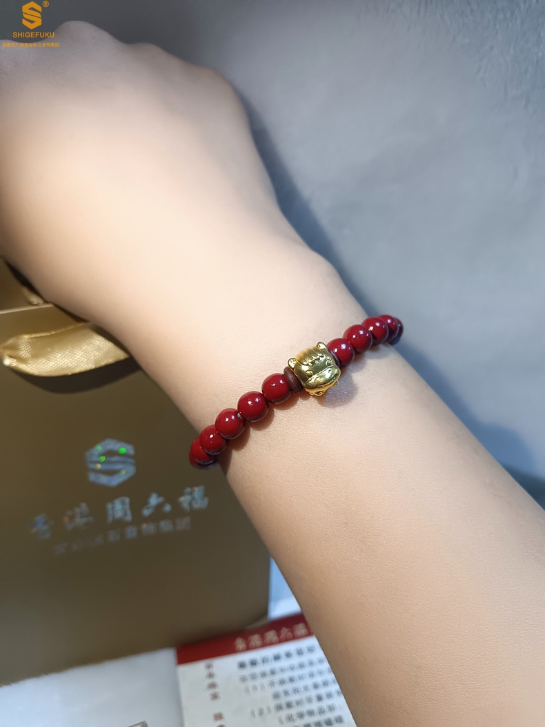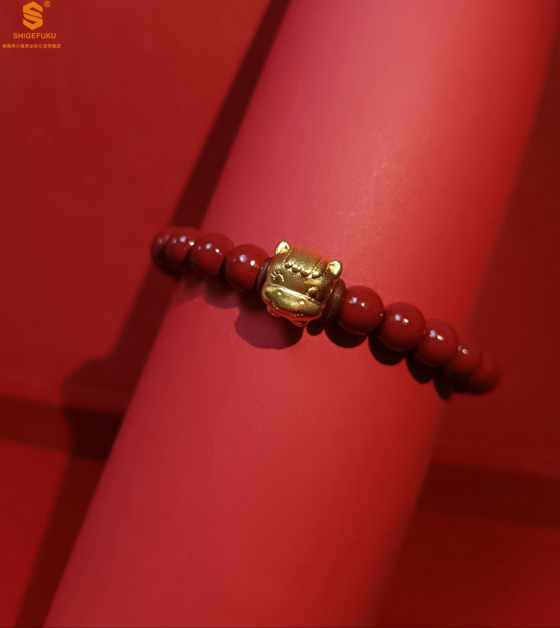 【品名】马-天然原矿朱砂K金十二生肖手链