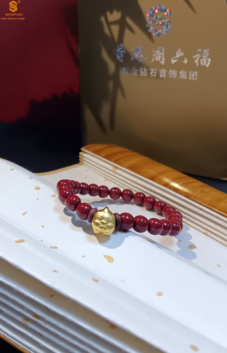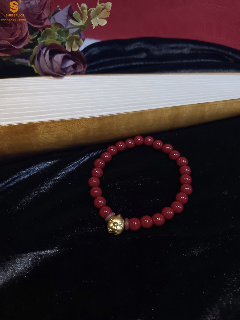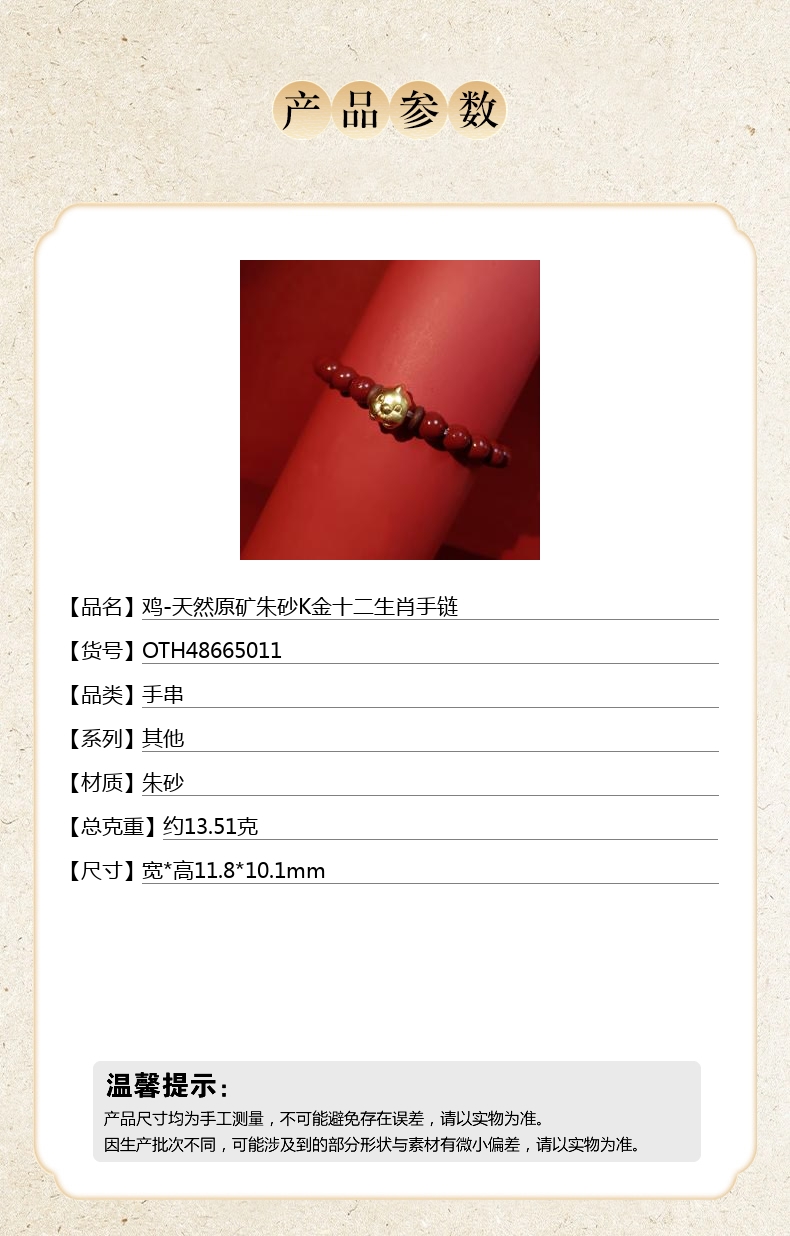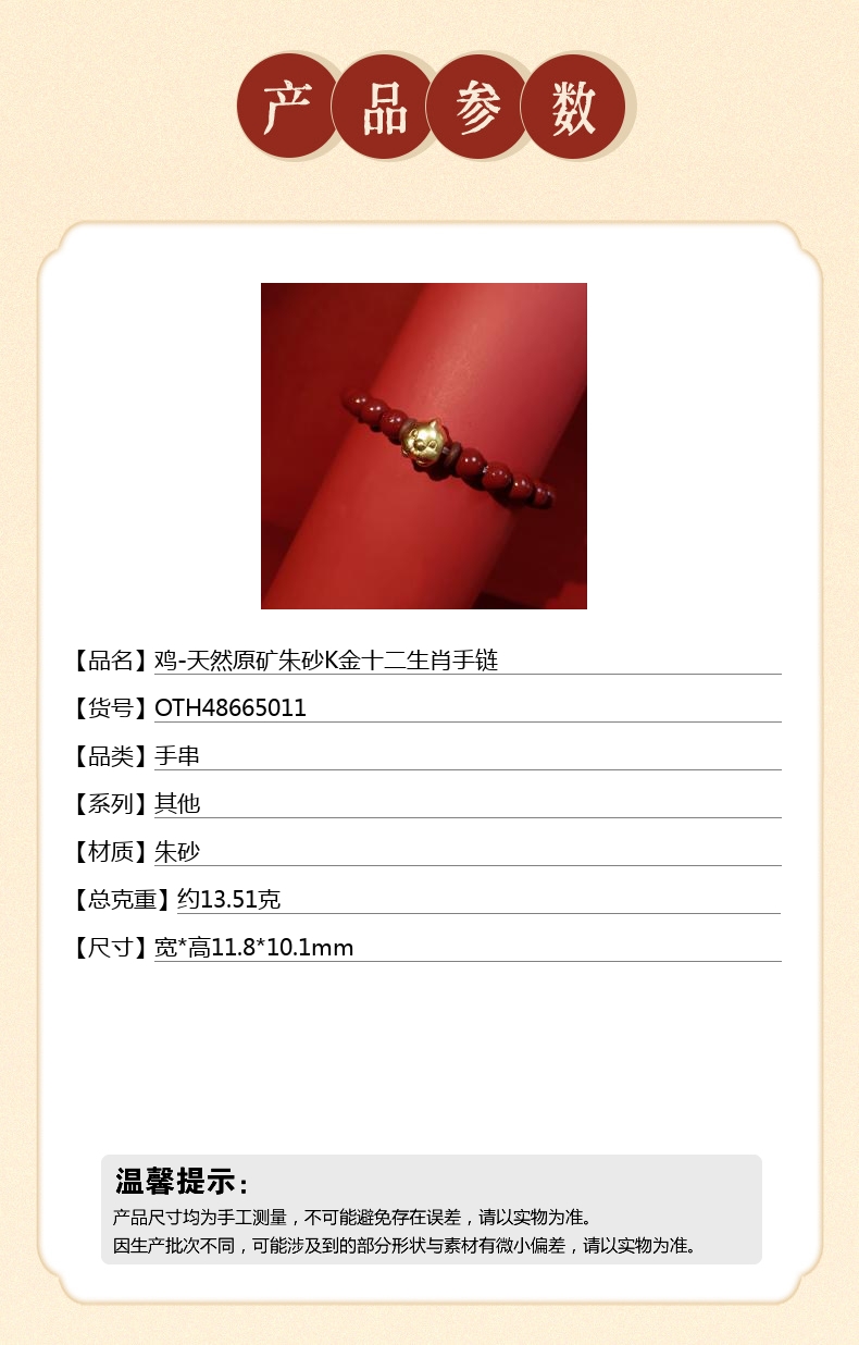 【品名】鸡-天然原矿朱砂K金十二生肖手链