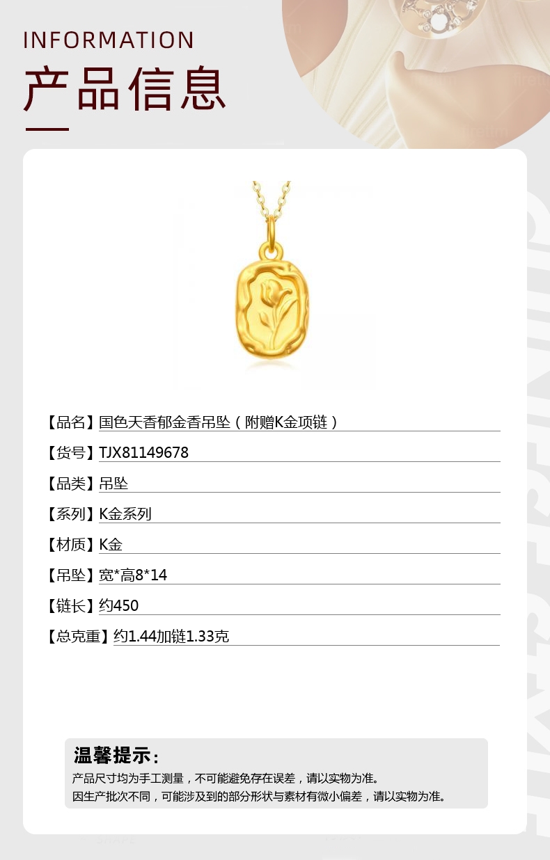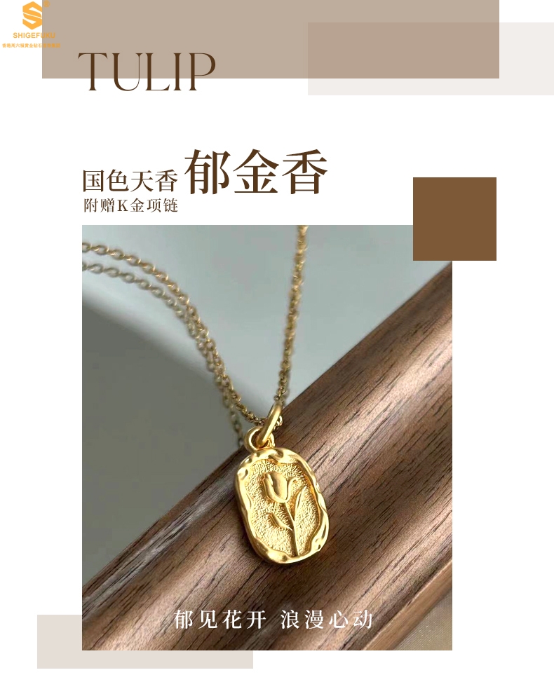 【品名】国色天香郁金香吊坠(附赠K金项链)