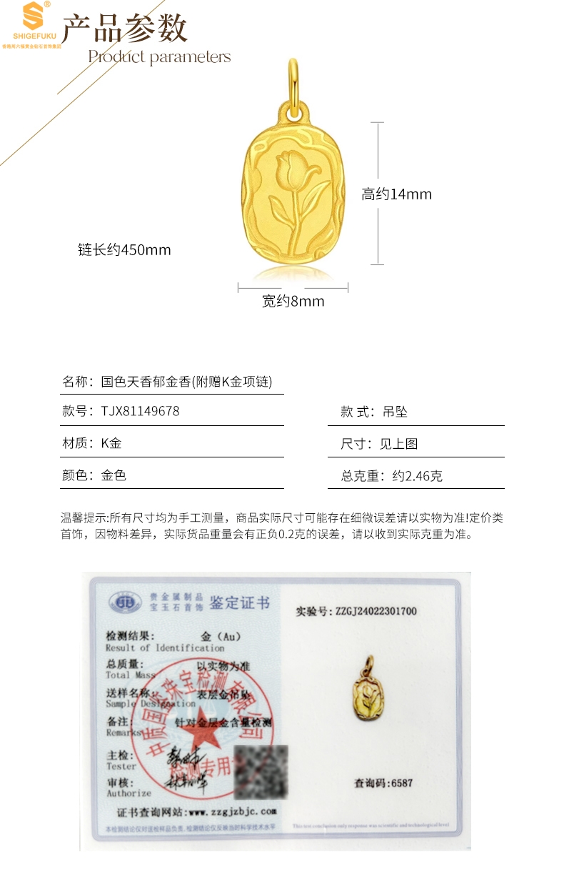 【套装包含】首饰+礼品盒+礼品袋+国检证书+质保单+价签