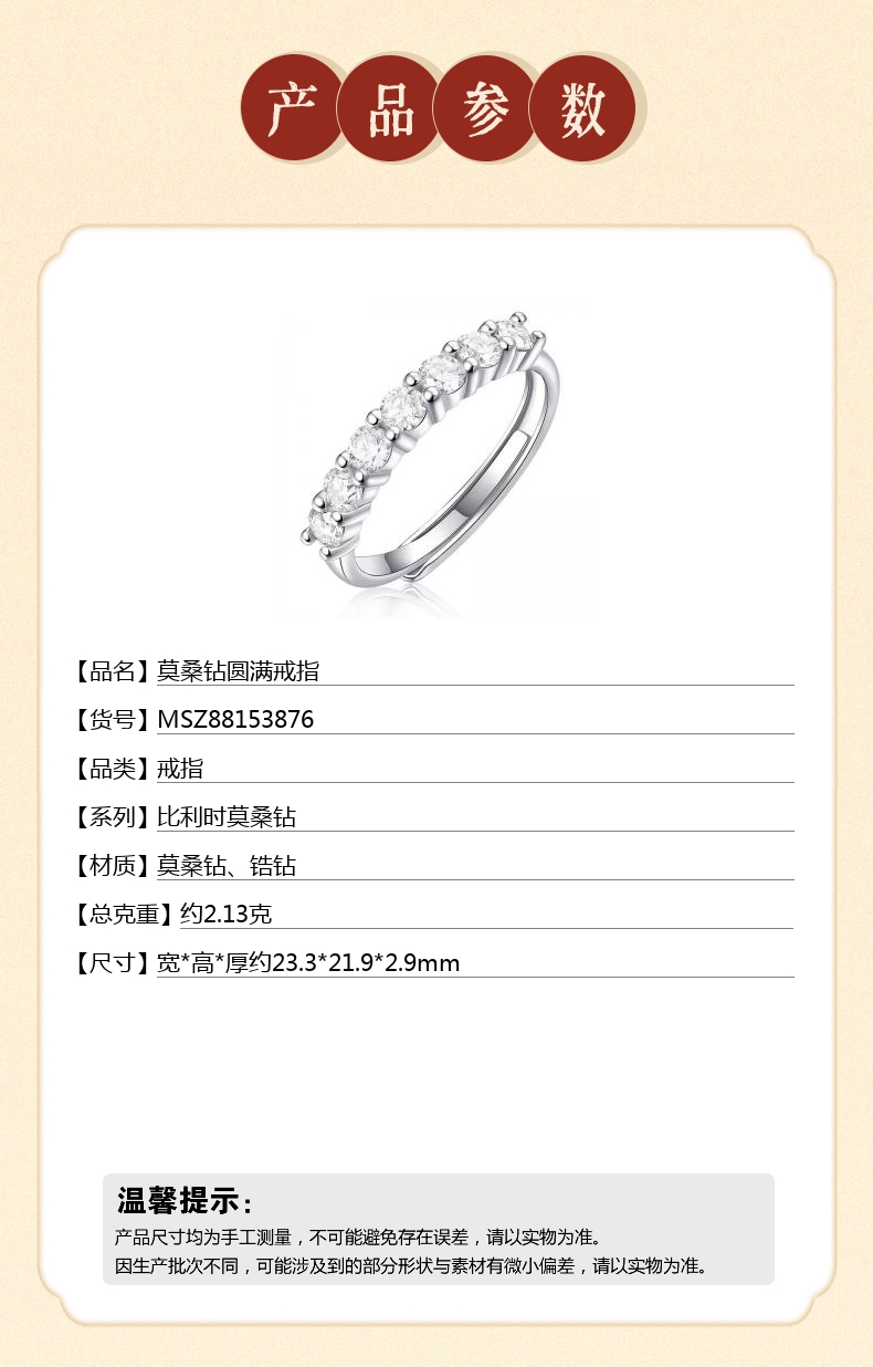 【品名】莫桑钻圆满戒指