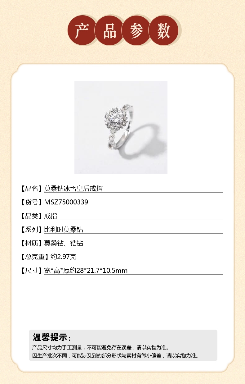 【品名】莫桑钻冰雪皇后戒指