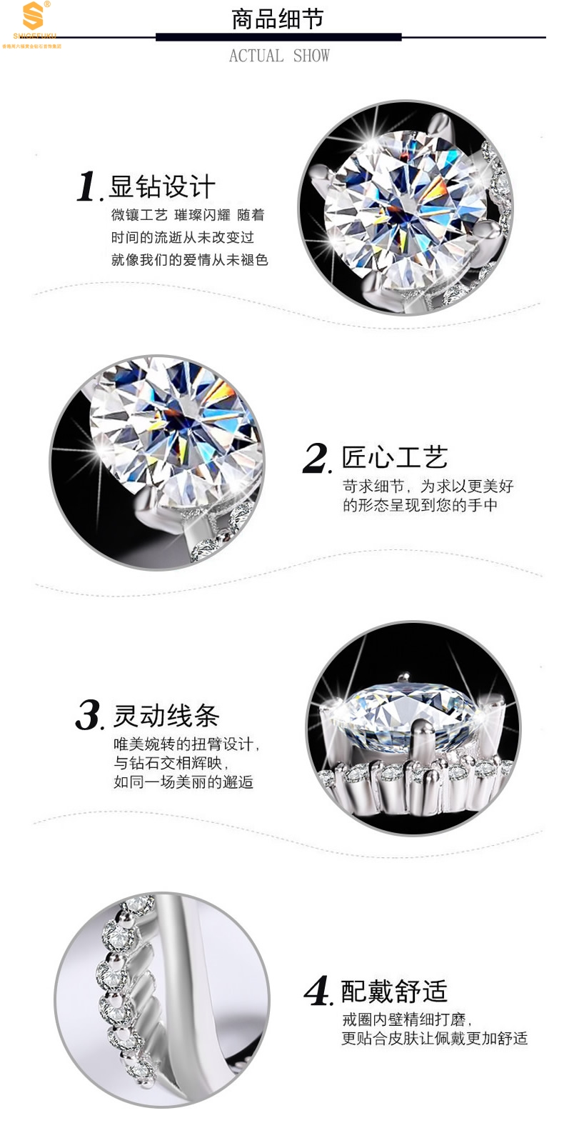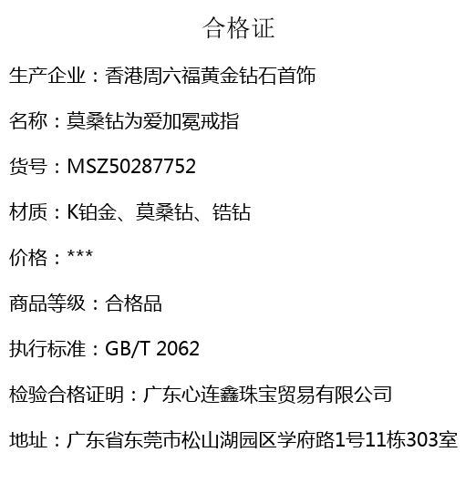【材质】K铂金、莫桑钻、锆钻