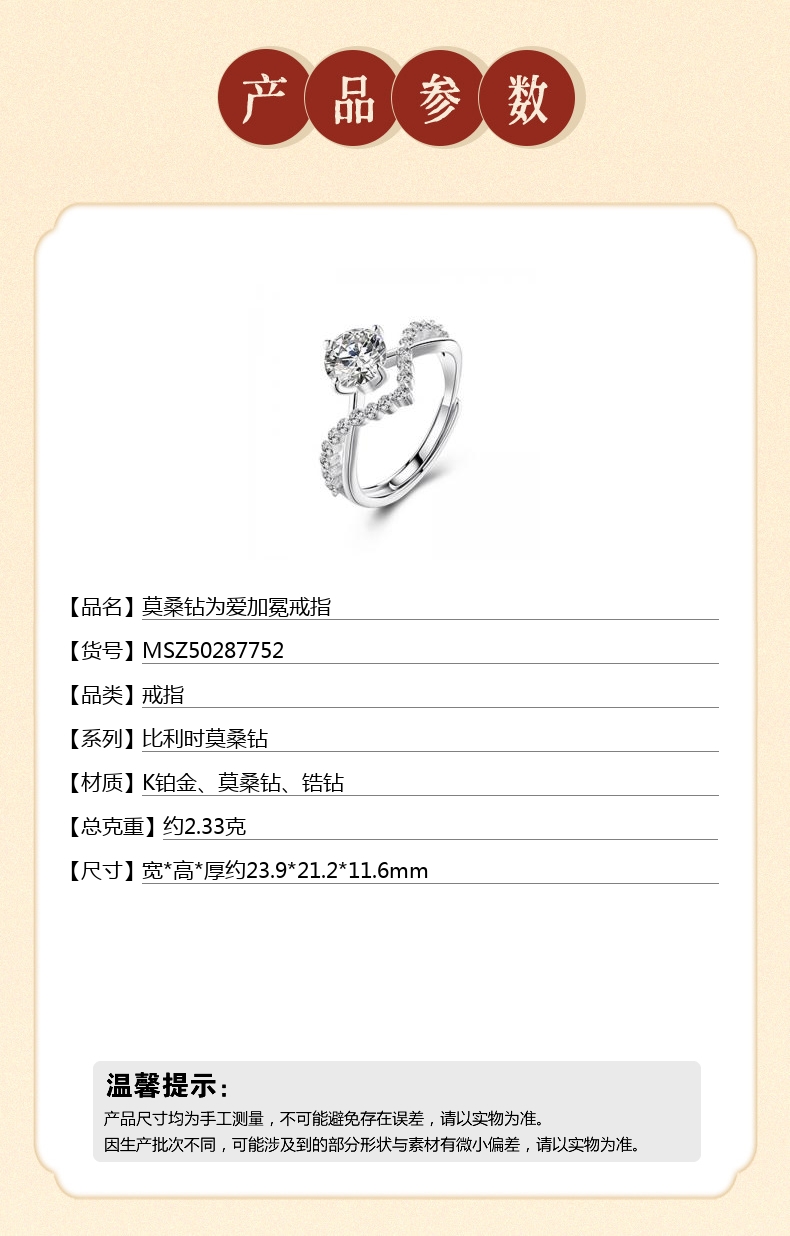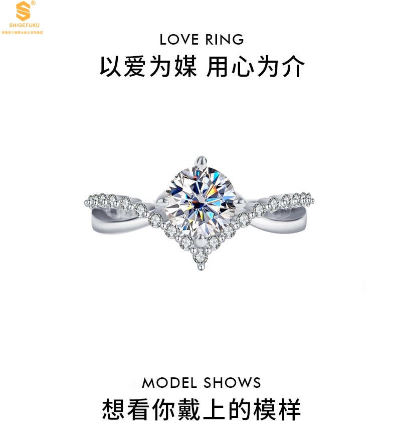 【品名】莫桑钻为爱加冕戒指