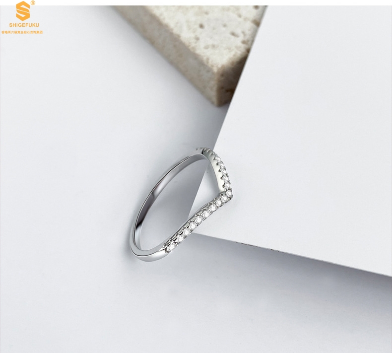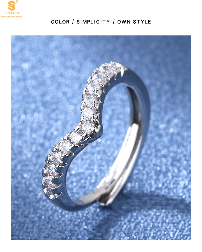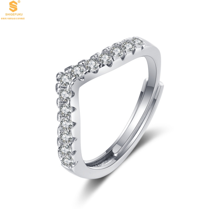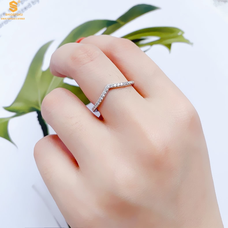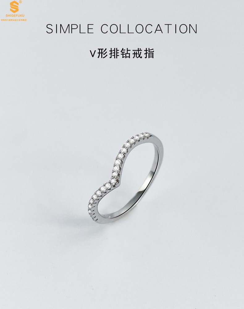 【品名】莫桑钻简约V排女戒