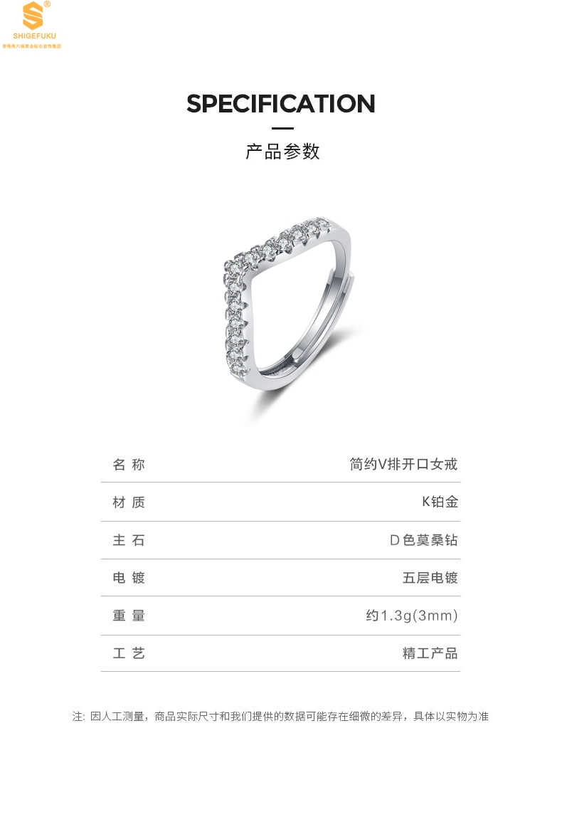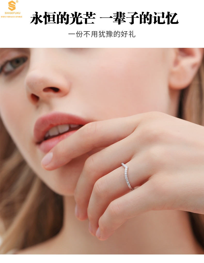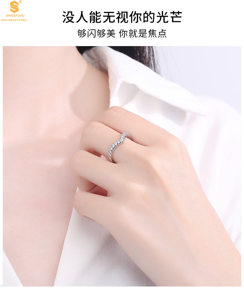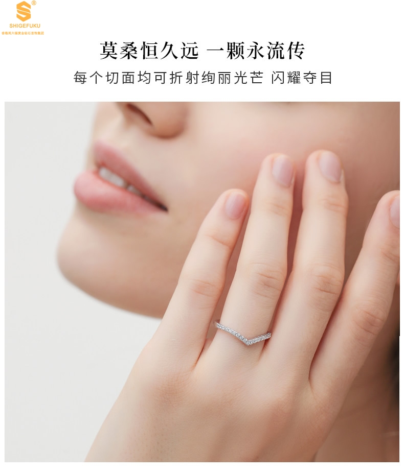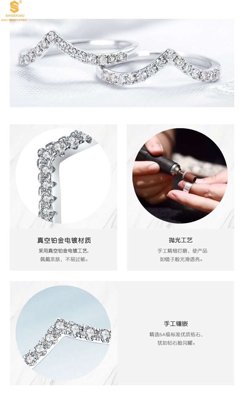 【品名】莫桑钻简约V排女戒