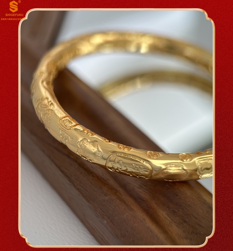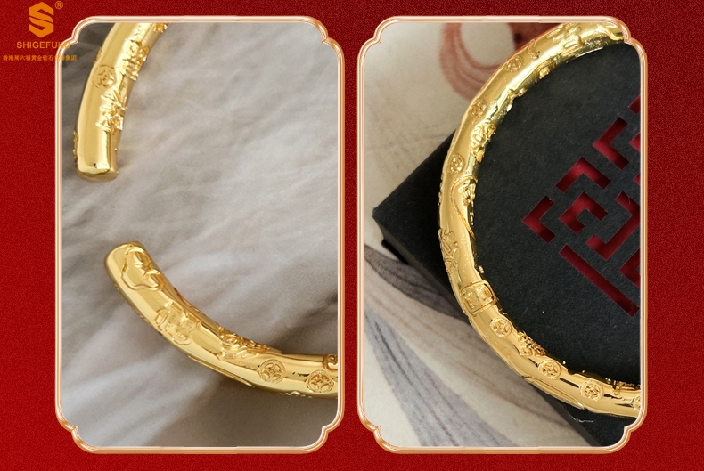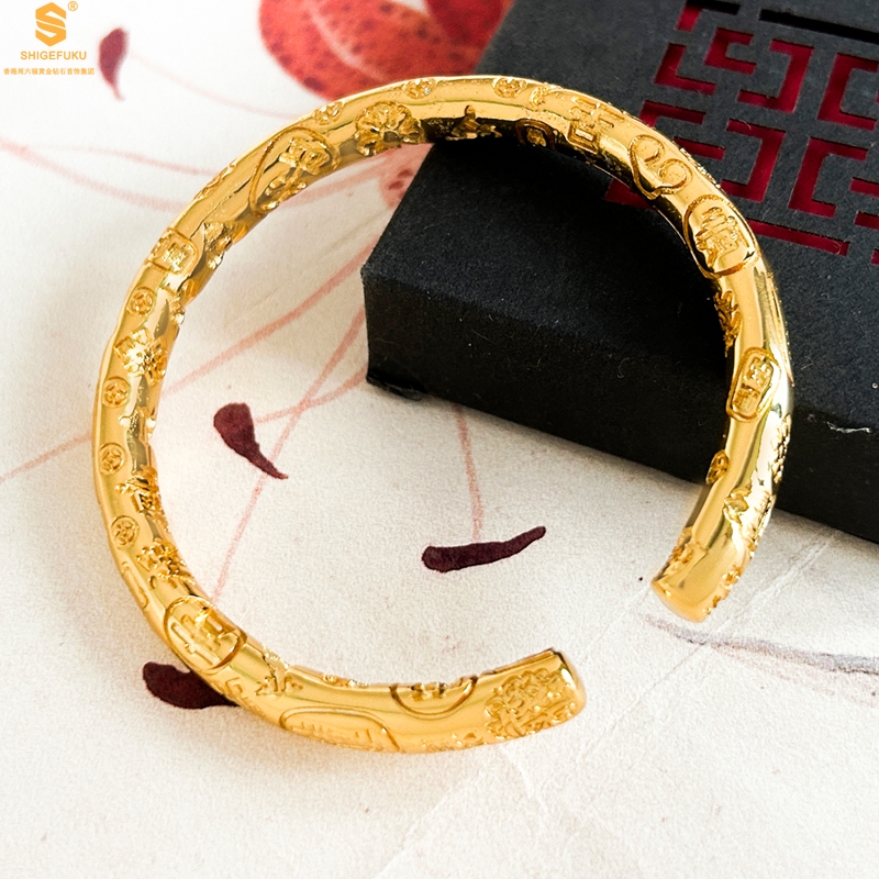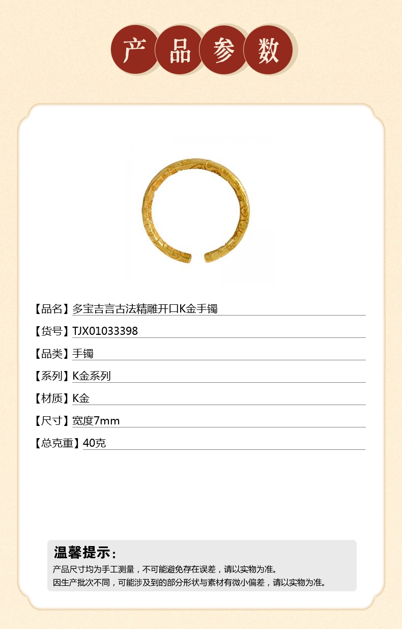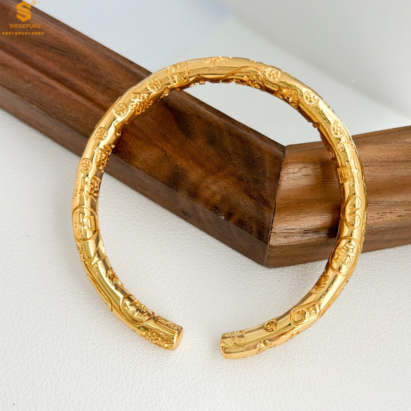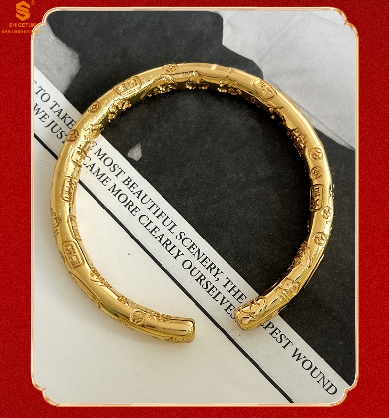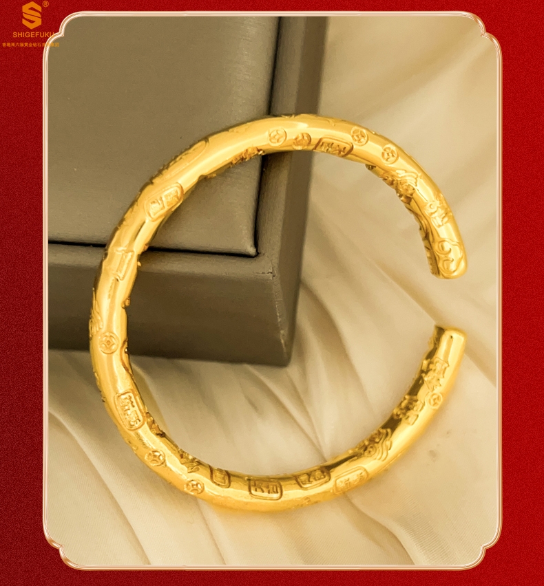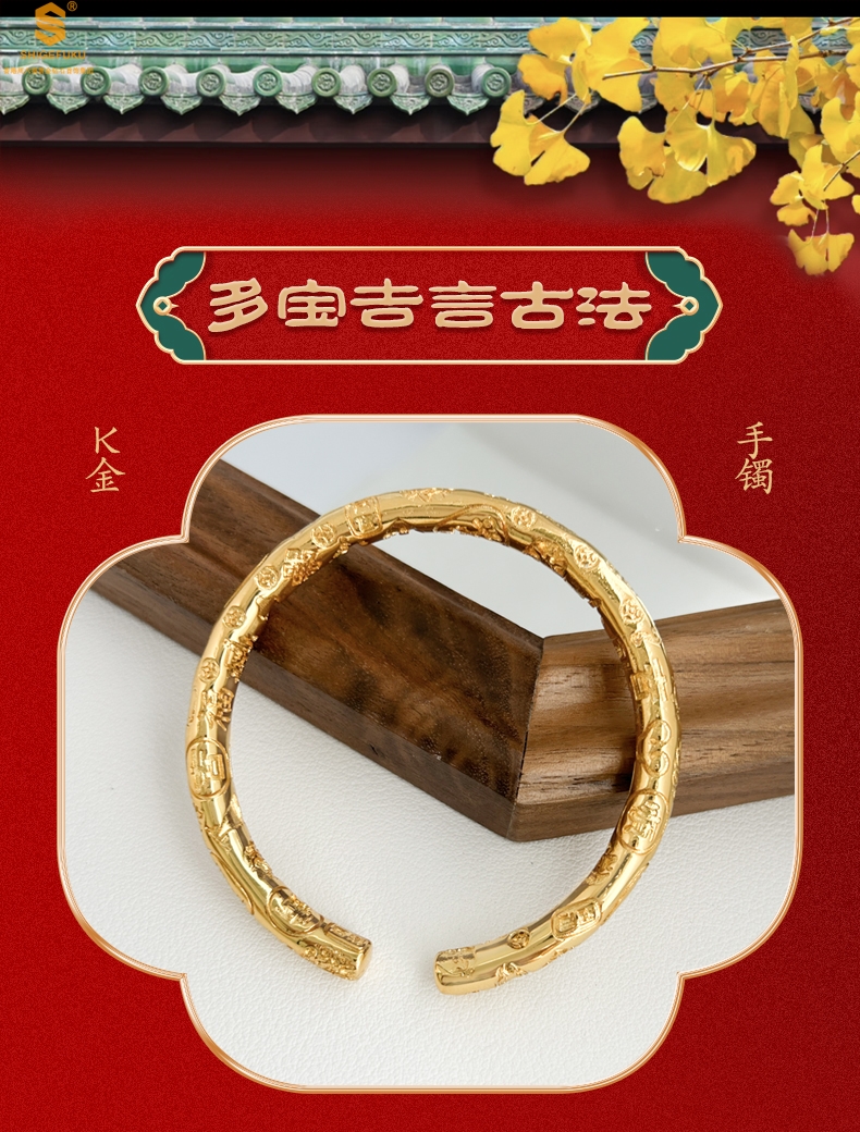 【品名】多宝吉言古法精雕开口K金手镯