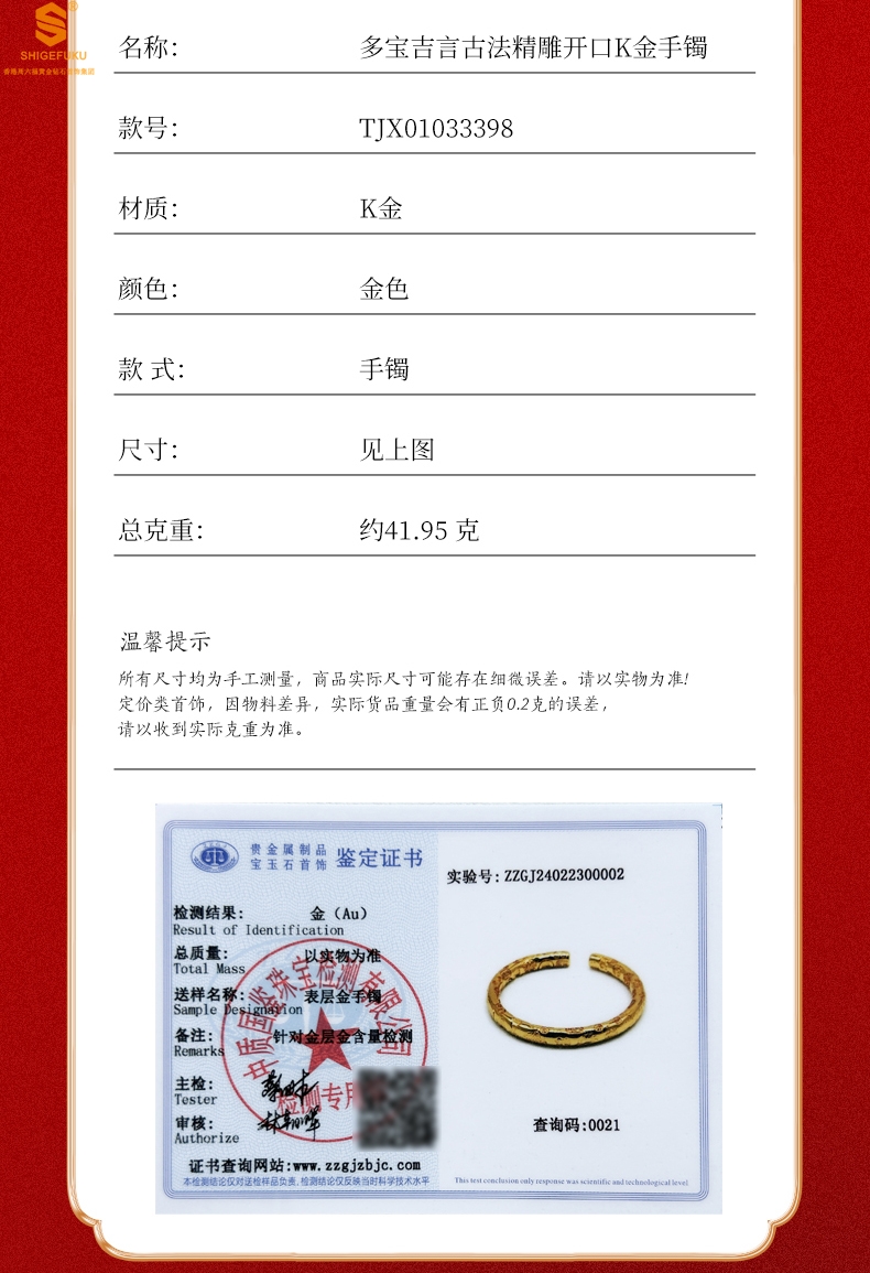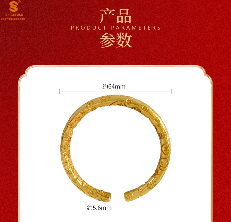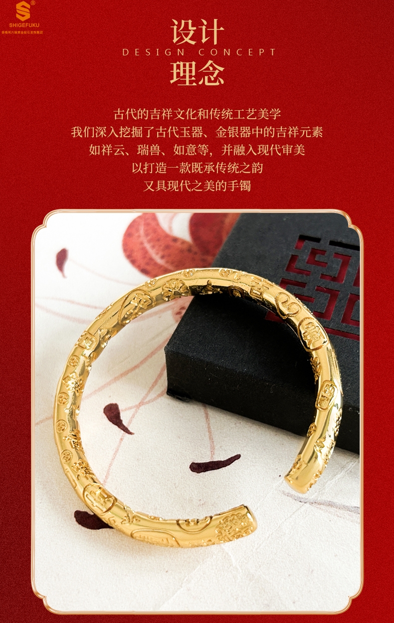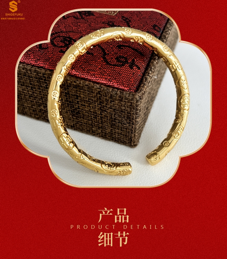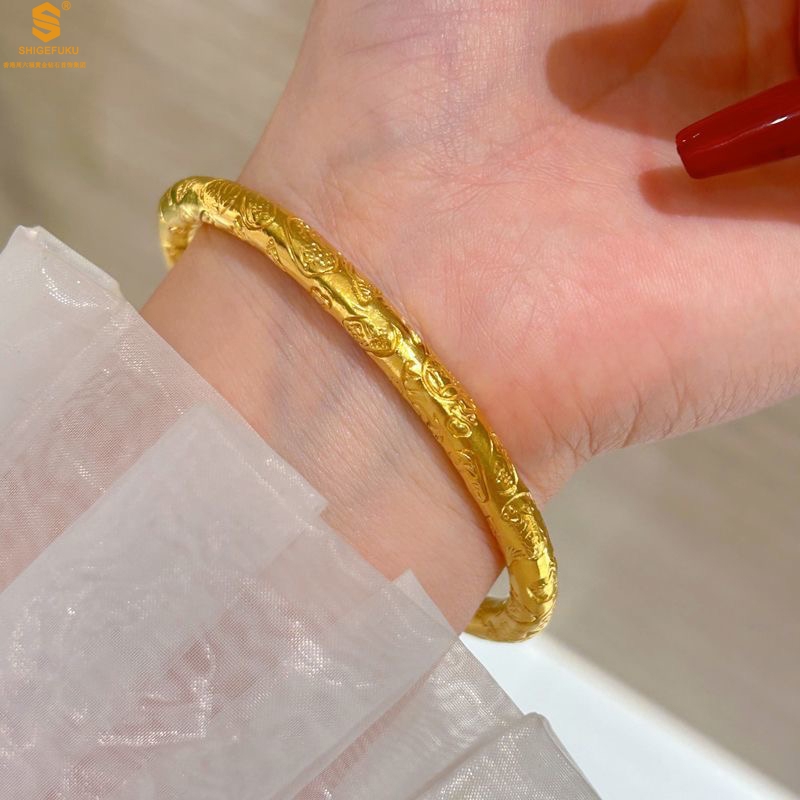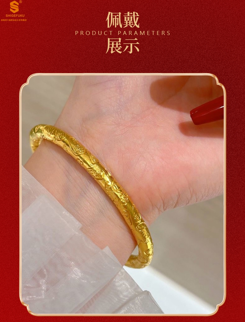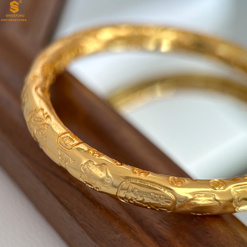 【品名】多宝吉言古法精雕开口K金手镯