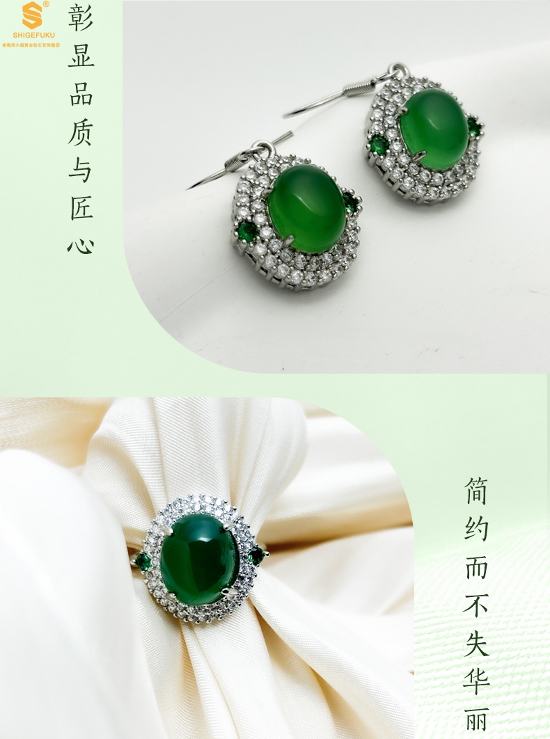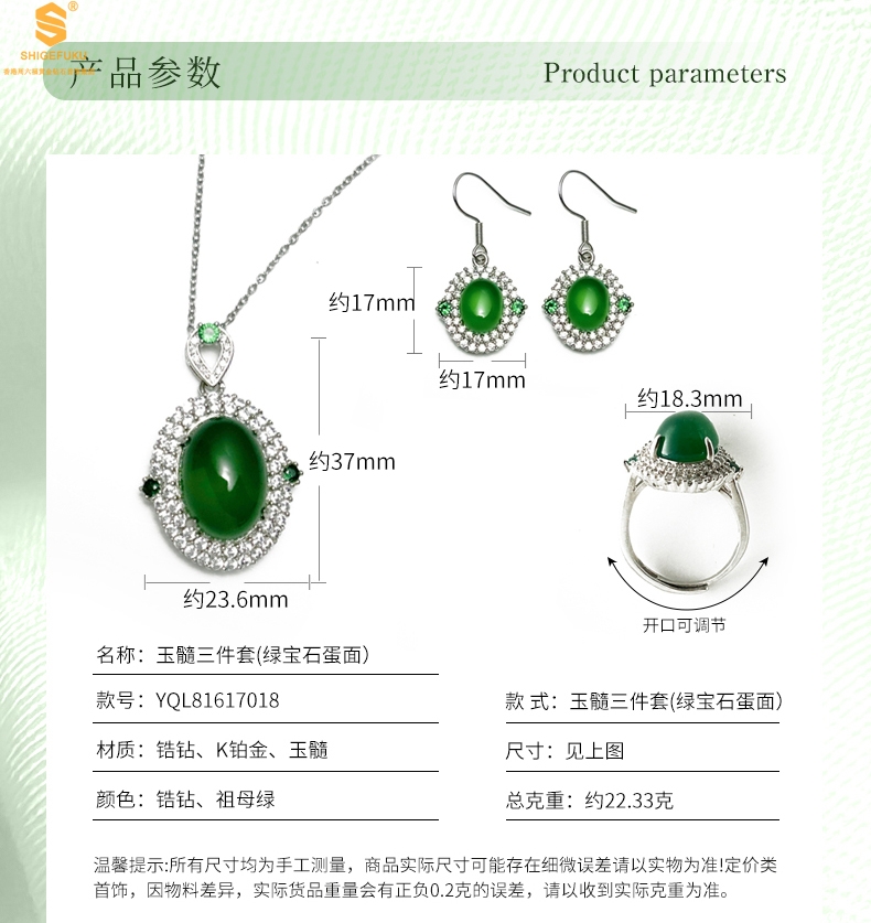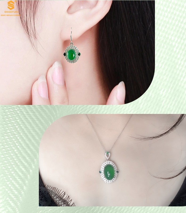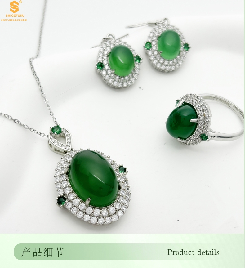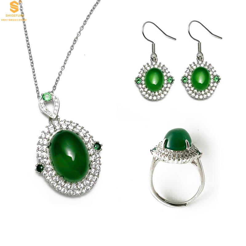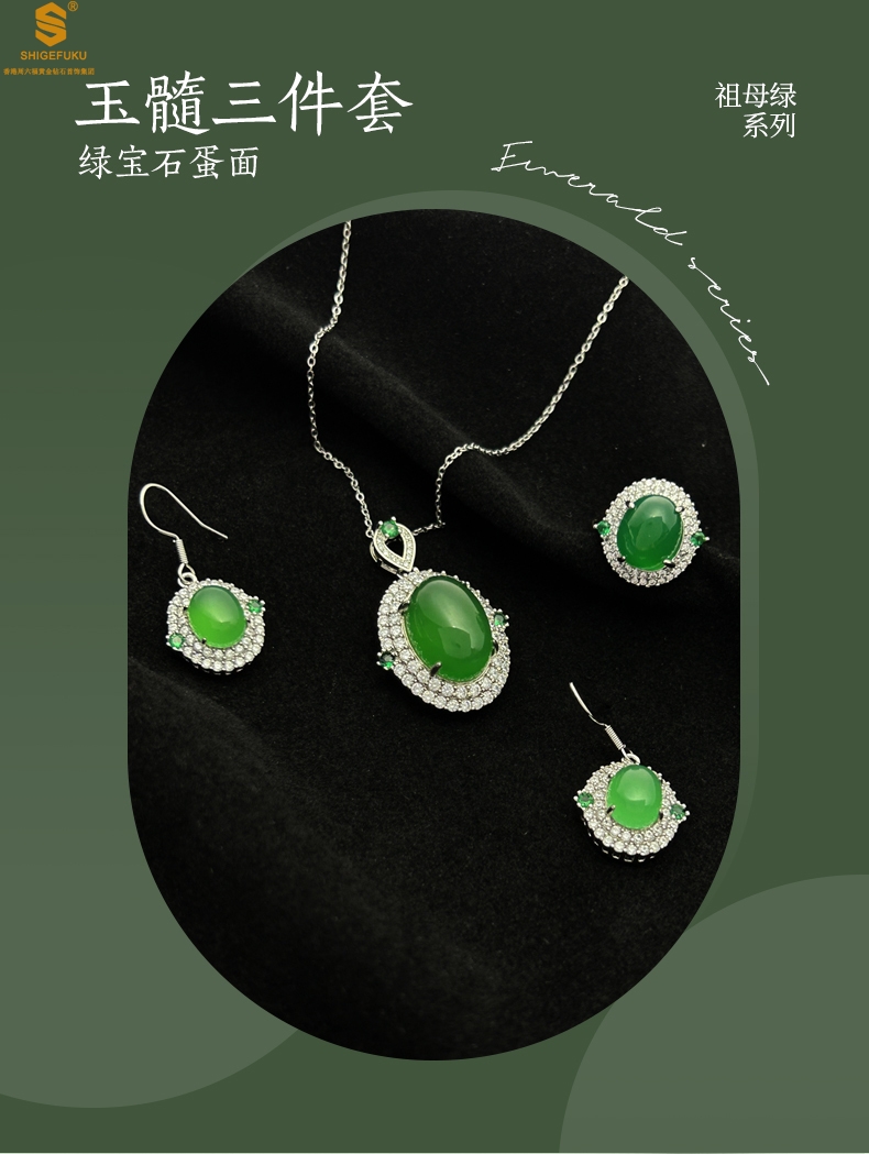 【品名】祖母绿玉髓三件套(绿宝石蛋面)